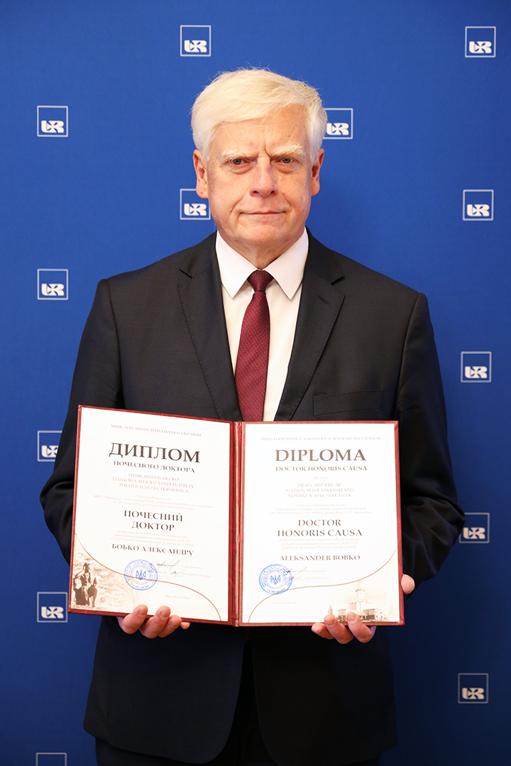 Prof. dr hab. Aleksander Bobko został uhonorowany przez Senat Przykarpackiego Uniwersytetu Narodowego imienia Wasyla Stefanyka w Iwano-Frankowsku. Uroczystość odbyła się 1 września 2021 r.
