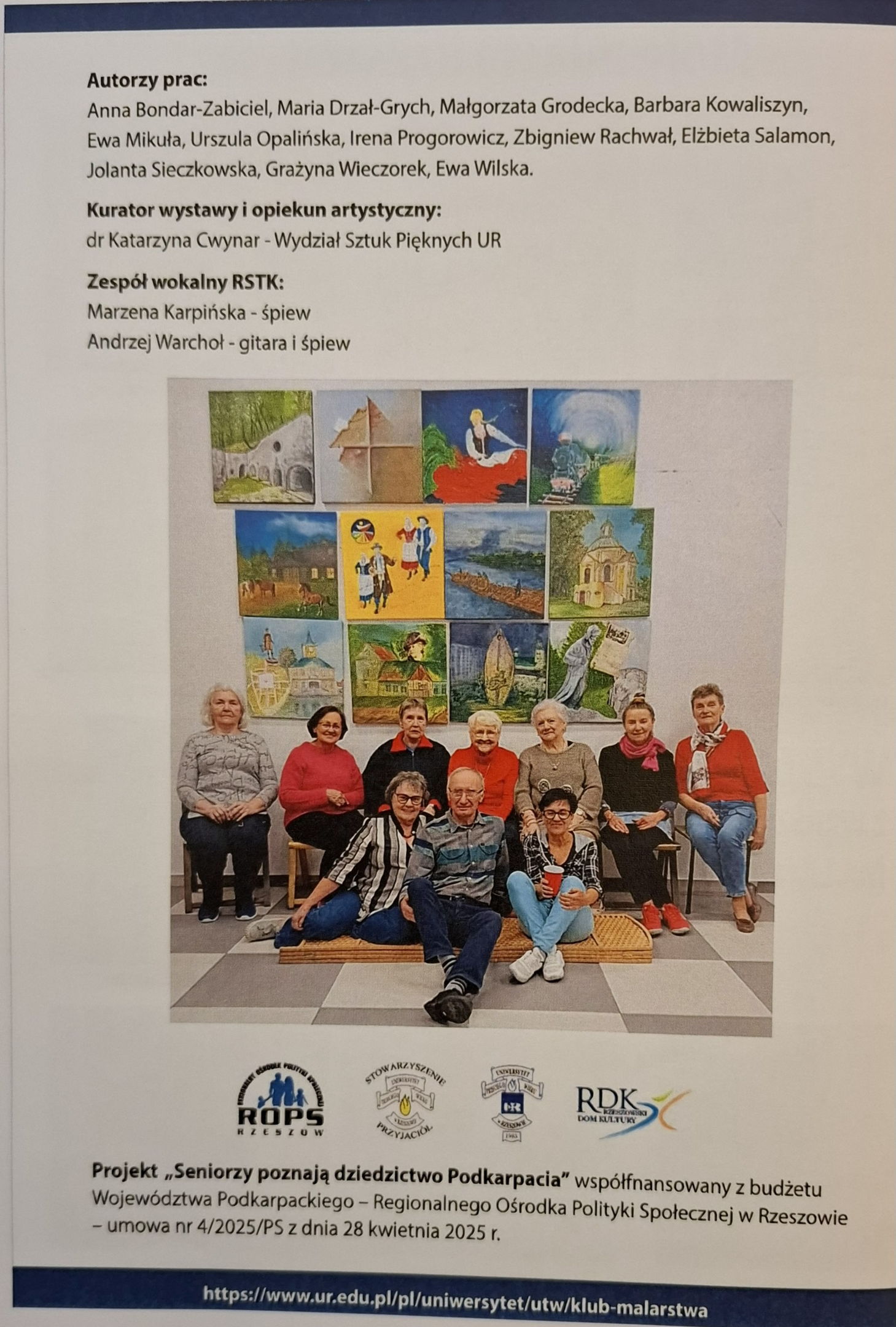 WYSTAWA Z WARSZTATÓW MALARSKICH Klubu Malarstwa Uniwersytetu Trzeciego Wieku, Grupa I - PODKARPACKIE INSPIRACJE - DZIEDZICTWO W BARWACH I DETALACH