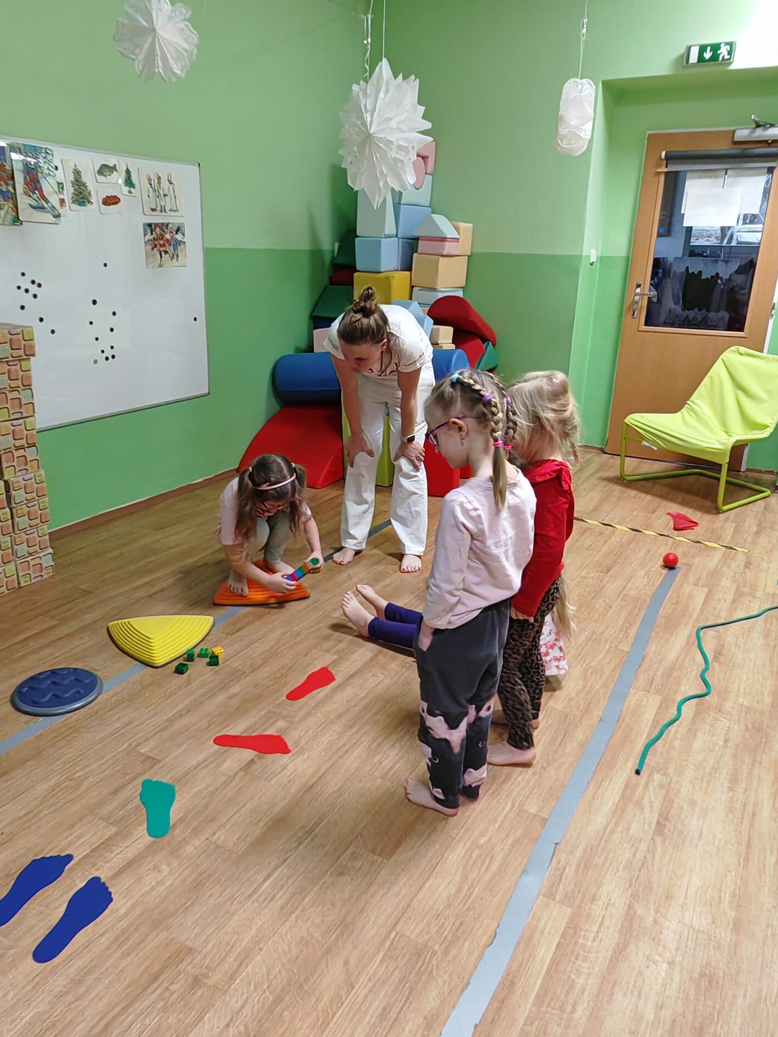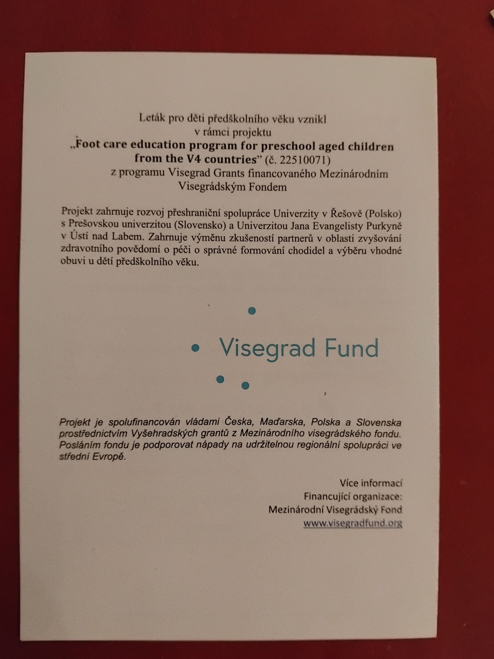 This stage of the project focused on the practical implementation of an educational program addressed to preschool-aged children. The program covered topics related to proper foot exercises and the conscious selection of appropriate footwear. The planned activities were developed on the basis of a scenario prepared at an earlier stage of the project and were carried out using tools designed to convey knowledge in an engaging and accessible way to children, parents, and teachers.
