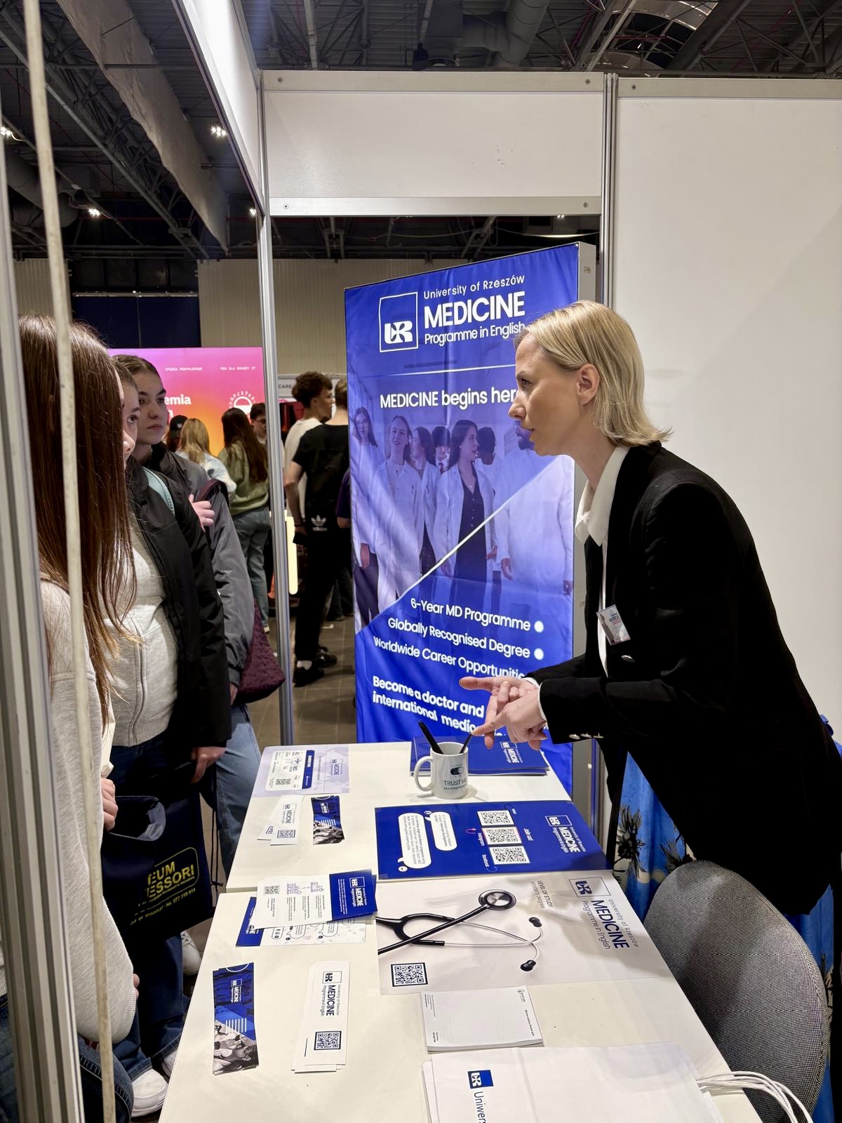 The event brought together approximately 70 universities, all presenting their educational offer to potential students. Our programme was among the exhibitors, promoting medical studies in English and showcasing opportunities available to international candidates.