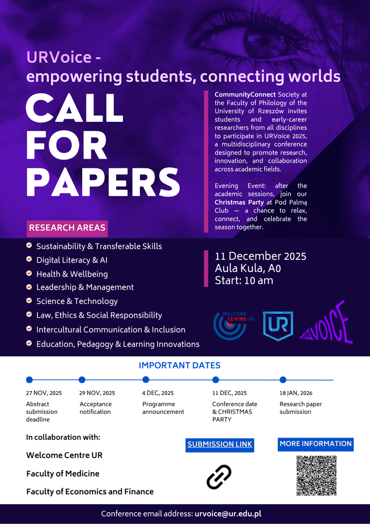 Join URVoice 2025, an interdisciplinary student conference where participants from various faculties come together to share their research, exchange ideas, and connect across disciplines.