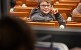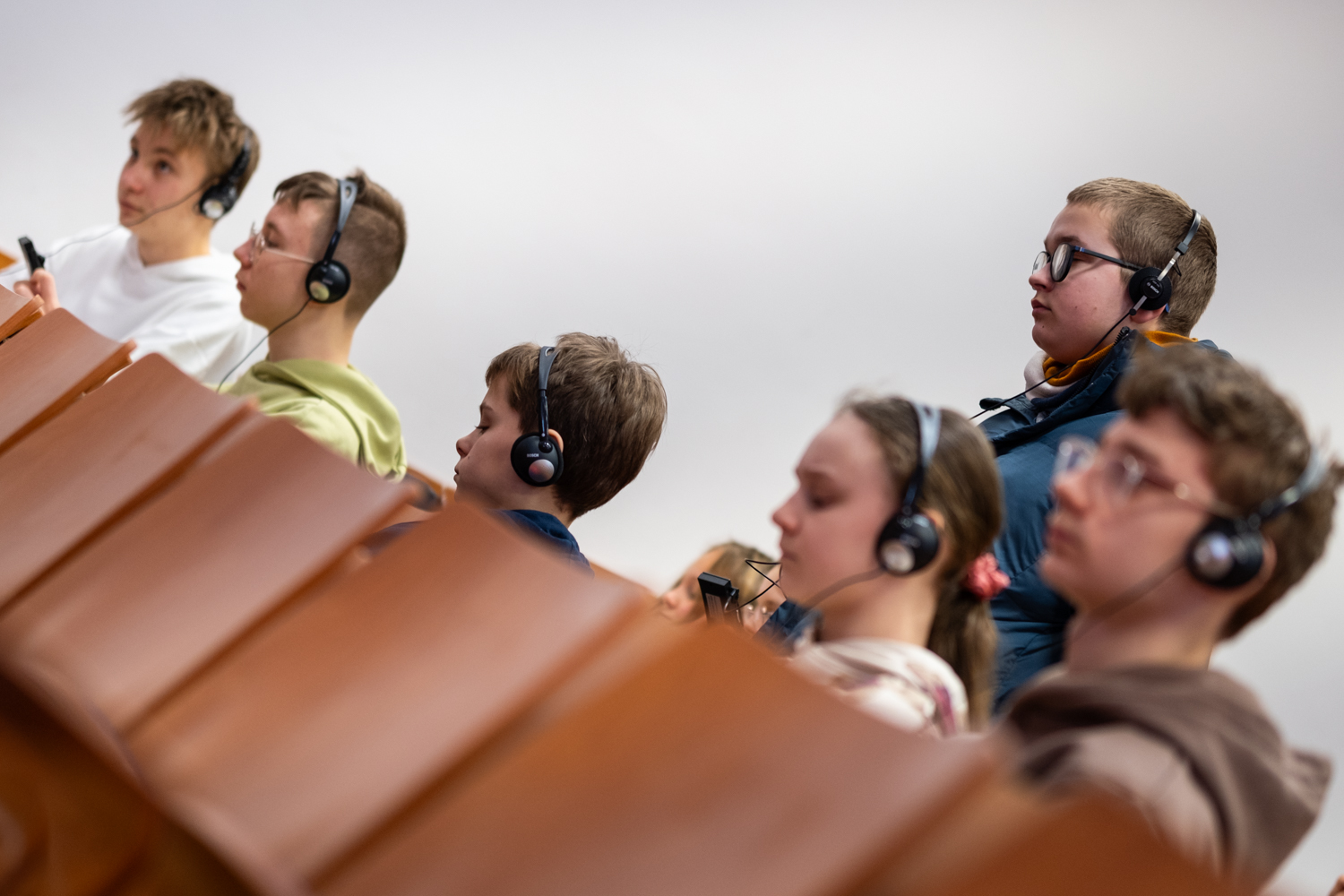 The second part, titled “Secrets of a Simultaneous Interpreter’s Work, or Life in the Booth", was led by Dr. Iwona Szwed. During this session, students learned about the nature of interpreting, including the need to listen and speak simultaneously while dividing attention between two languages. Some participants tried their hand at interpreting, while others tested the headsets, receivers, and booth control panels used in professional interpreting, with the support of a student of Applied Linguistics, Jakub Ramus.
