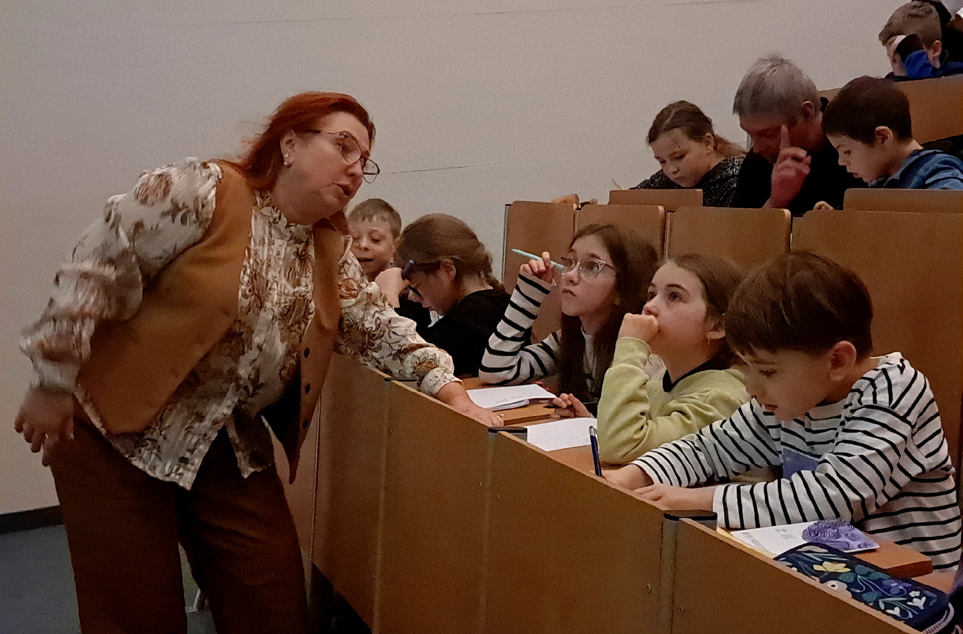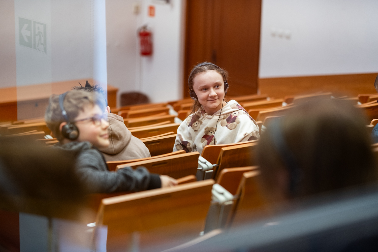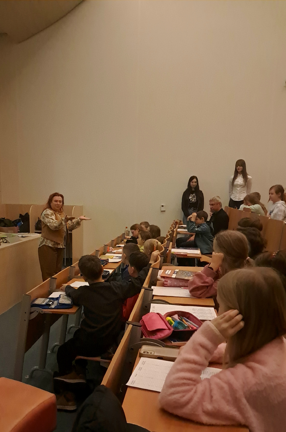 At the same time, the youngest participants (grades 1–3) were also guests of the Faculty of Philology and took part in classes at the Institute of English Philology titled “The Latin Alphabet and Cyrillic – Similarities and Differences". With the support of Dr. Natalia Zhukovych-Dorodnykh from the Centre for Foreign Language Teaching and Certification, the youngest MUR students explored the Cyrillic alphabet, learned about its basic features, and discovered interesting linguistic facts related to different writing systems.