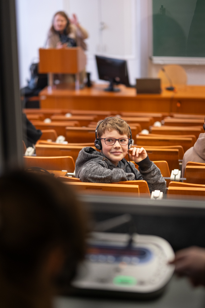 The oldest group (grades 6–8) attended classes at the Institute of Applied Linguistics titled “In the Jungle of Information and Languages". During the first part, led by Dr. hab., Prof. UR Marta Smykała and Dr. Dorota Miller, participants explored the topic of disinformation. They discussed fake news, deepfakes, information and filter bubbles, bots, trolling, the megaphone effect, and cognitive warfare, and learned how to distinguish facts from opinions and identify false or misleading information. A real-life example demonstrated how quickly disinformation can spread and what consequences it may have. The session also highlighted the role of emotions in the reception of online content, the illusion of explanatory depth, and introduced fact-checking tools and platforms used to verify information.