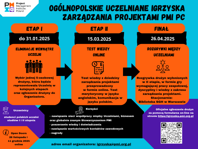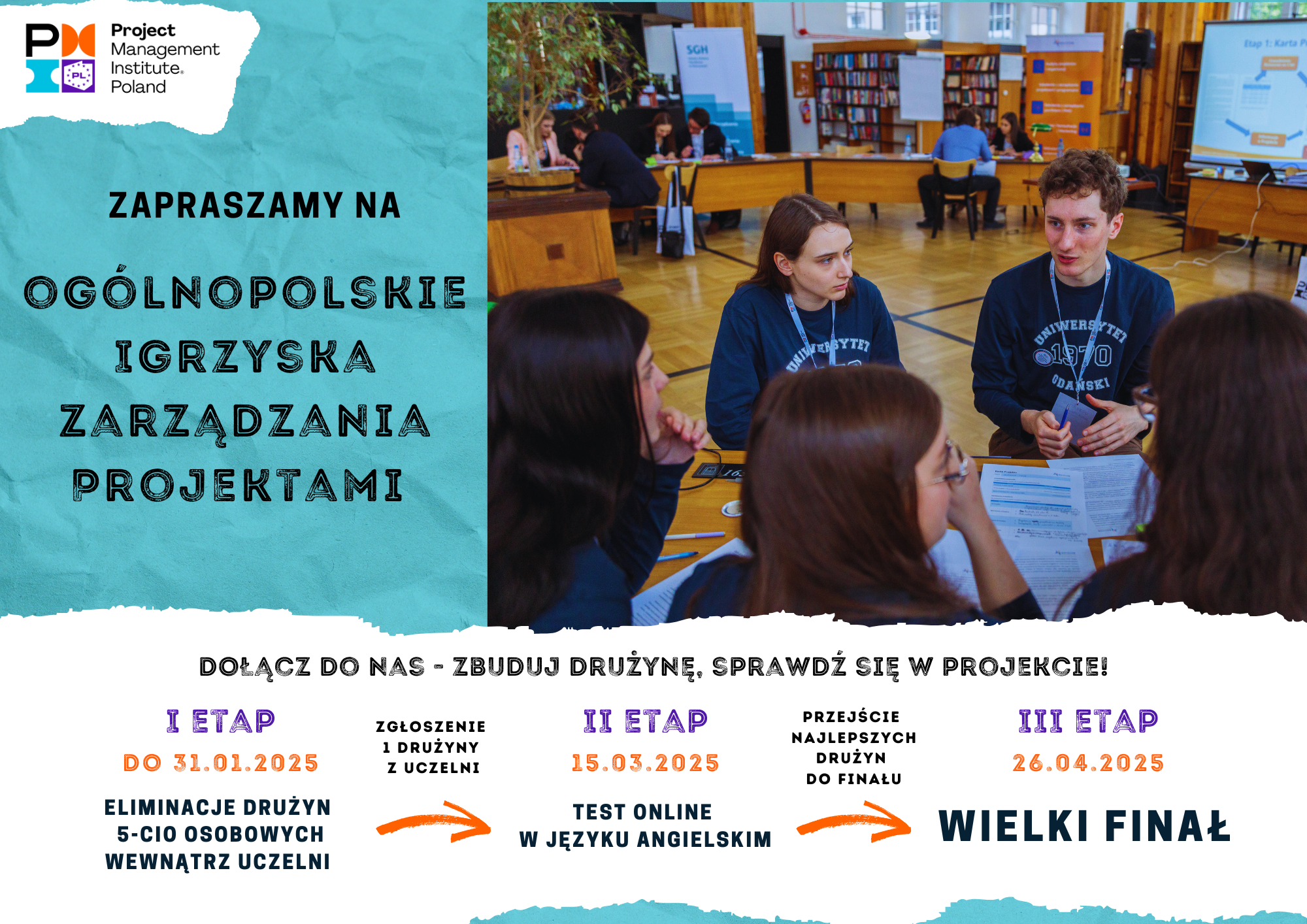 Przypominamy, że Project Management Institute Poland Chapter (PMI PC) zaprasza Państwa Uczelnię do udziału w Ogólnopolskich Uczelnianych Igrzyskach Zarządzania Projektami, skierowanych do studentów polskich uczelni, nie tylko tych studiujących zarządzanie projektami.