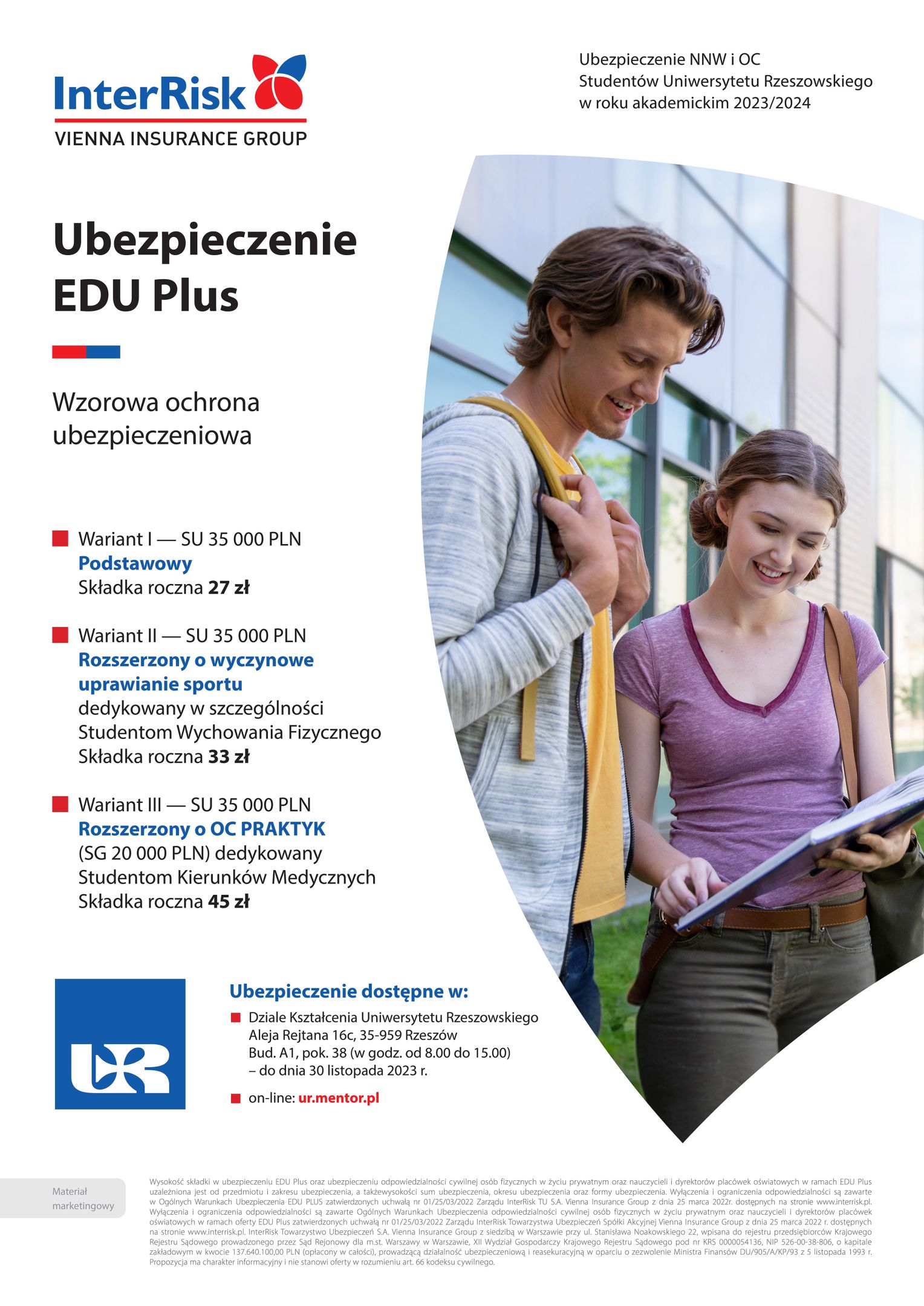 dzięki współpracy z brokerem Mentor S.A. przedstawiamy ofertę Towarzystwa Ubezpieczeń InterRisk S.A. na ubezpieczenia NNW i OC studentów Uniwersytetu Rzeszowskiego w trzech wariantach, odpowiadającą zapotrzebowaniu każdemu z Was.