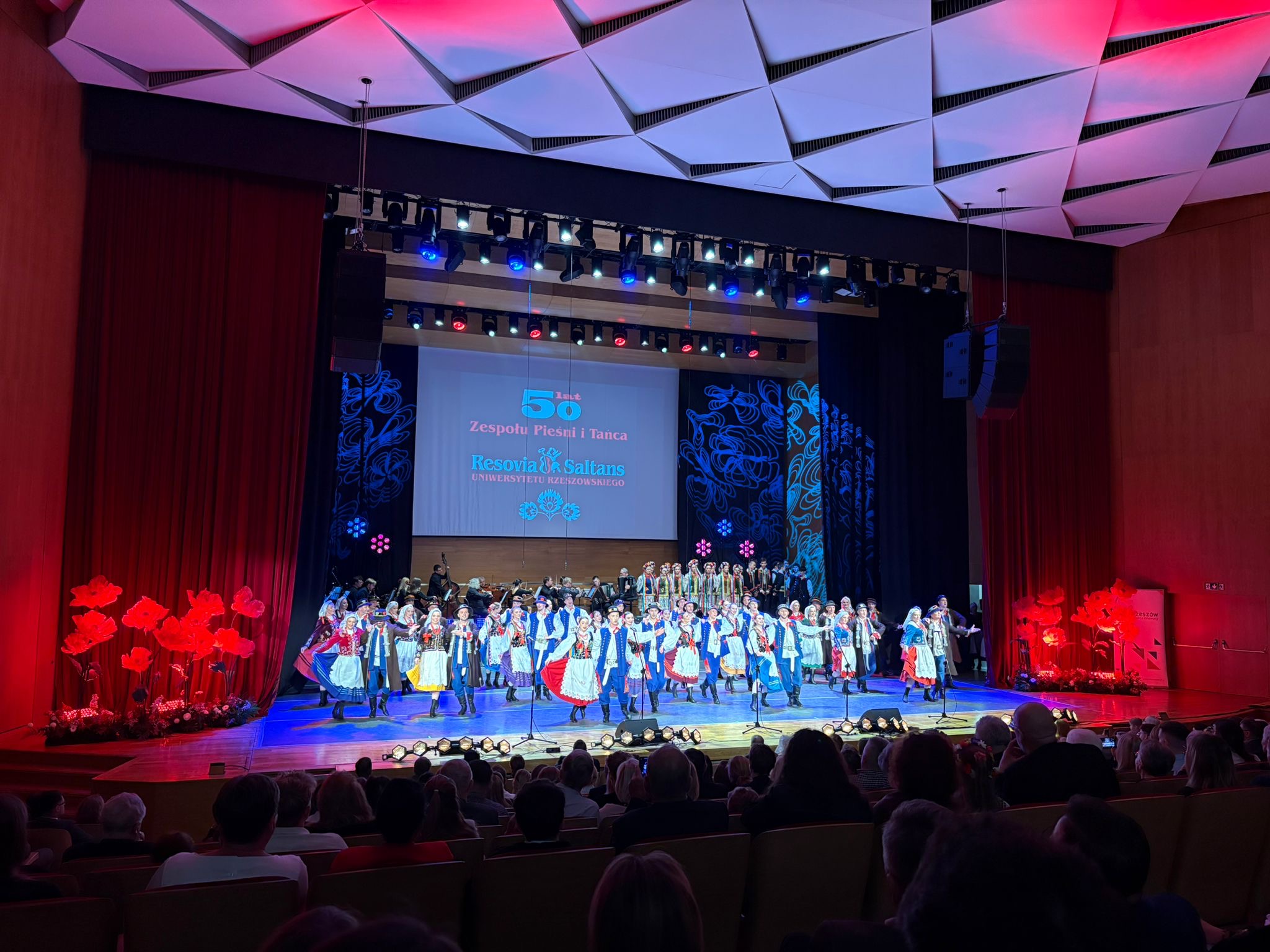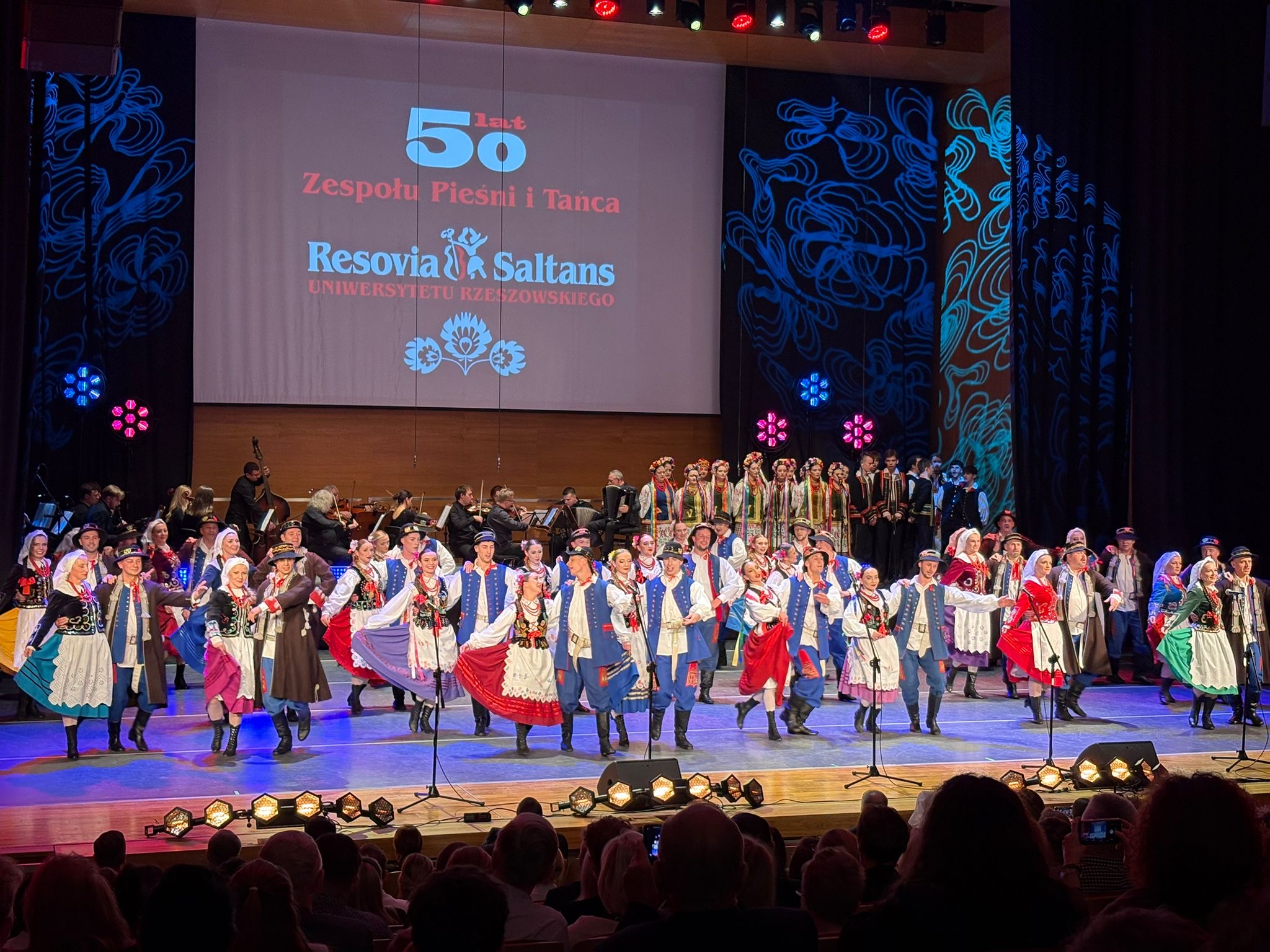 That evening, the Podkarpackia Philharmonic was filled with colors, music, and energy of the jubilee concert celebrating the 50th anniversary of the "Resovia Saltans" Song and Dance Ensemble. https://www.youtube.com/live/HJUj044JZ5U?si=0jLT-t65C9qlDzJR