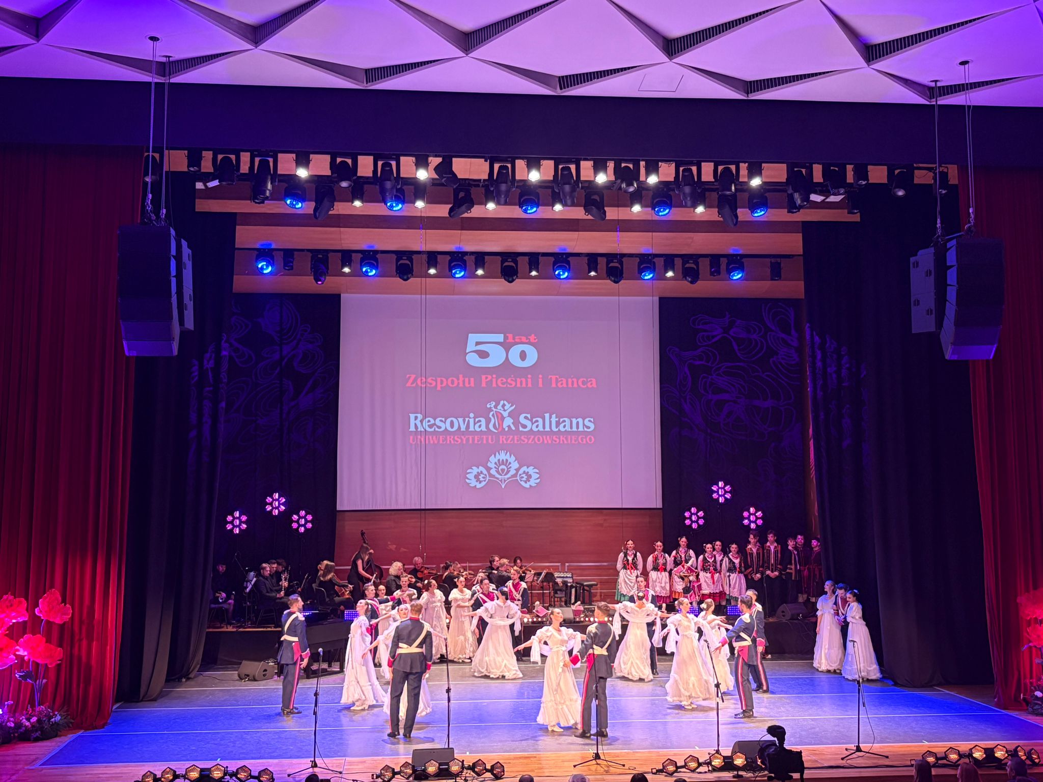"Resovia Saltans" is one of the University of Rzeszów’s most distinguished artistic ambassadors. For decades, the ensemble has brought together students and graduates from various fields of study, offering them a space to develop their artistic talents—in dance, vocals, and instrumental performance. Thanks to their dedication and the professionalism of the artistic staff, the anniversary gala delivered a performance of the highest artistic quality.