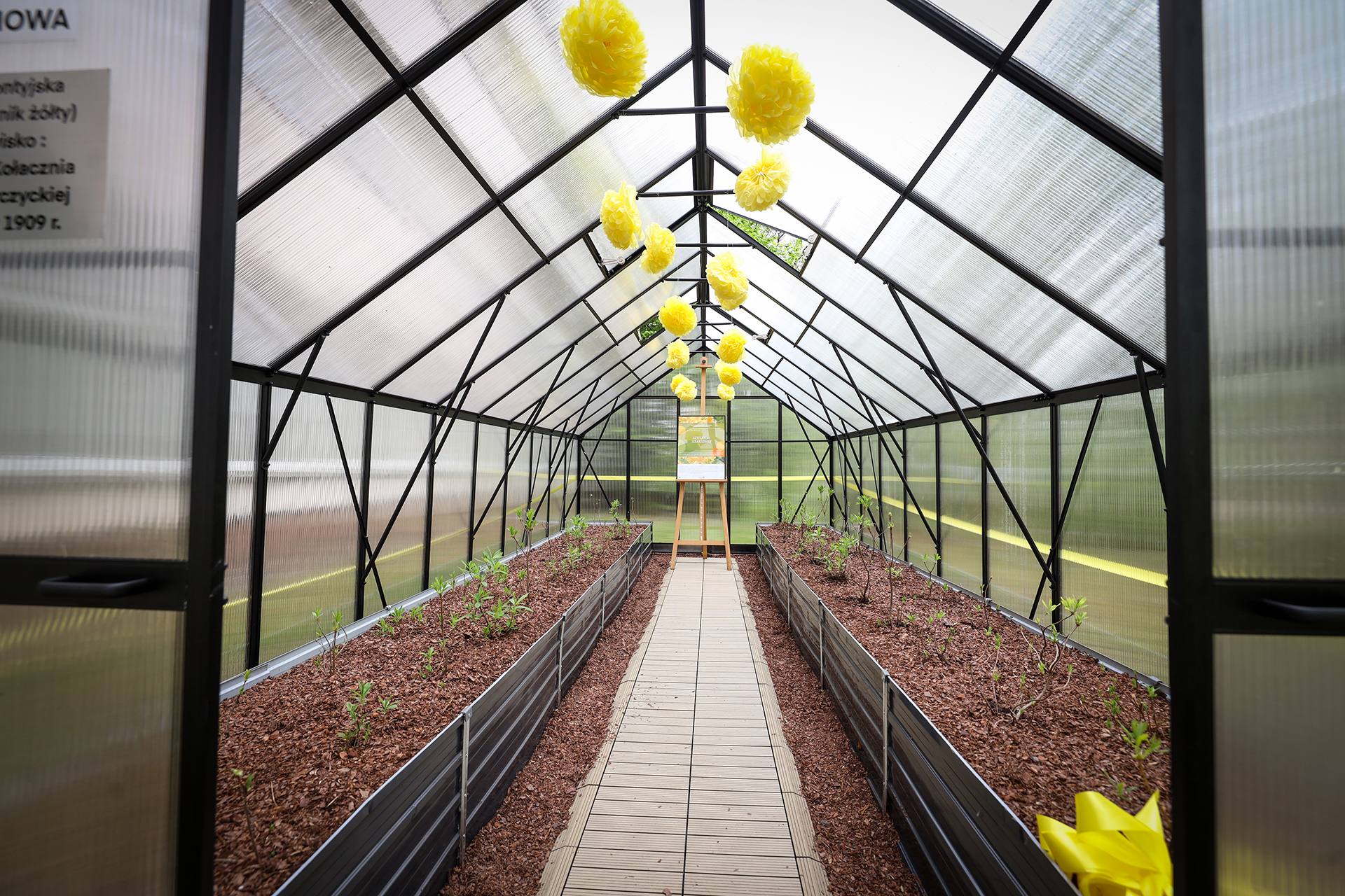 The greenhouse is dedicated to Rhododendron luteum, commonly known as the Pontic azalea or yellow azalea—an exceptional shrub from the heath family. In Poland, this species occurs naturally in only one location: the "Kołacznia" Nature Reserve in Wola Zarczycka, near Leżajsk in the Subcarpathian region. Due to its rarity and limited distribution, the Pontic azalea is a legally protected species and was included in the Polish Red Book of Plants until 2001.