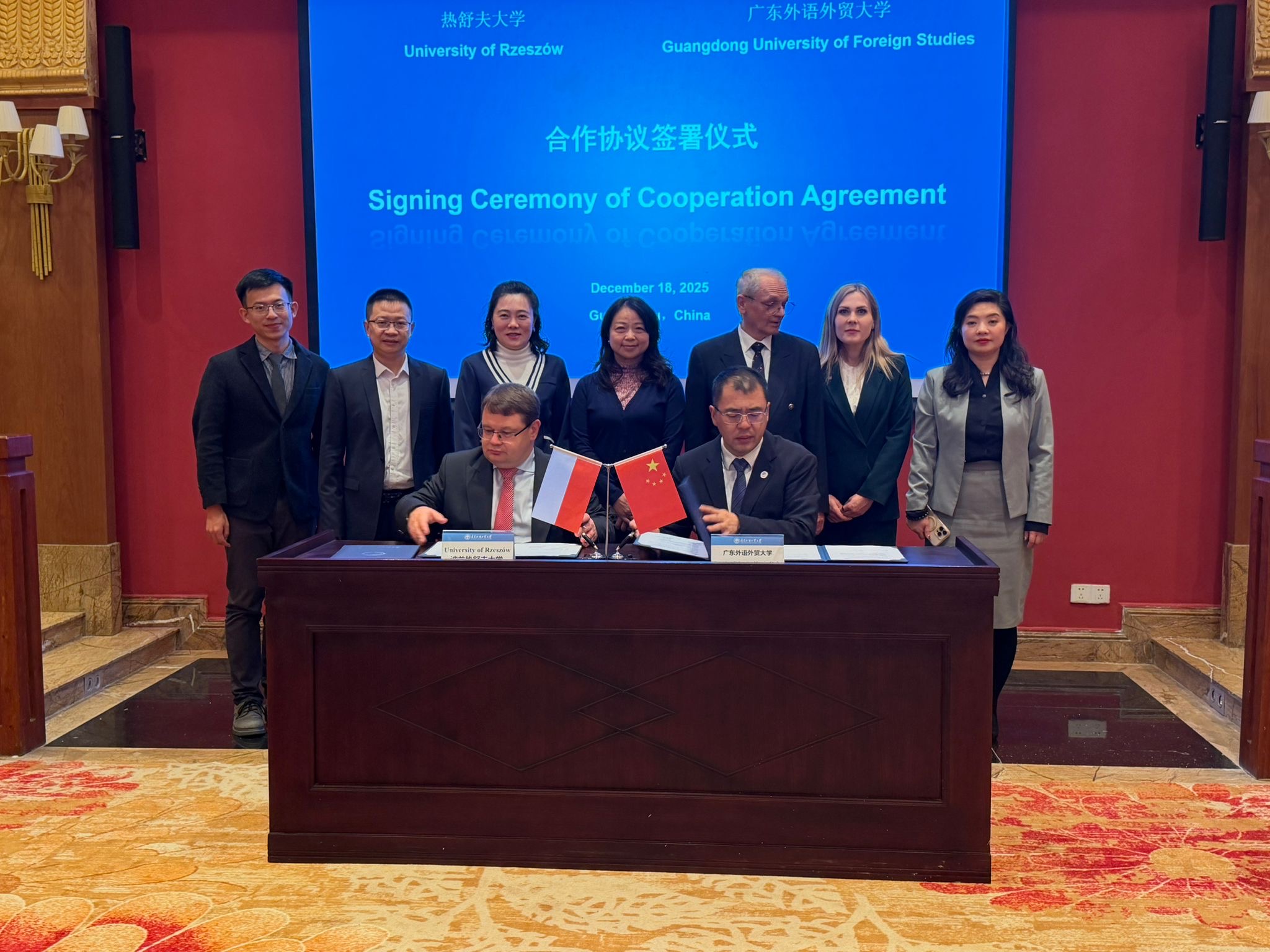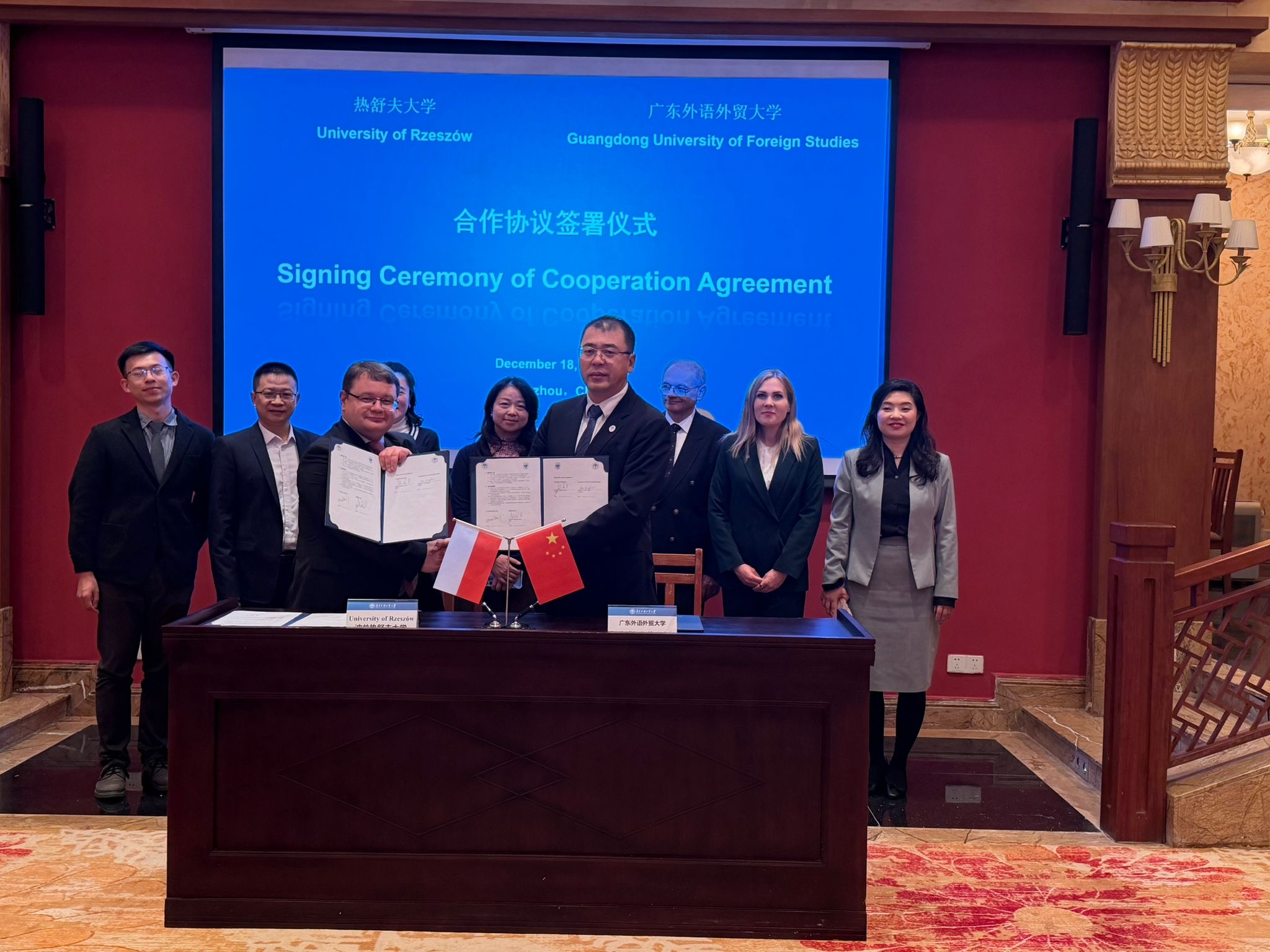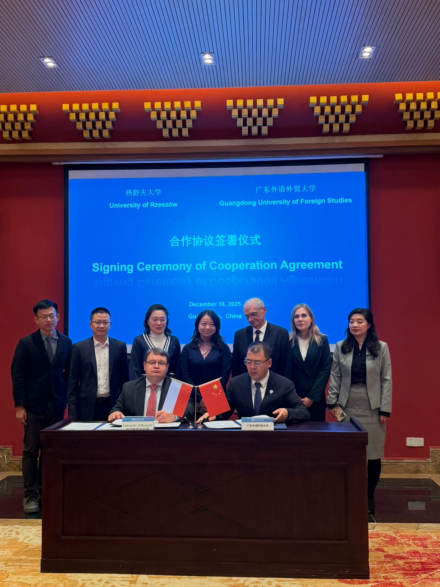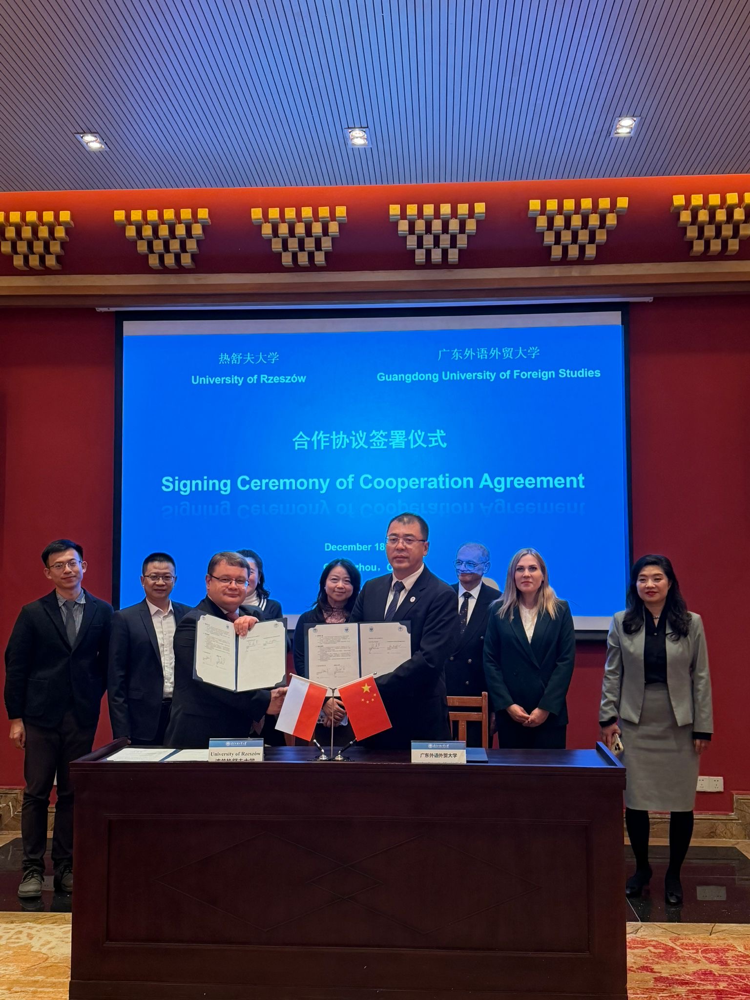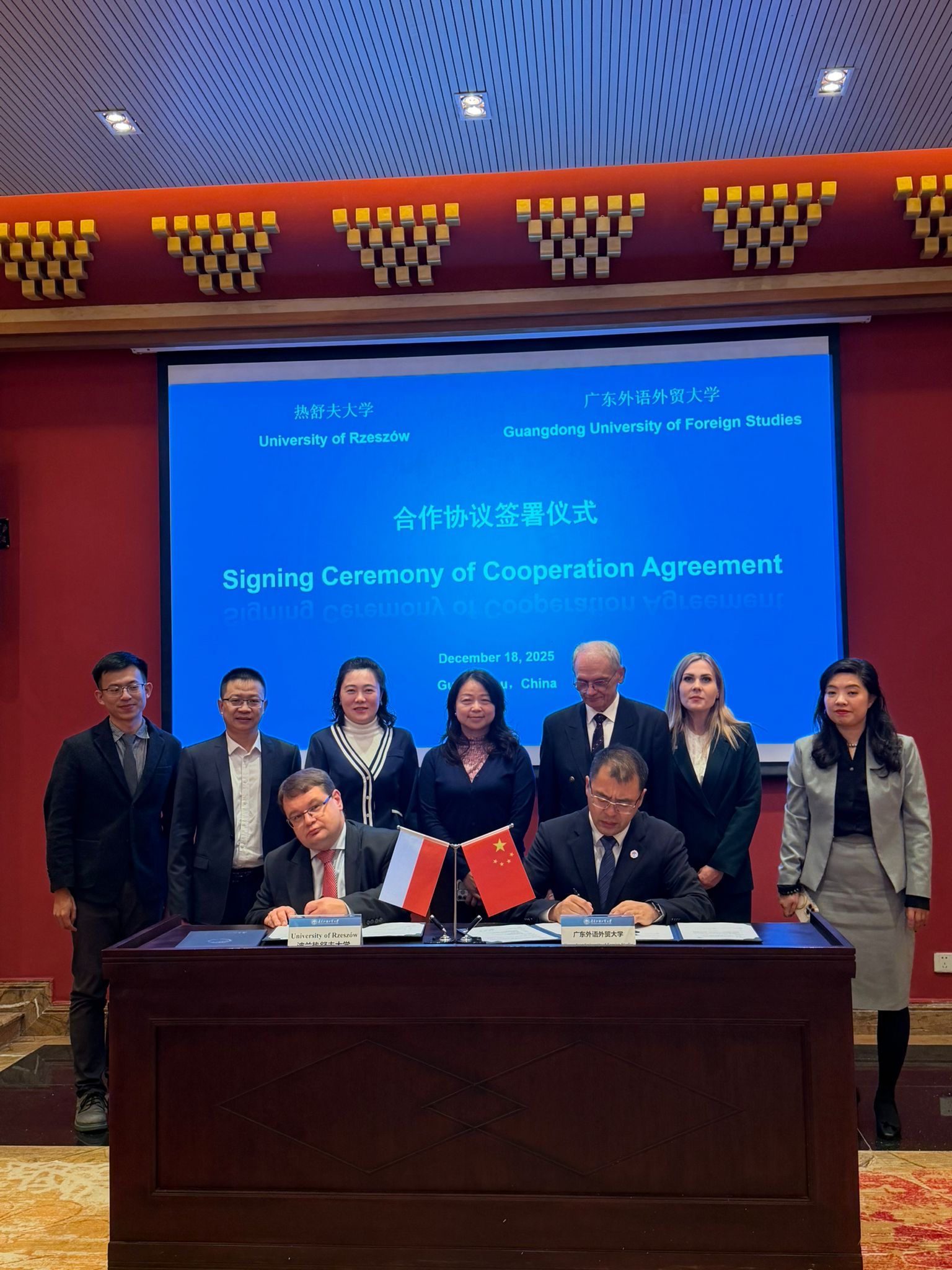 The visit of the delegation from the University of Rzeszów to China was an important step in the internationalization of the university and the strengthening of international academic cooperation. On December 18, 2025, the Rector of the University of Rzeszów, Prof. Adam Reich, signed cooperation agreements with Guangdong University of Foreign Studies (GDUFS) – one of the leading humanities and social sciences universities in southern China.