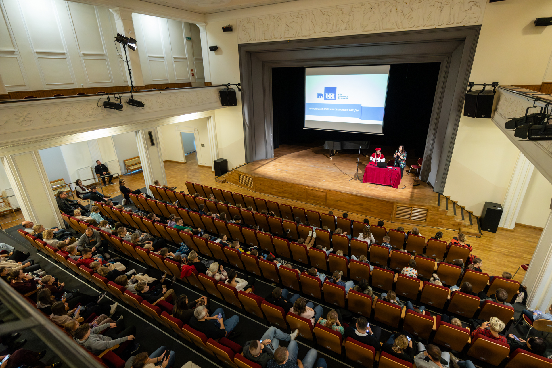 On 25 October 2025, the Concert Hall of the Faculty of Music hosted the formal INAUGURATION of the 2025/2026 academic year at MUR (Mały Uniwersytet Rzeszowski). MUR students took the matriculation oath before the Vice-Rector for Student Affairs and Education, Professor Sabina Grabowska; the hymn “Gaudeamus igitur” resounded, and the first entry was made in the student record book.