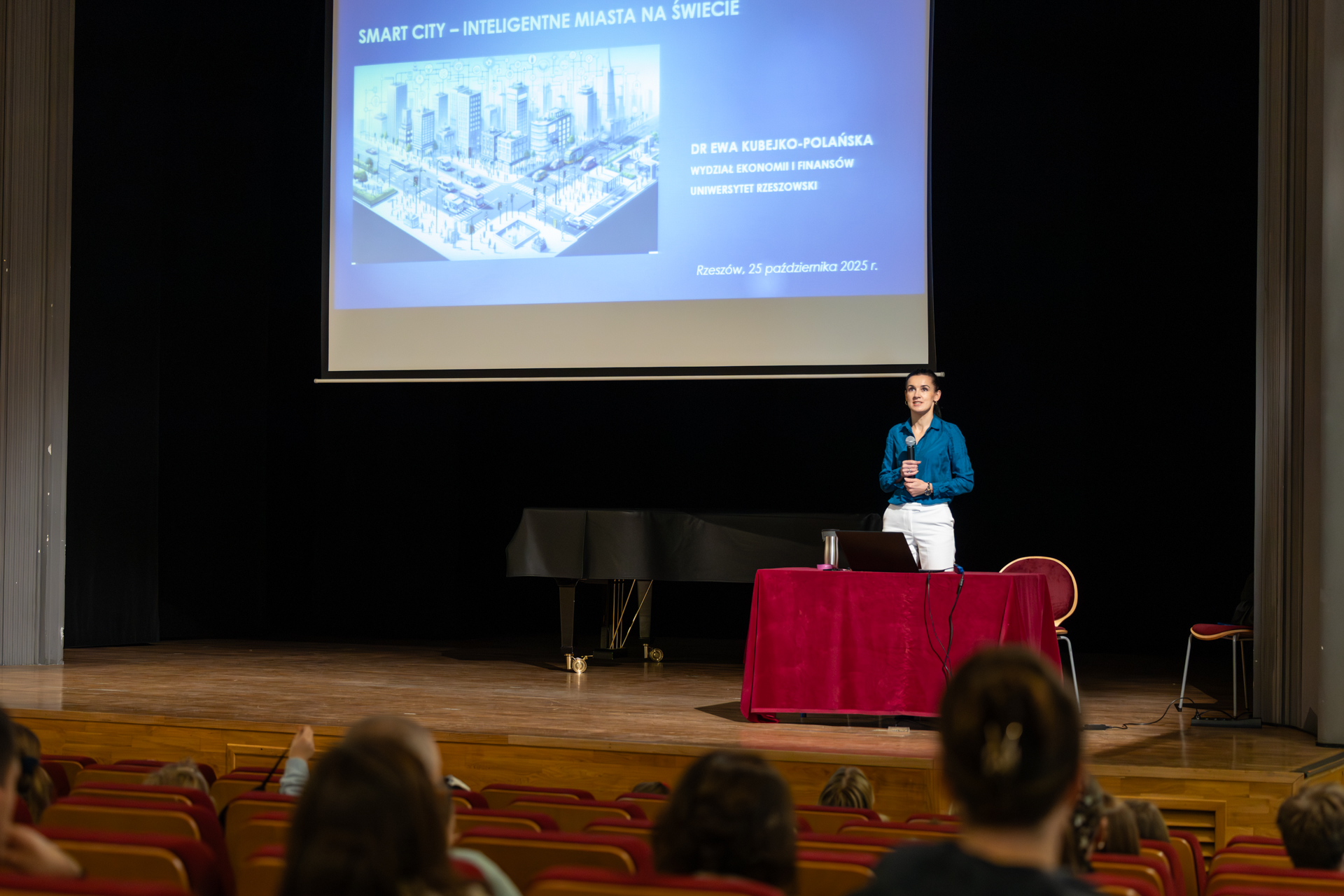 The first LECTURE, prepared by the Faculty of Economics and Finance, was delivered by Dr Ewa Kubejko-Polańska and was entitled: “SMART CITY – INTELLIGENT CITIES AROUND THE WORLD”.