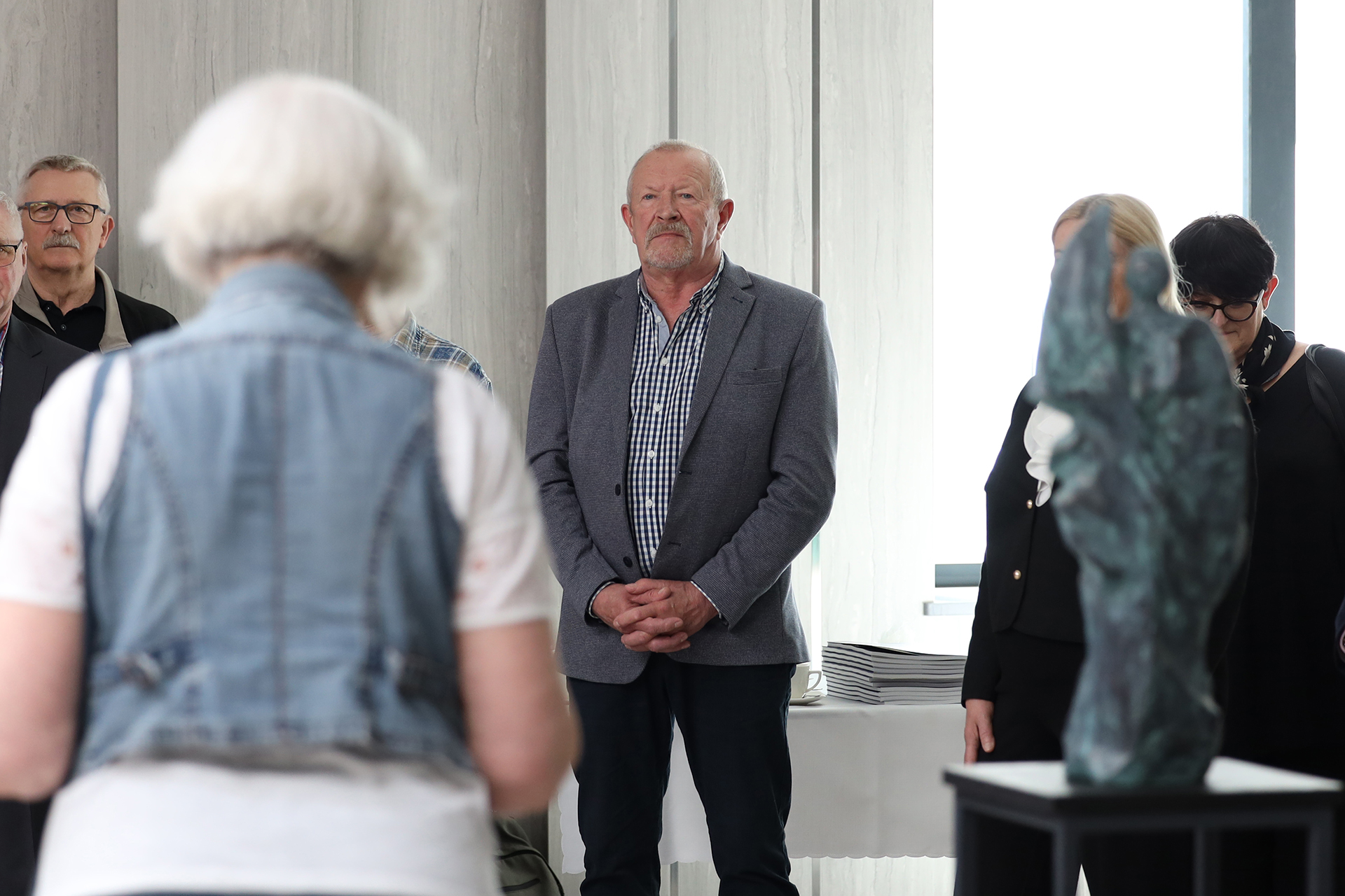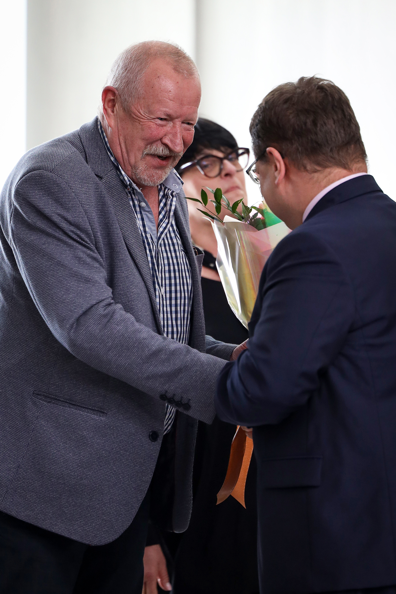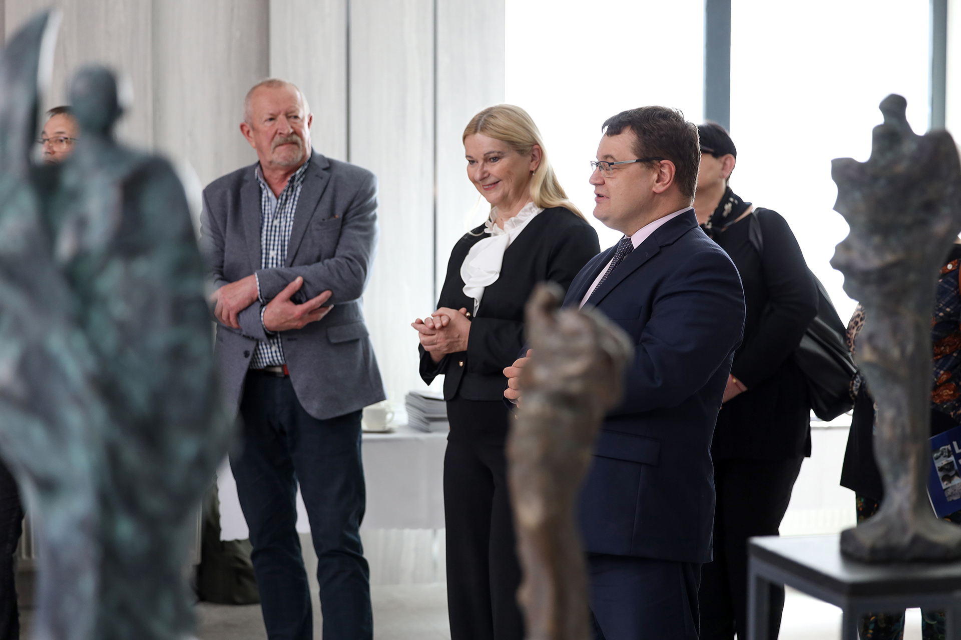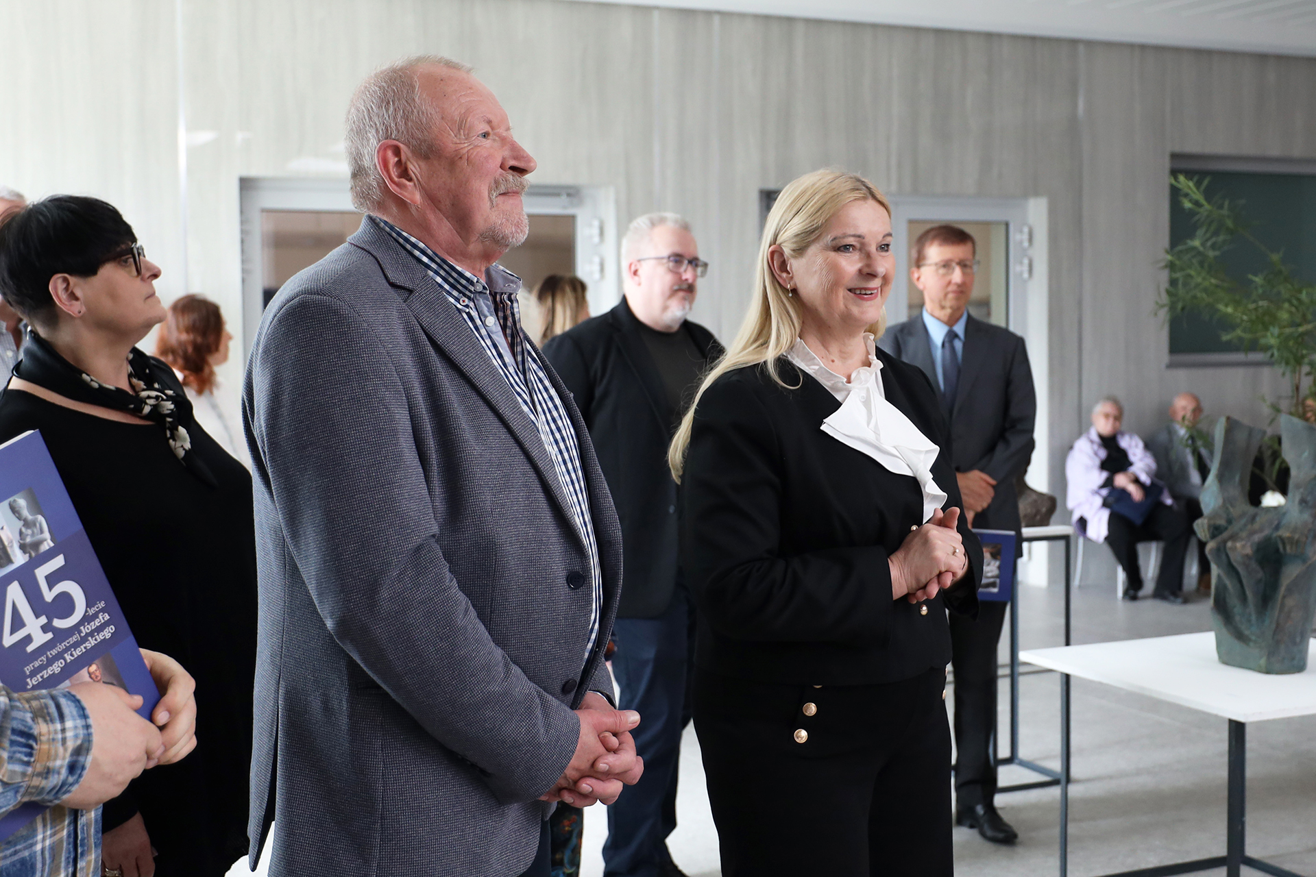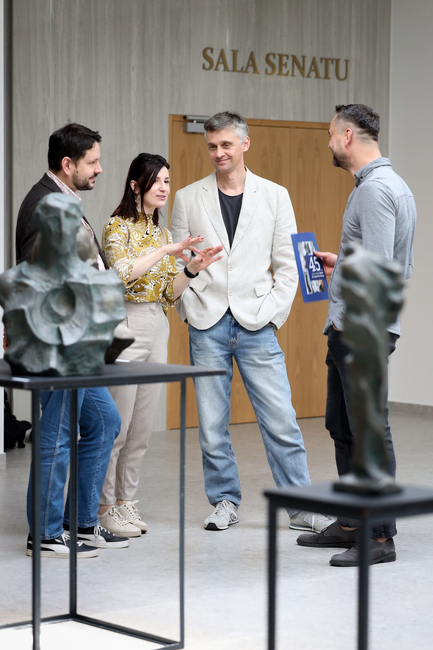 During the meeting, the Rector of the University of Rzeszów expressed his gratitude to Professor Kierski for his commitment to the scientific and educational development of the Faculty of Fine Arts at the University of Rzeszów. He also highlighted the numerous achievements of Professor Kierski, who has been working at the University of Rzeszów since 2003 as a professor. From 2008 to 2016, he served as the Dean of the Faculty of Arts at the University of Rzeszów. Over the years, he has supervised dozens of bachelor's and master's theses in sculpture. He has also served as a supervisor and reviewer for many doctoral dissertations in the field of sculpture. His artistic achievements include 27 individual sculpture exhibitions and participation in numerous interdisciplinary group exhibitions at the local, national, and international levels, both in Poland and abroad. He has been awarded numerous departmental and state honors, including the Medal of the National Education Commission, the Silver and Gold Cross of Merit, the Gold Medal for Long Service, and the Bronze Medal for Merit to Culture Gloria Artis.