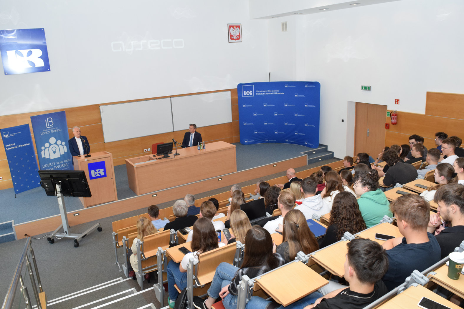 As part of the University of Rzeszów’s regular series of open lectures for students, on 21 May 2025 the Faculty of Economics and Finance had the honour of hosting Dr Adam Góral – founder and CEO of Asseco Poland S.A., the largest IT company in Poland – as well as Mr Artur Wiza, Vice President of the company.