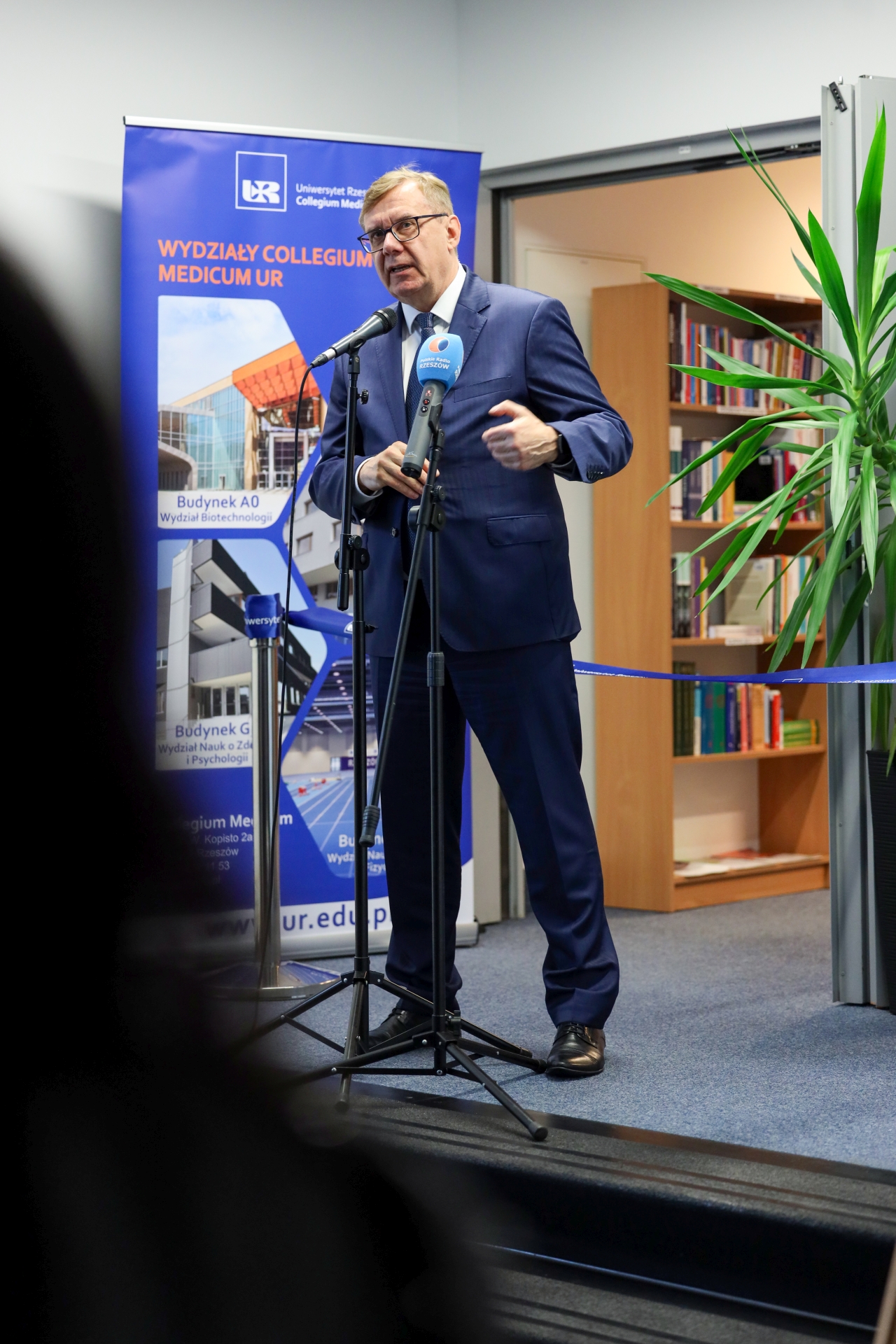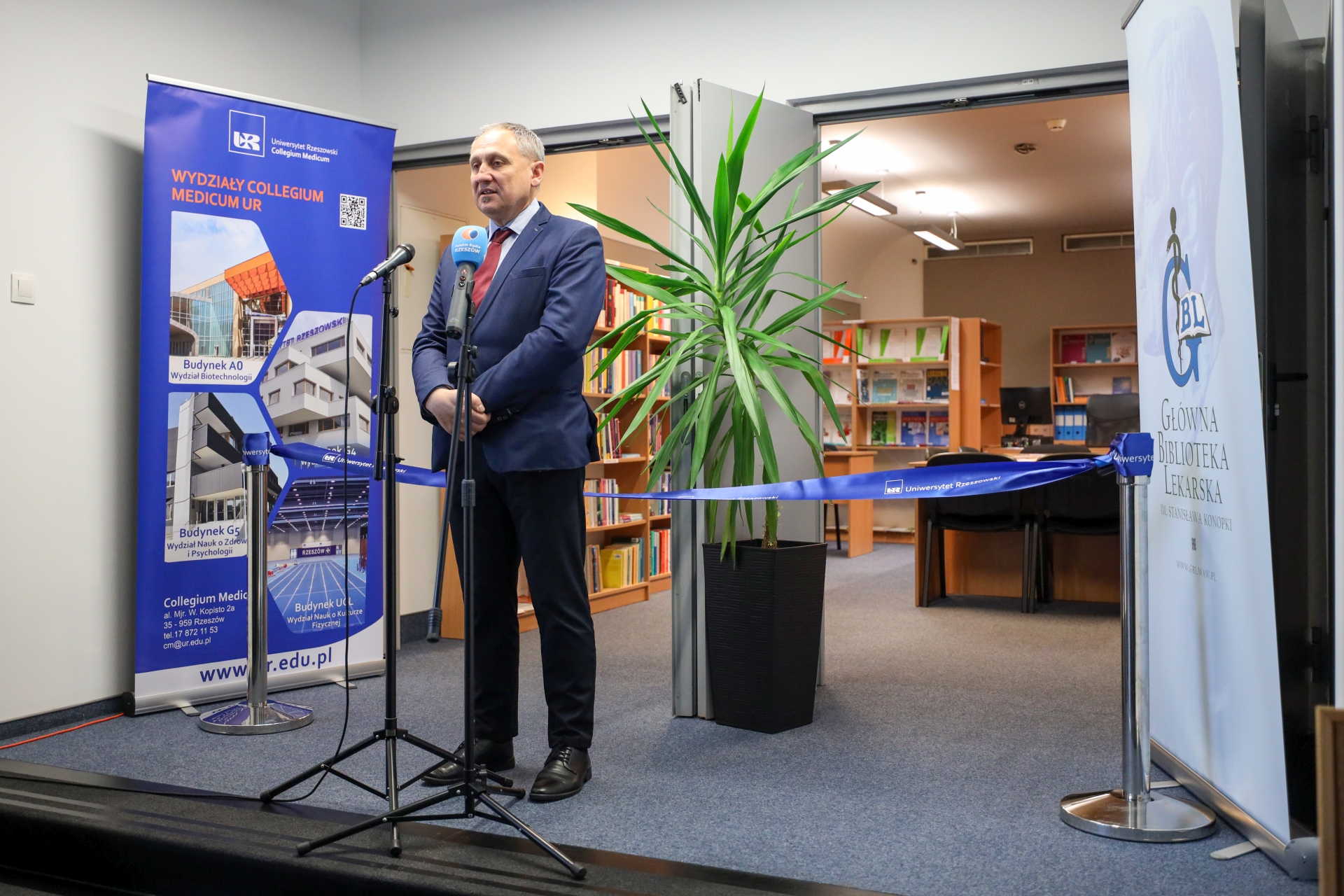 “We are symbolically opening today the Branch of the Main Medical Library on the premises of the University of Rzeszów. It is worth recalling that a similar unit operated here in the past, but for various reasons its activity was suspended. Today we are, one might say, returning to our roots, restoring this place of access to medical knowledge and resources that is so important to the academic community,” emphasised Professor Adam Reich, Rector of the University of Rzeszów.