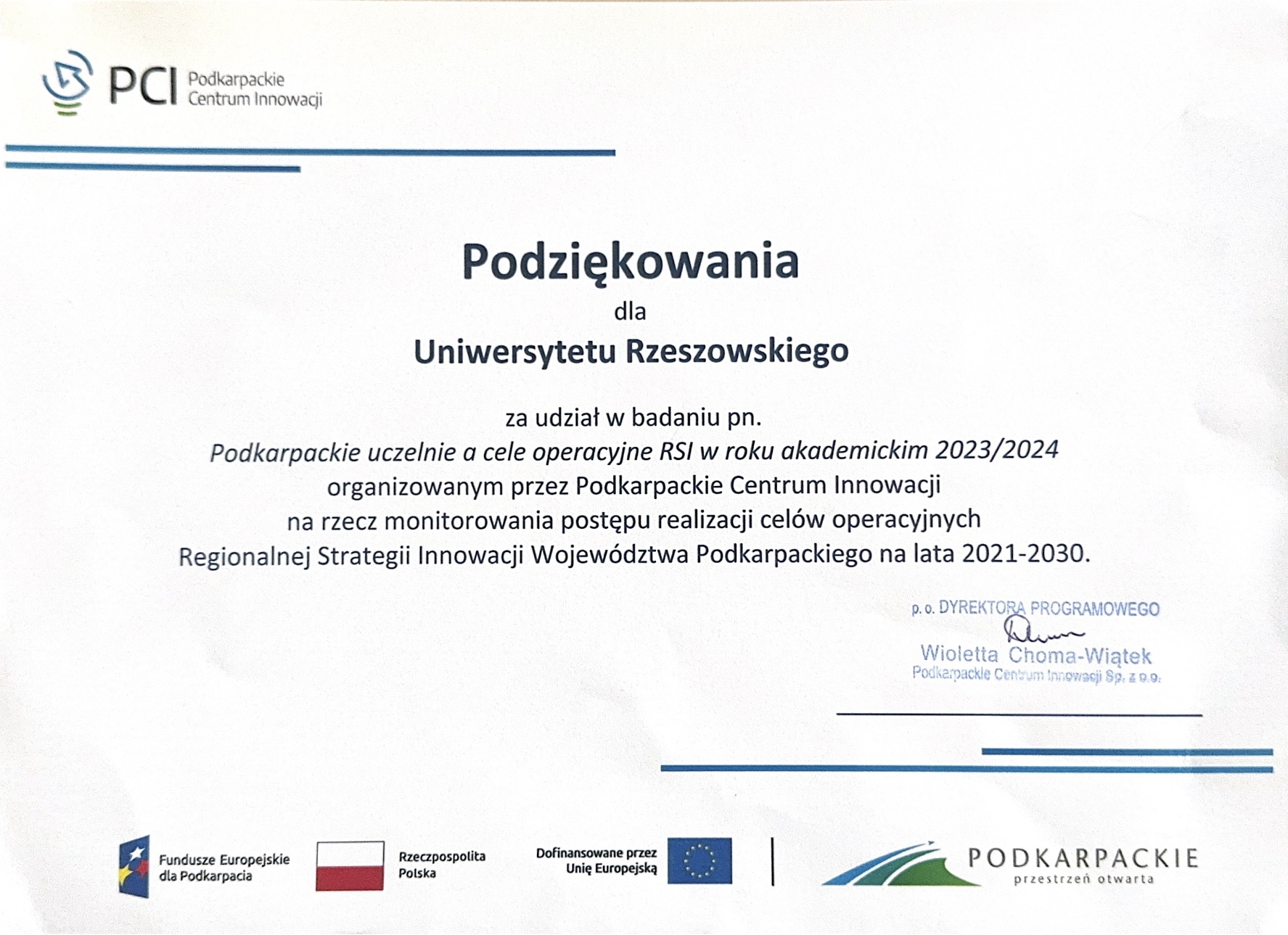 • “Implementation of selected educational areas within the school system in the Podkarpackie Voivodeship” (PLN 409,800) – Project leader: Dr Izabela Marczykowska, Faculty of Education and Philosophy