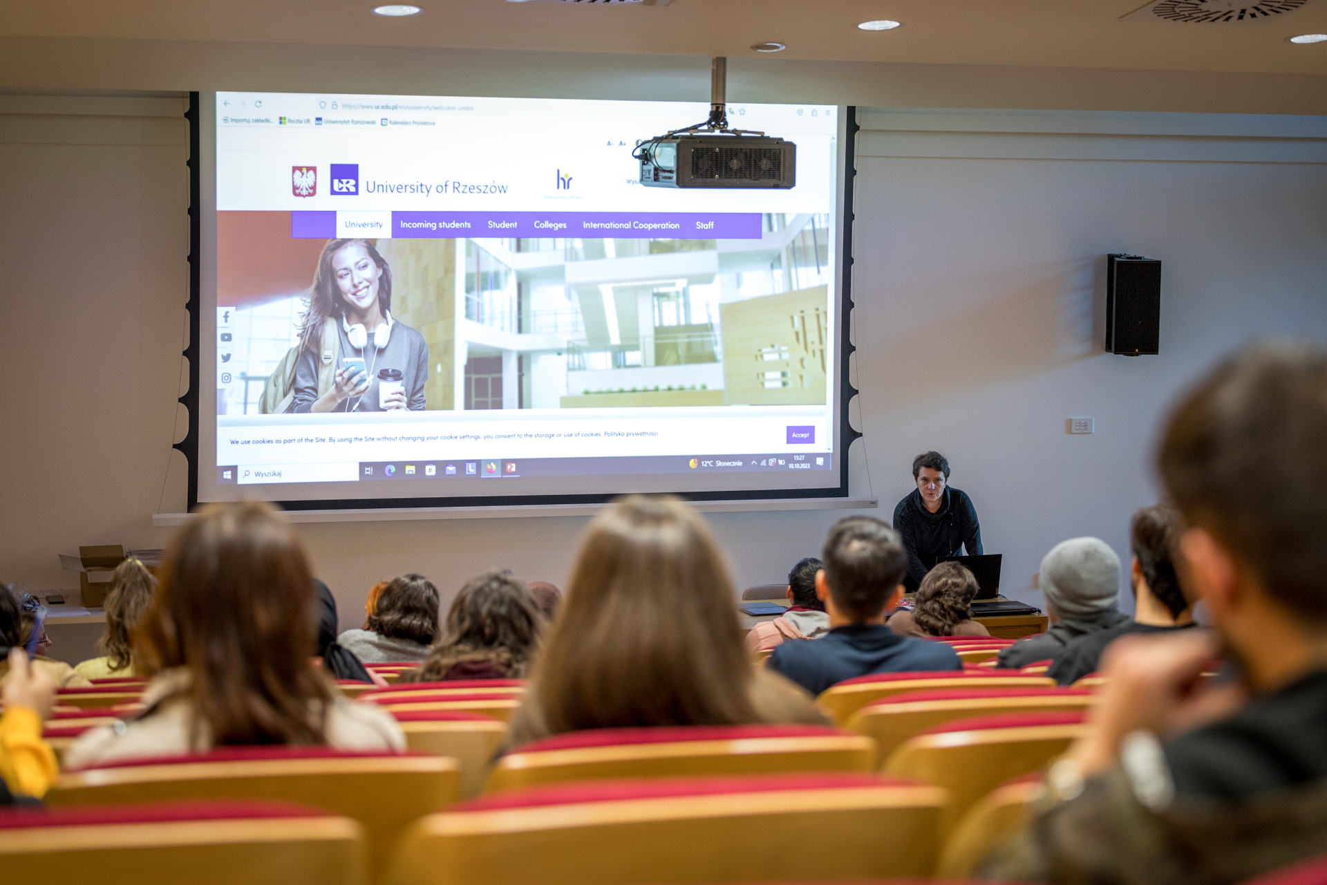 Following the general organizational meeting, intercultural communication workshops were held (the first of planned activities of this type funded by the National Academic Exchange Agency as part of the Welcome to Poland 2022 Program). The workshops were conducted by Dr Jarosław Kinal from the Institute of History at the University of Rzeszów, with the aim of familiarizing the students with the realities of our university and assisting our international students in adapting to life in Rzeszów and Poland.