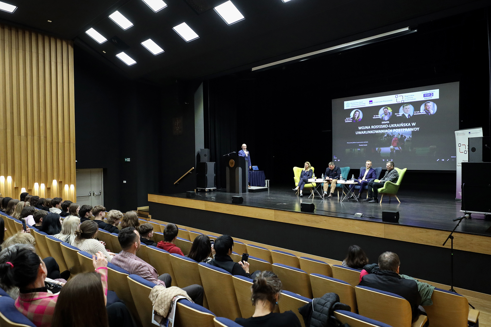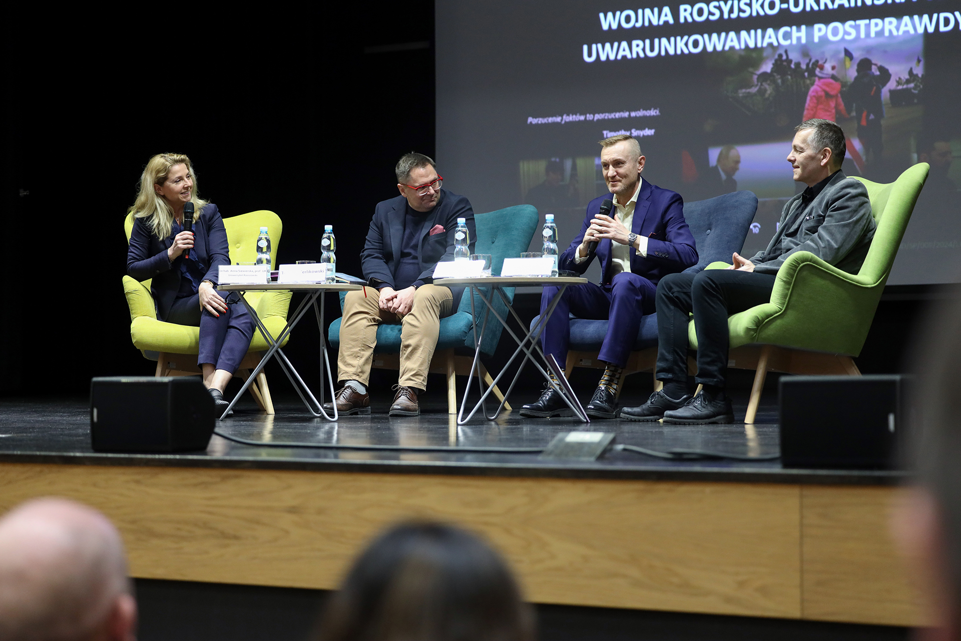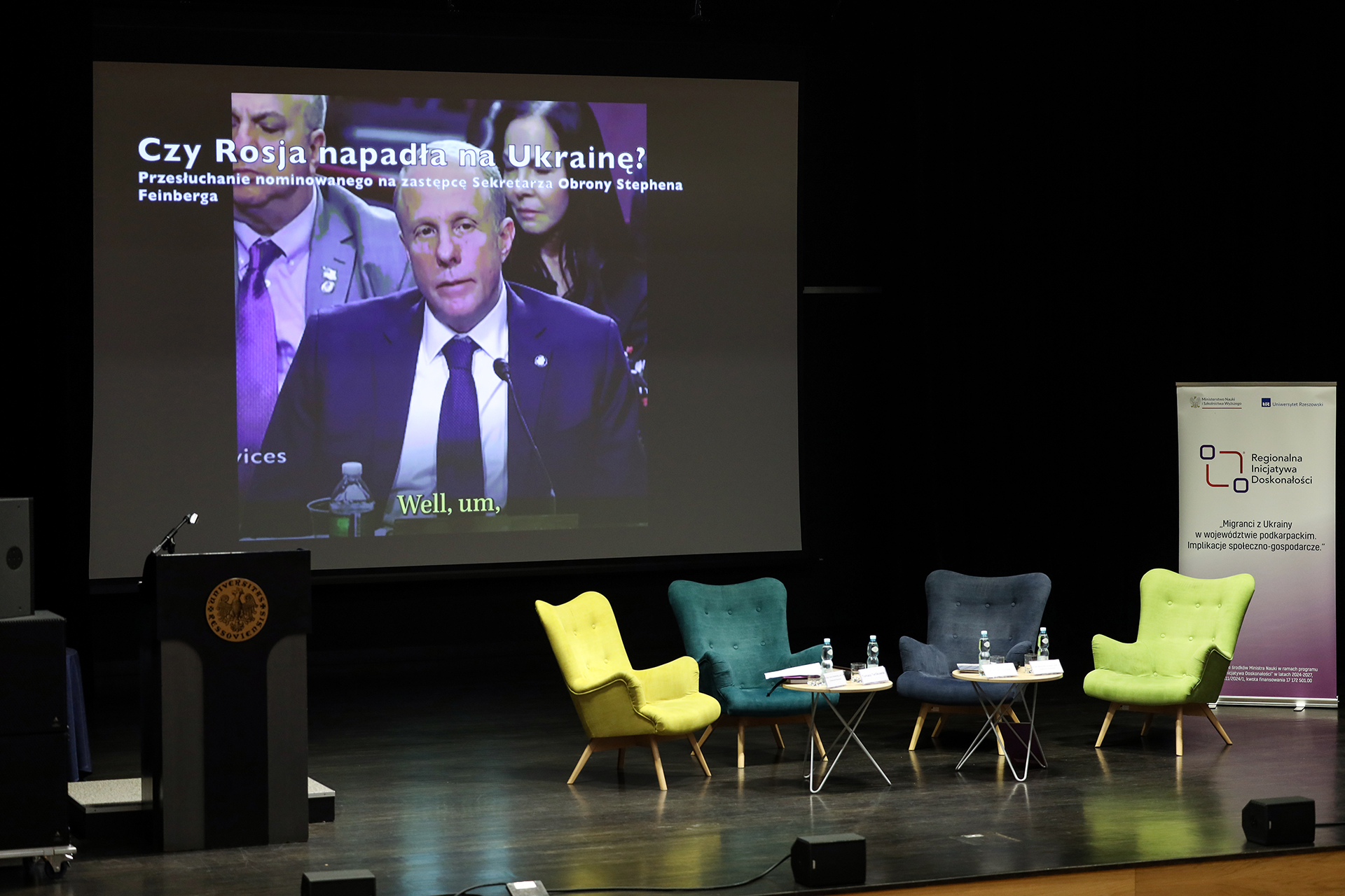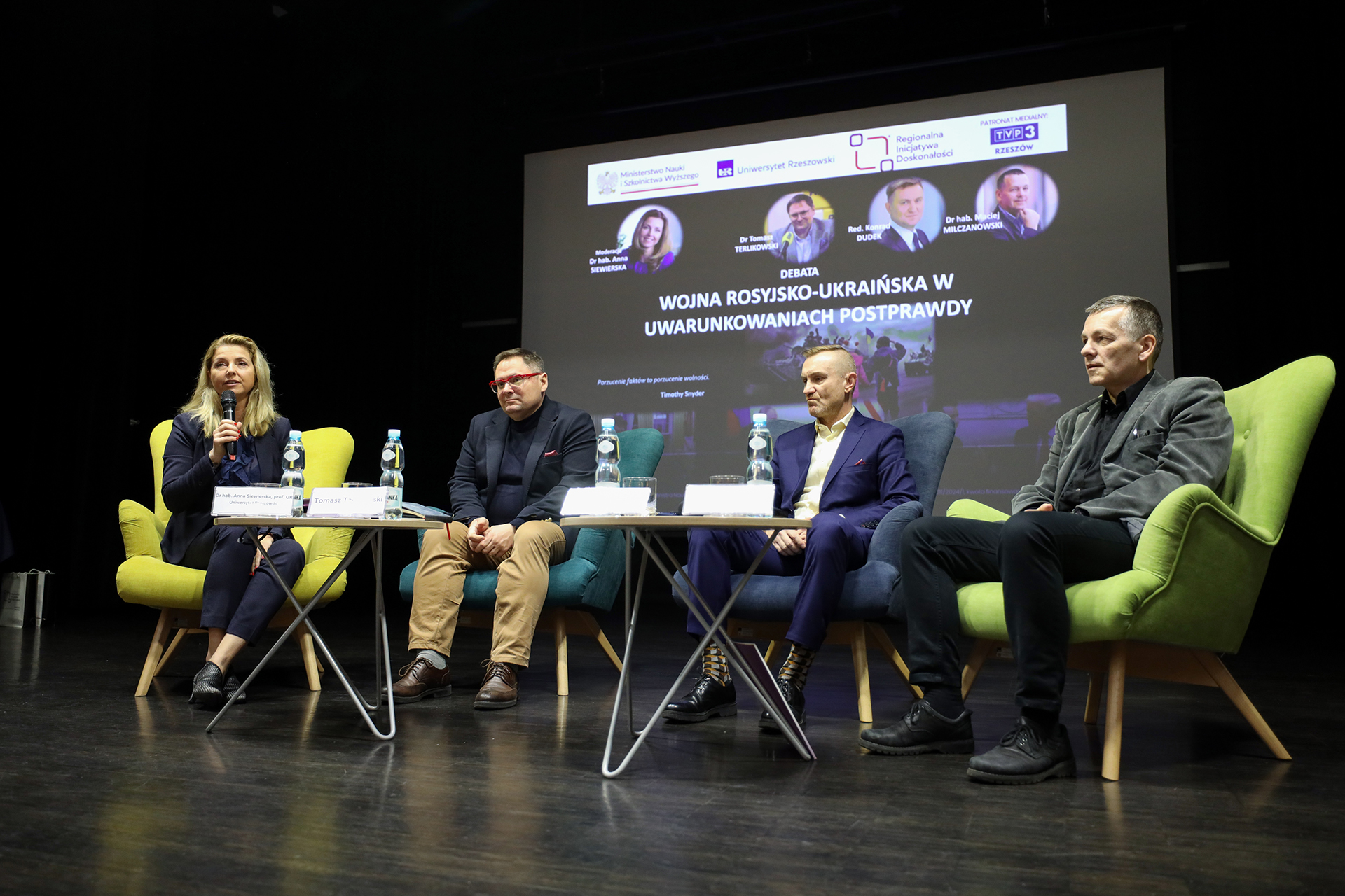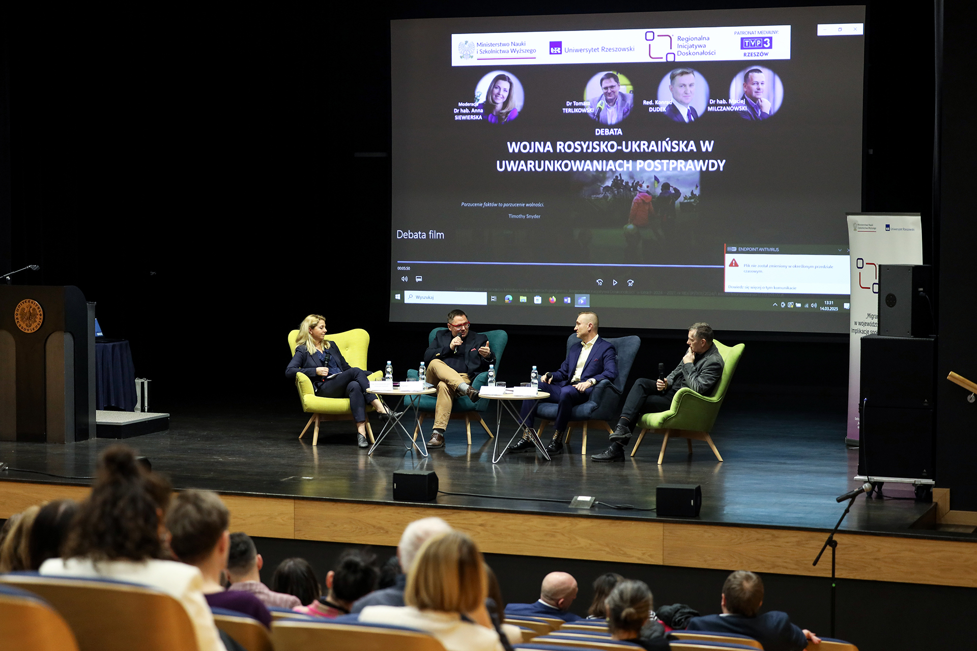On Friday, March 14, the debate titled "The Russo-Ukrainian War in the Context of Post-Truth" took place in the St. Jadwiga Auditorium at the University of Rzeszów. The event was organized as part of the Regional Excellence Initiative project, "Ukrainian Migrants in the Podkarpackie Region: Economic and Social Implications."