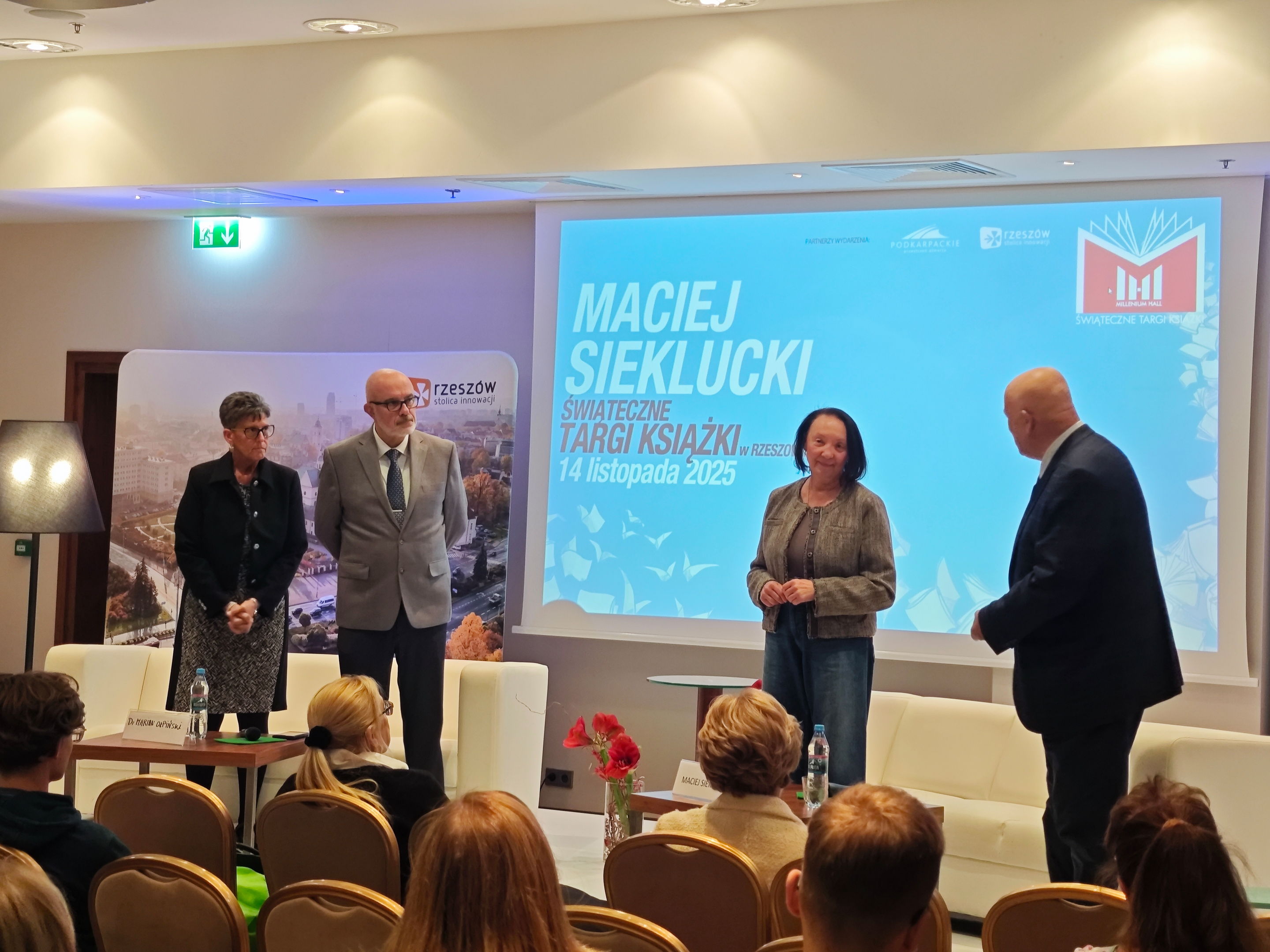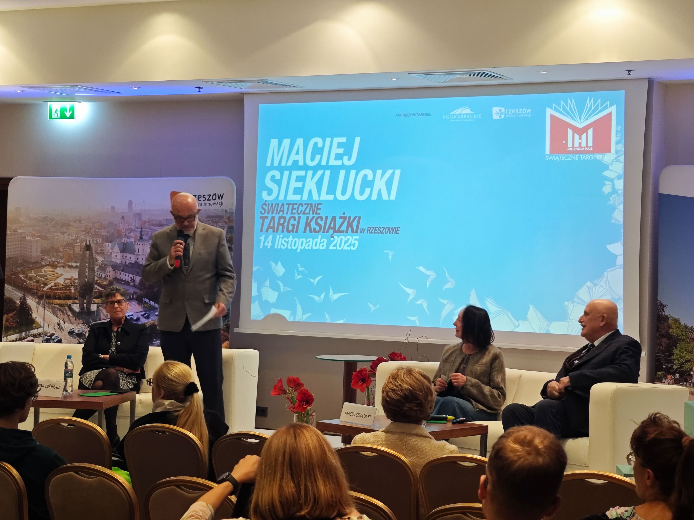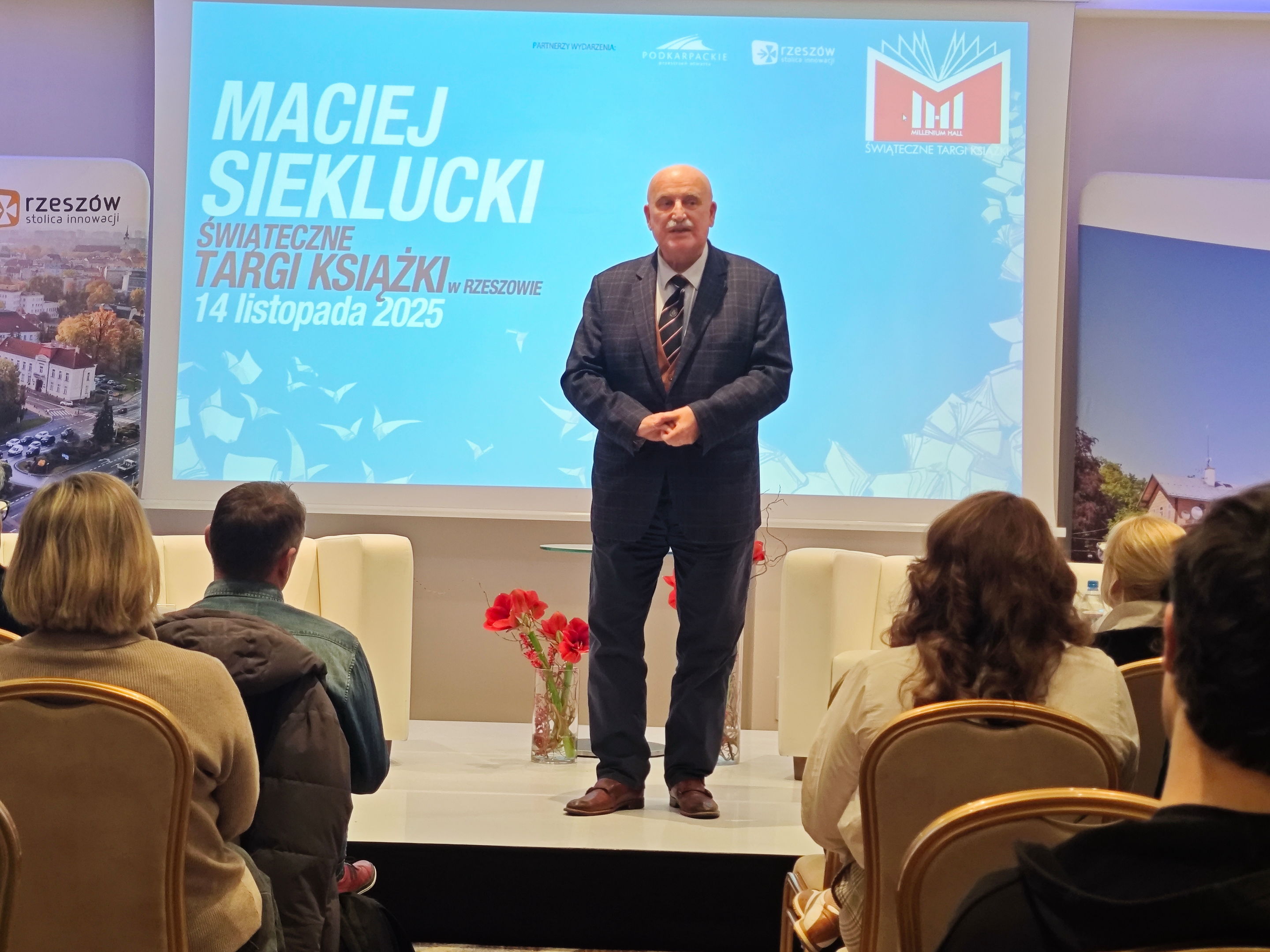Among the many program events, particular attention was drawn to meetings with authors affiliated with the University of Rzeszów. Visitors had the chance to meet Jadwiga Hoff, author of Rozrywki mieszkańców międzywojennego Rzeszowa (Entertainment of the Inhabitants of Interwar Rzeszów), and Prof. Sylwester Czopek, former UR Rector, a distinguished archaeologist and museologist—both publishing through the University of Rzeszów Press. Complementing this segment of the program was a meeting with Maciej Sieklucki, a pediatrician and creator of literature and songs for children, whose publishing work develops independently of the University of Rzeszów Press.