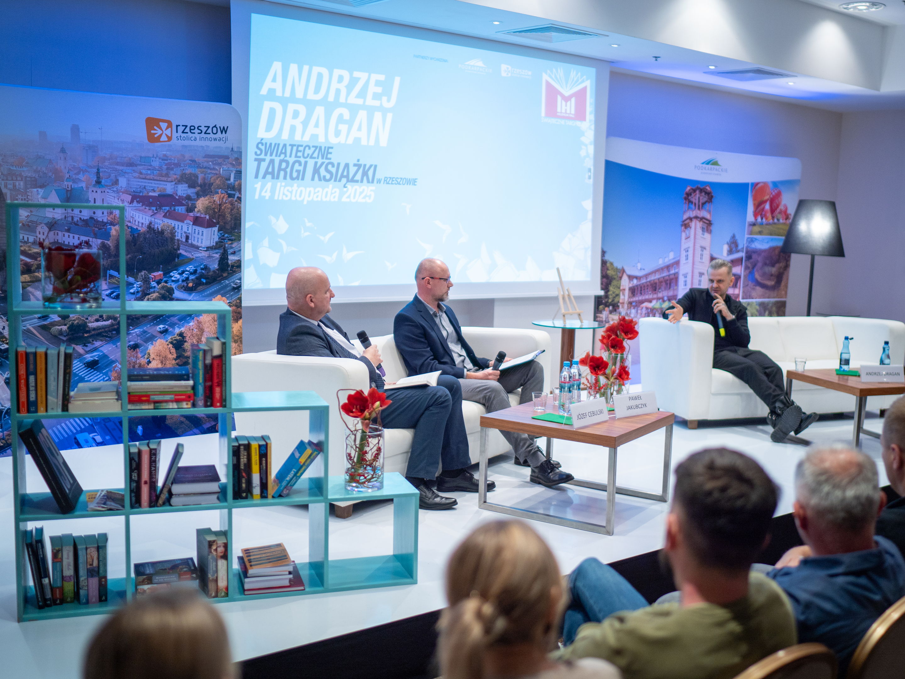 One of the most anticipated highlights of this year’s Christmas Book Fair was a meeting with Prof. Andrzej Dragan—one of Poland’s most renowned physicists, a researcher of international renown, and a visual artist known, among other things, for the distinctive “Dragan effect.” The conversation with the professor was moderated by Associate Professor Józef Cebulski, Vice-Rector for Finance and Development at the University of Rzeszów, and Associate Professor Paweł Jakubczyk. The discussion focused on Prof. Dragan’s academic achievements, including research on the relationship between the theory of relativity and quantum mechanics, as well as contemporary challenges related to the development of artificial intelligence and its impact on science and society.