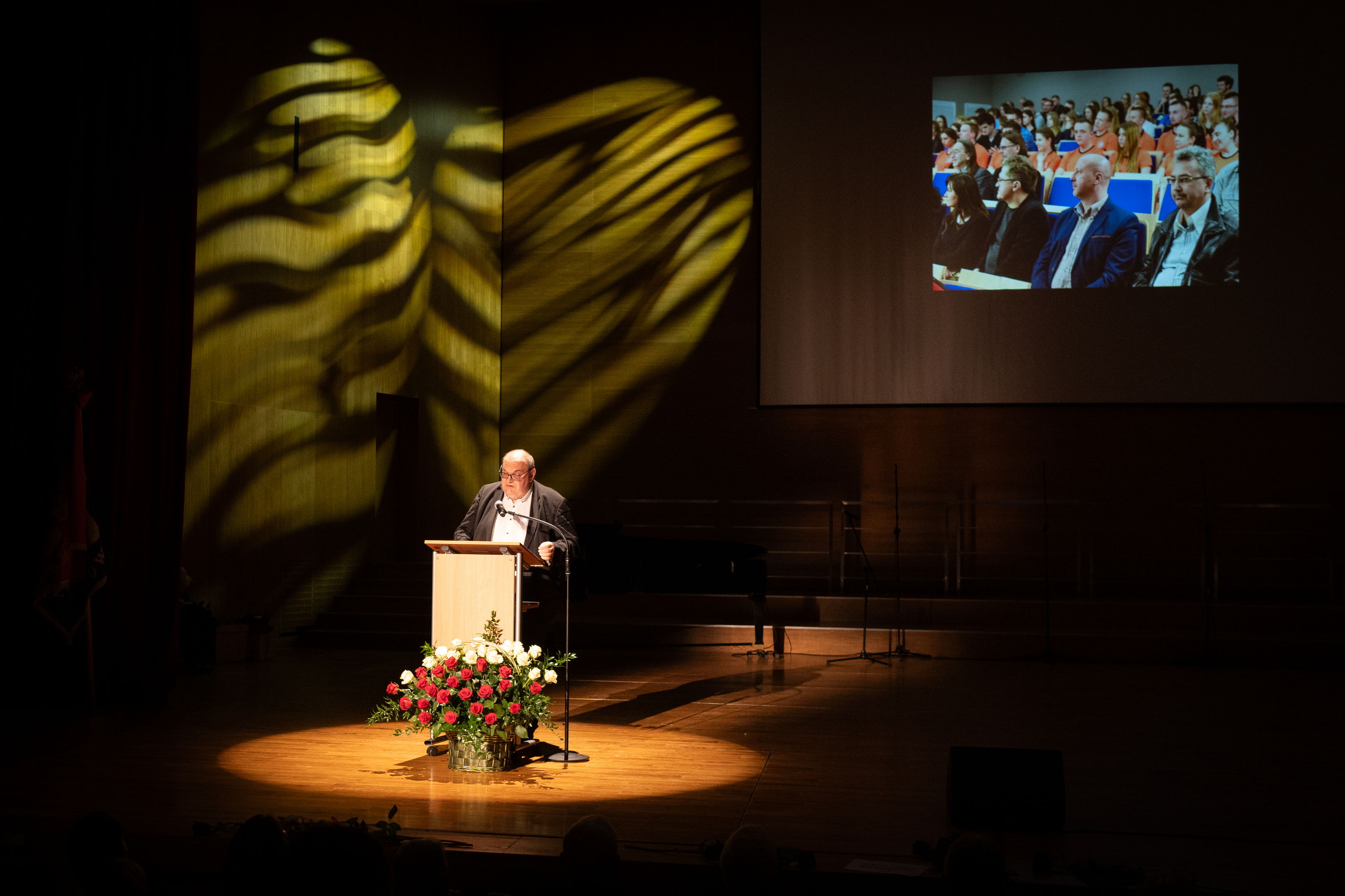 The festivities began on Wednesday, 17 September, with the Conference of Rectors of Academic Medical Universities (KRAUM). On Thursday, 18 September, the University of Rzeszów hosted the opening of the exhibition “Faces of Support in Illness” and signed a partnership agreement between the Medical College of the University of Rzeszów and the Nutricia Foundation. On the same day, the central anniversary ceremony took place at the Podkarpackie Philharmonic – it included addresses delivered by representatives of the University’s authorities, honours awarded to distinguished staff members, and a concert by the Medical College Choir together with the Faculty of Music of the University of Rzeszów.