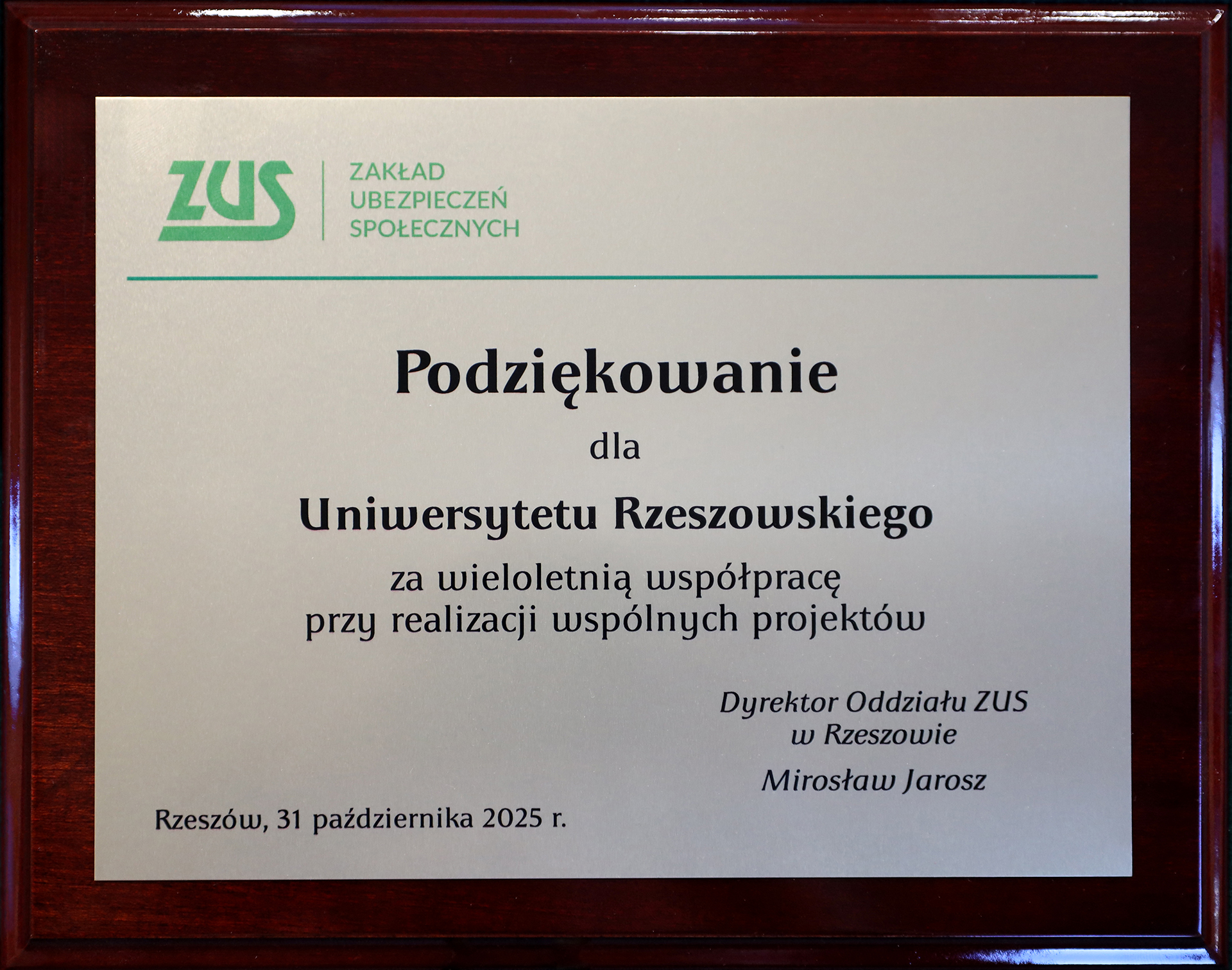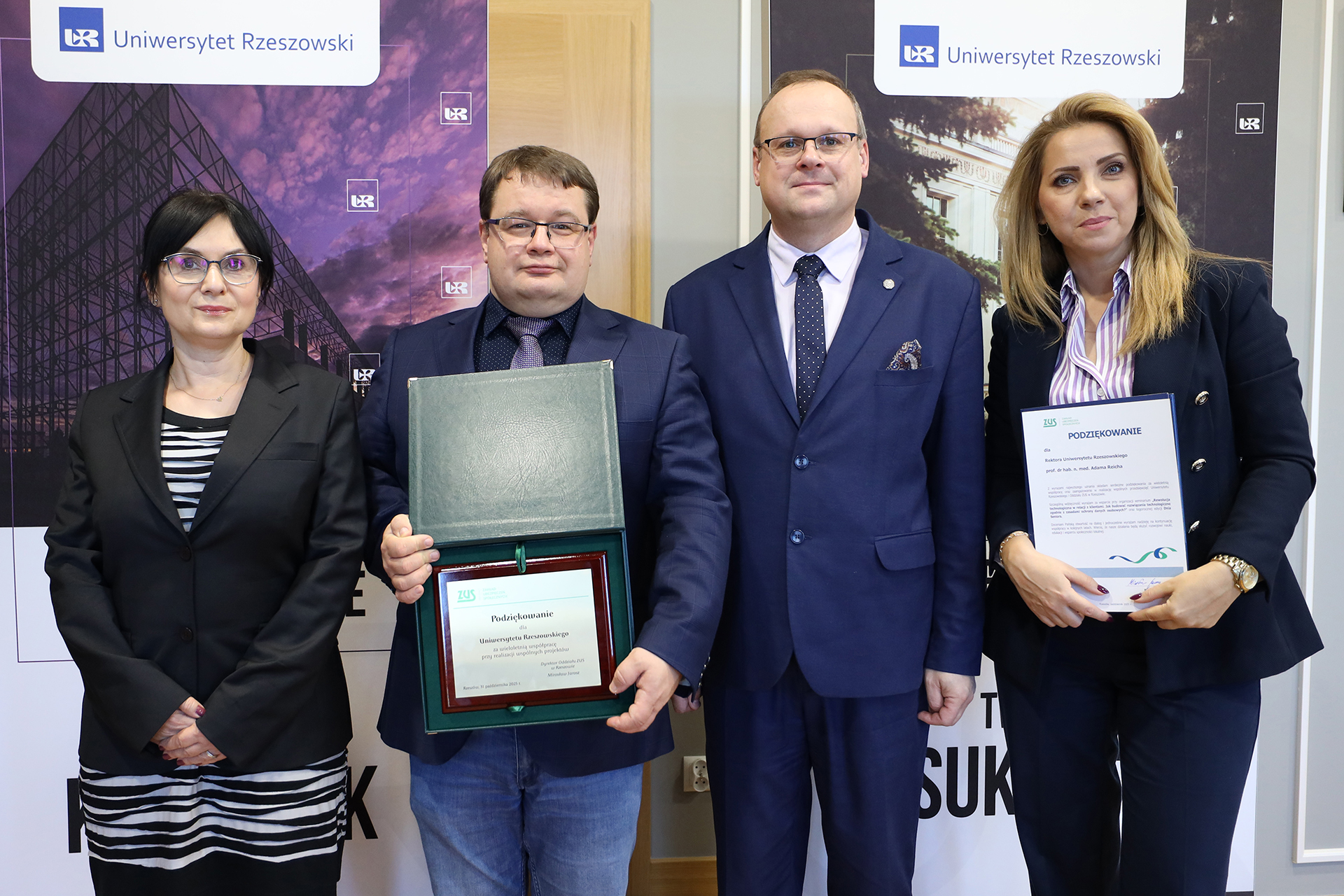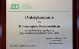 The Rzeszów Branch of the Social Insurance Institution (ZUS) has honoured the Rector of the University of Rzeszów, Professor Adam Reich with an official letter of appreciation for many years of fruitful collaboration and engagement in joint initiatives benefiting the local community.