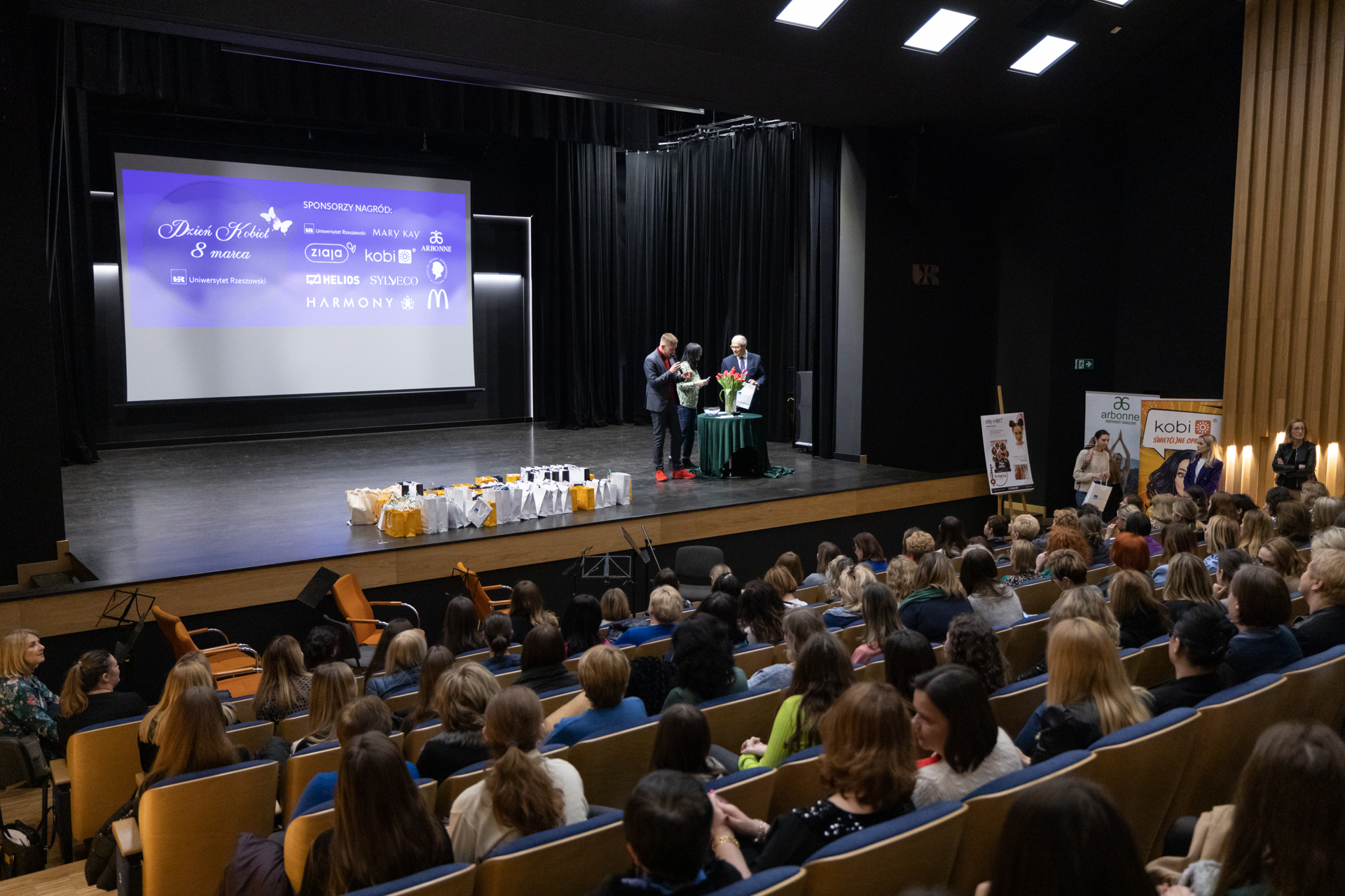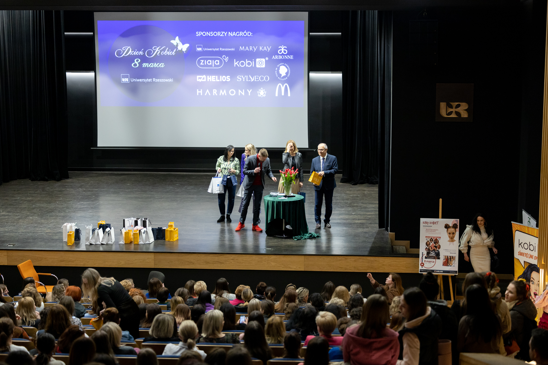 On March 8, on the occasion of Women's Day, the Resovia Saltans Song and Dance Ensemble danced and sang for the gathered guests on the stage of the auditorium in the A1 building. Rector of the University of Rzeszów, Prof. Sylwester Czopek welcomed and expressed his best wishes to all the ladies studying and working at the University of Rzeszów. After the concert there was a draw of women's gifts. Thanks to our sponsors, we have prepared over 150 packages! Each of the ladies also received a small cosmetic gift. University Women's Day gathered over 400 guests. Thank you for your presence!