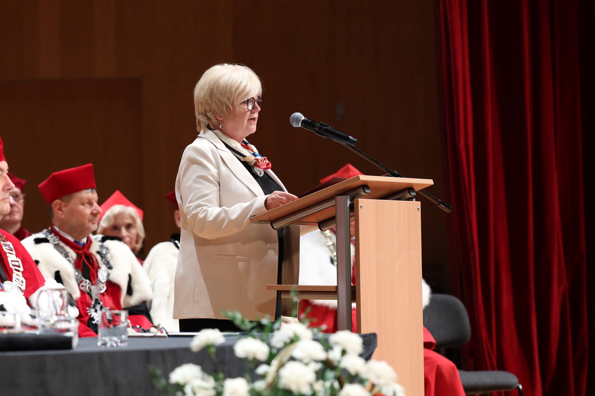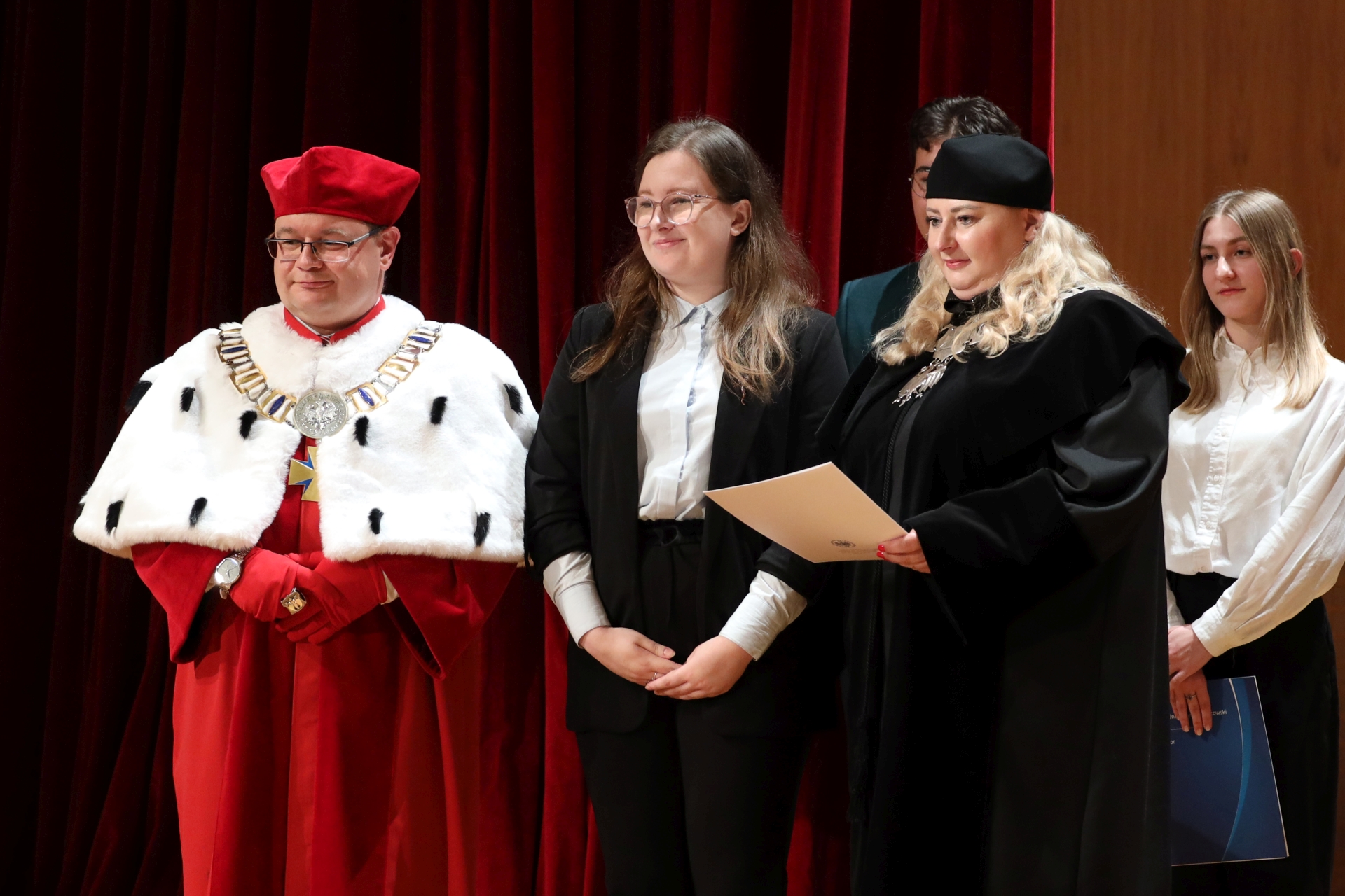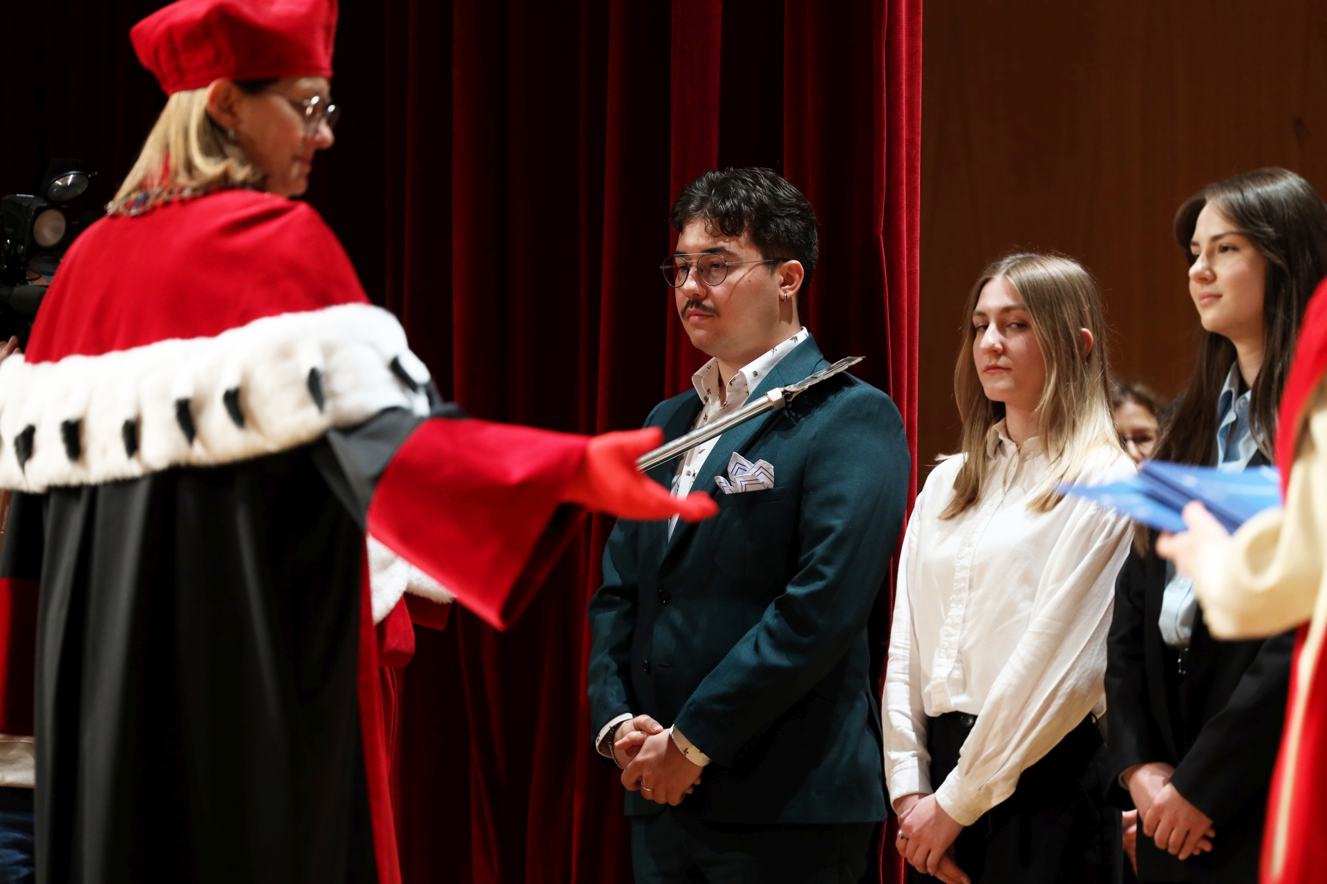The Inauguration Ceremony introduced first-year students to the academic community. Representatives of individual colleges, first-year students, received congratulatory letters confirming their acceptance into the academic community of the University of Rzeszów. This part of the ceremony was led by Prof. Sabina Grabowska, Vice-Rector for Student Affairs and Education. The academic community was also joined by doctoral students starting their education at the Doctoral School. The matriculation ceremony of doctoral students was led by dr hab. Marta Łuszczak, prof. UR, Director of the Doctoral School.
