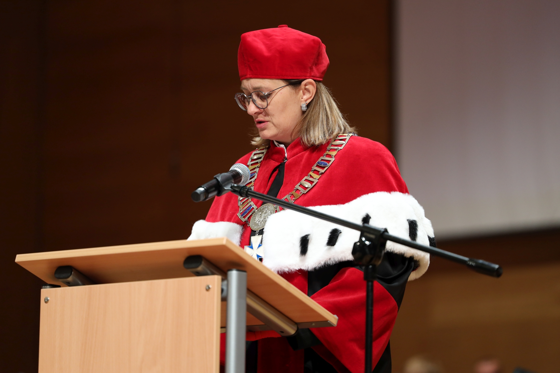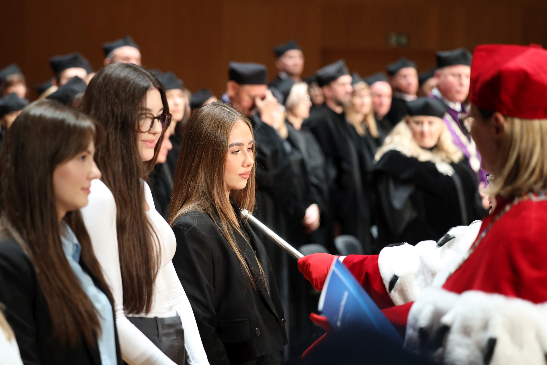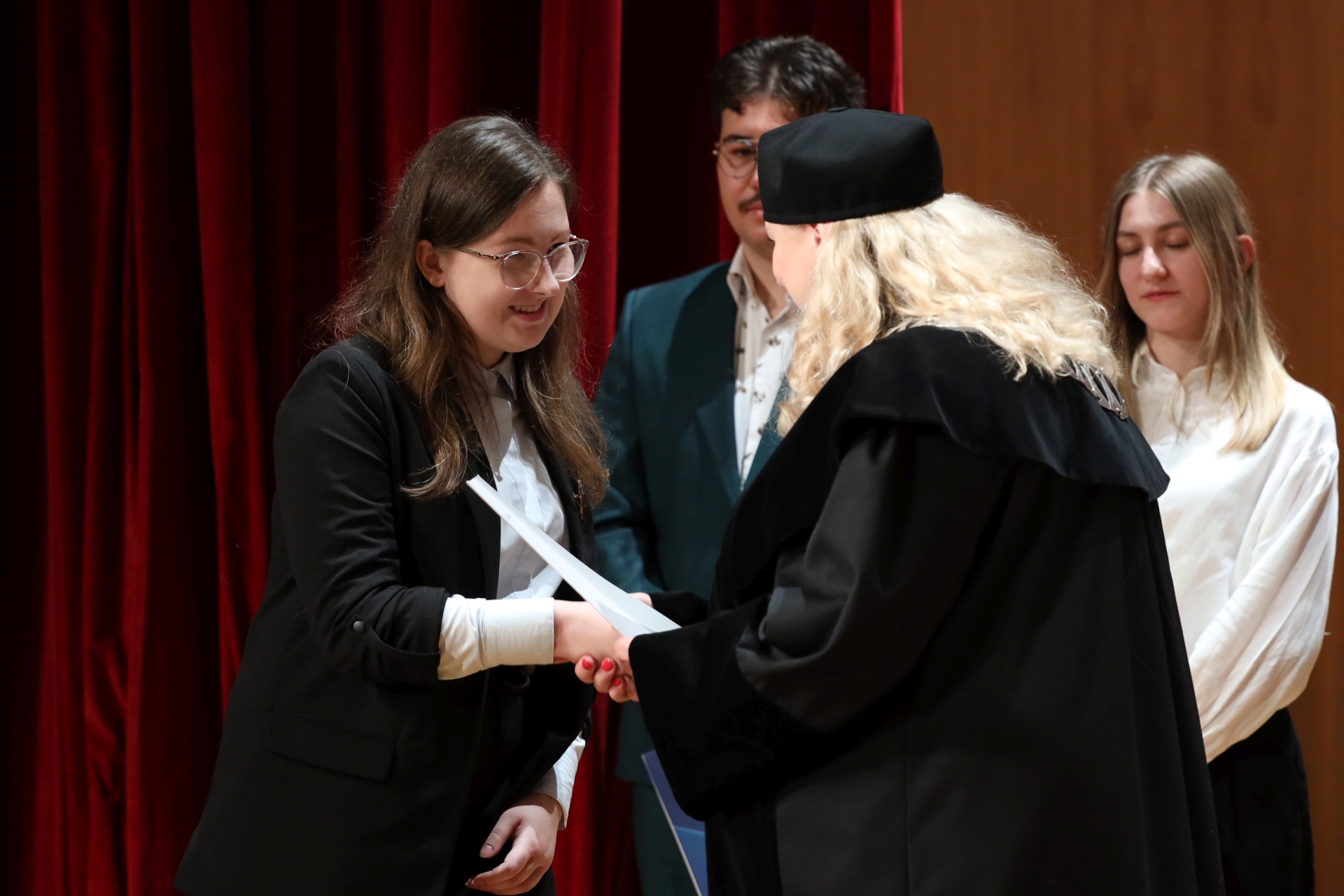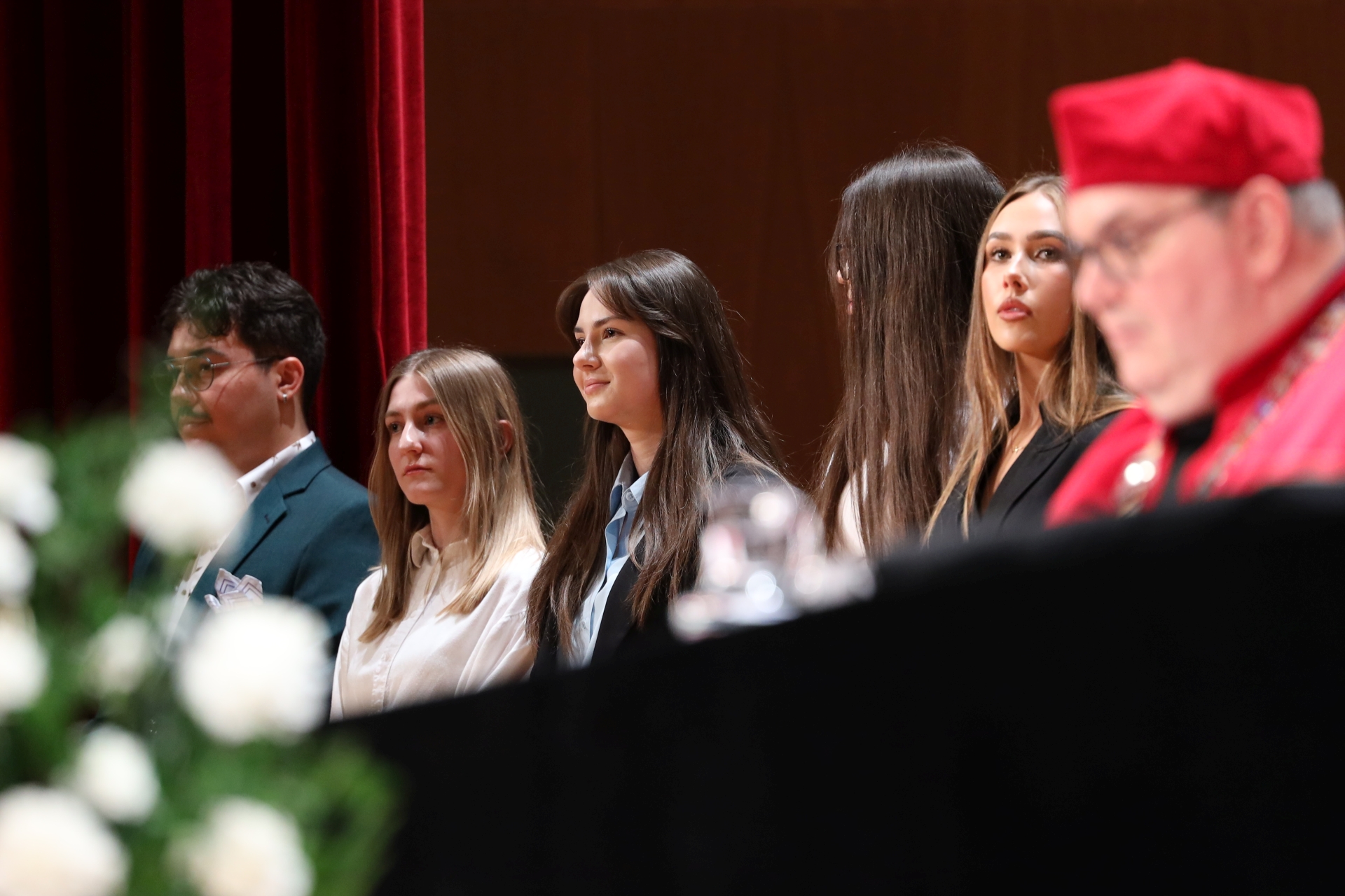 The Inauguration Ceremony introduced first-year students to the academic community. Representatives of individual colleges, first-year students, received congratulatory letters confirming their acceptance into the academic community of the University of Rzeszów. This part of the ceremony was led by Prof. Sabina Grabowska, Vice-Rector for Student Affairs and Education. The academic community was also joined by doctoral students starting their education at the Doctoral School. The matriculation ceremony of doctoral students was led by dr hab. Marta Łuszczak, prof. UR, Director of the Doctoral School.