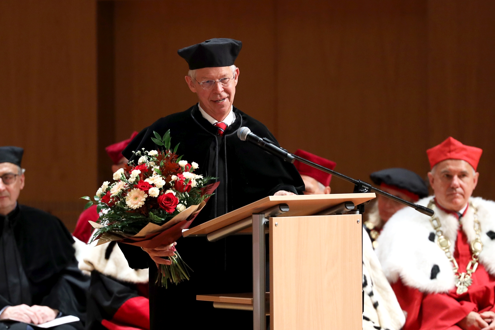 During today's ceremony, the Universitati Resoviensi Merito Medal was awarded. This honourable distinction was awarded to Prof. Berthold Koletzko.