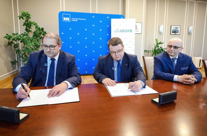 A significant agreement was signed during a meeting in the office of the Rector of the University of Rzeszów. The signatories included Professor Adam Reich, Rector of UR, and Błażej Borowiec, Director of the Podkarpackie Regional Branch of the Agency for Restructuring and Modernization of Agriculture (ARiMR). The meeting was also attended by Adam Dziedzic, Member of the Polish Parliament (Sejm RP).