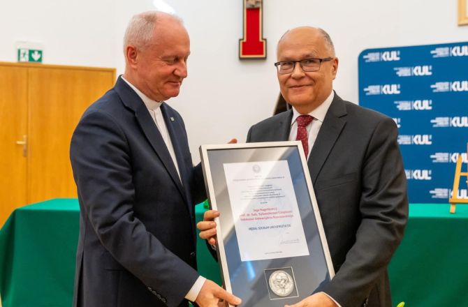 The Rector of the University of Rzeszów, Professor Sylwester Czopek, received the Signum Universitatis Medal awarded by the Rector of the John Paul II Catholic University of Lublin.