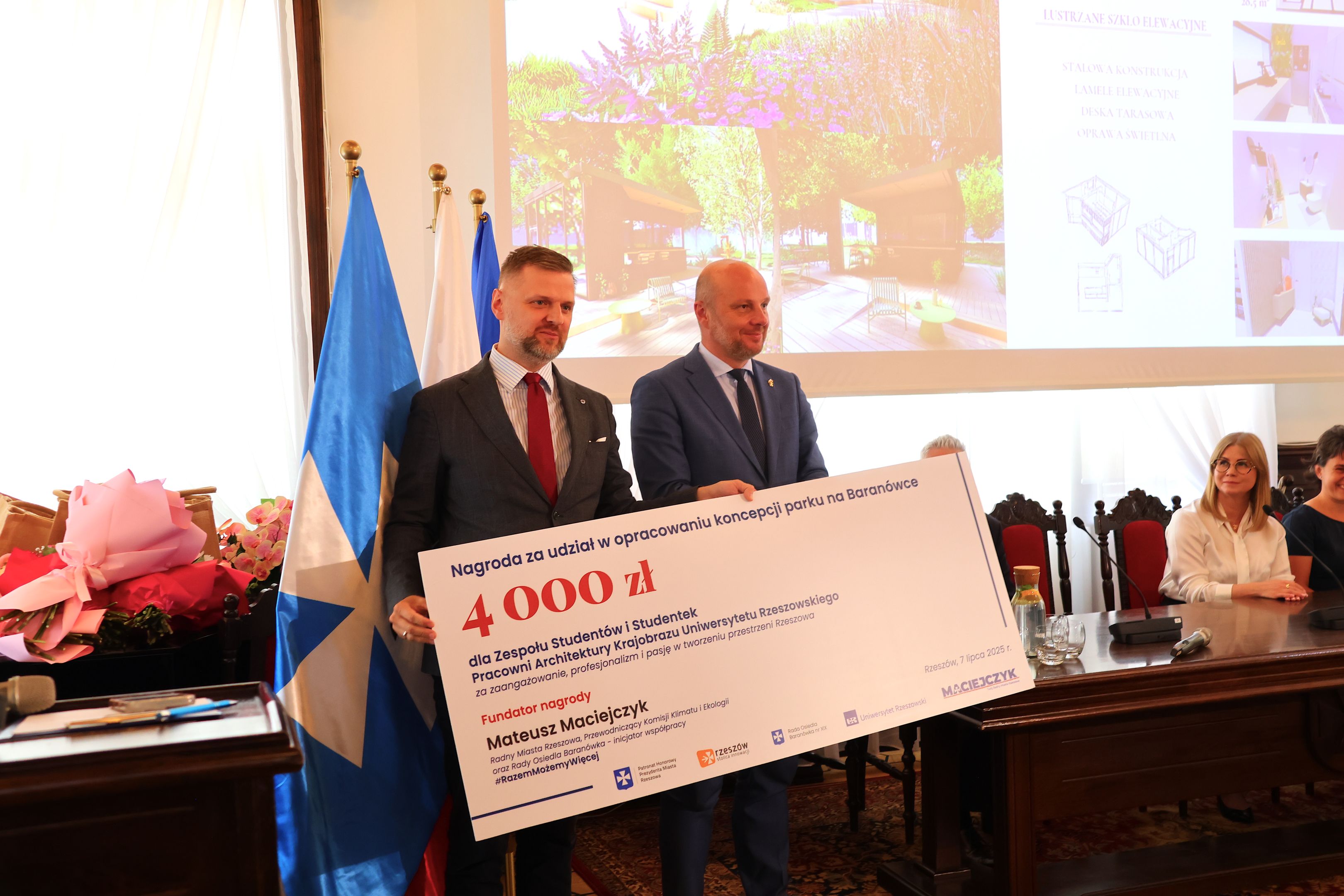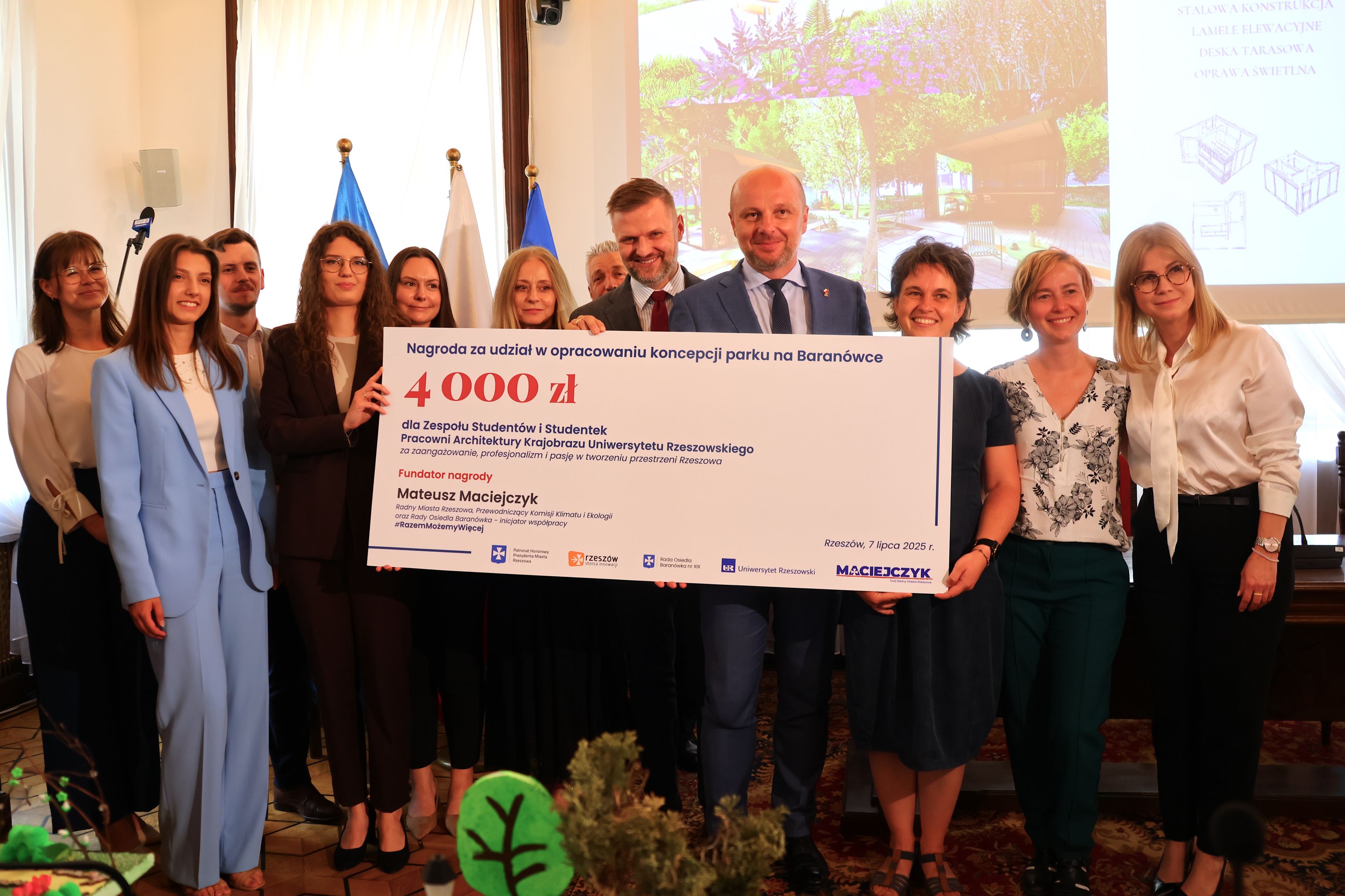 A pleasant highlight of the event was the presentation of a financial award of PLN 4,000 to the student team involved in designing the development concept for the Baranówka park. The prize was sponsored by Mateusz Maciejczyk, Rzeszów City Councillor, Chair of the Climate and Ecology Committee and the Baranówka District Council.
