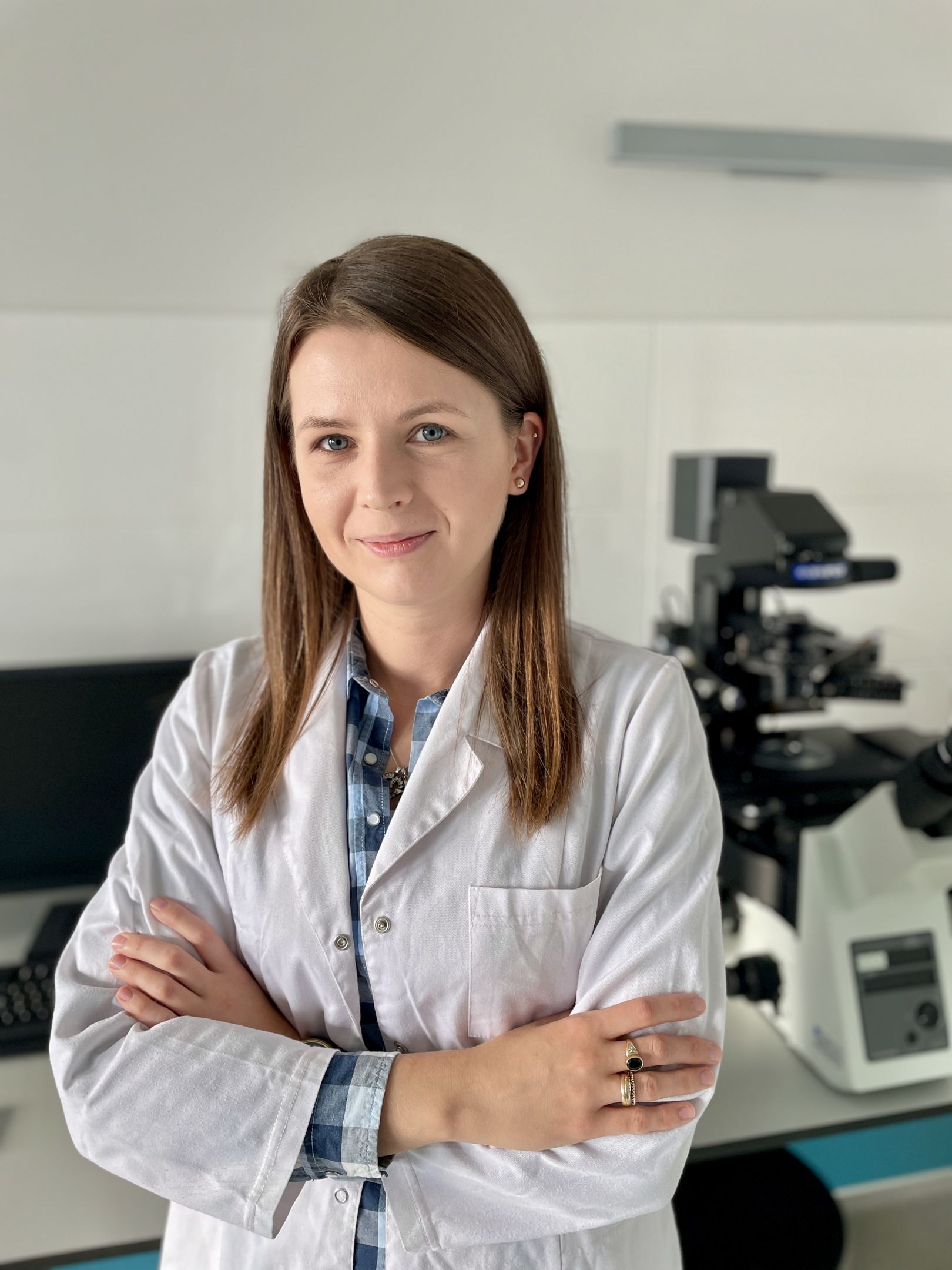 Pani dr inż. Gabriela Betlej realizowała pracę doktorską zatytułowaną „Ocena potencjału terapeutycznego metylotransferazy DNMT2/TRDMT1 w odpowiedzi na liposomalne kompleksy zewnątrzkomórkowego RNA w modelach komórkowych kostniakomięsaka in vitro” pod kierownictwem naukowym Pana prof. dr hab. Macieja Wnuka oraz Pani dr Iwony Rzeszutek.
