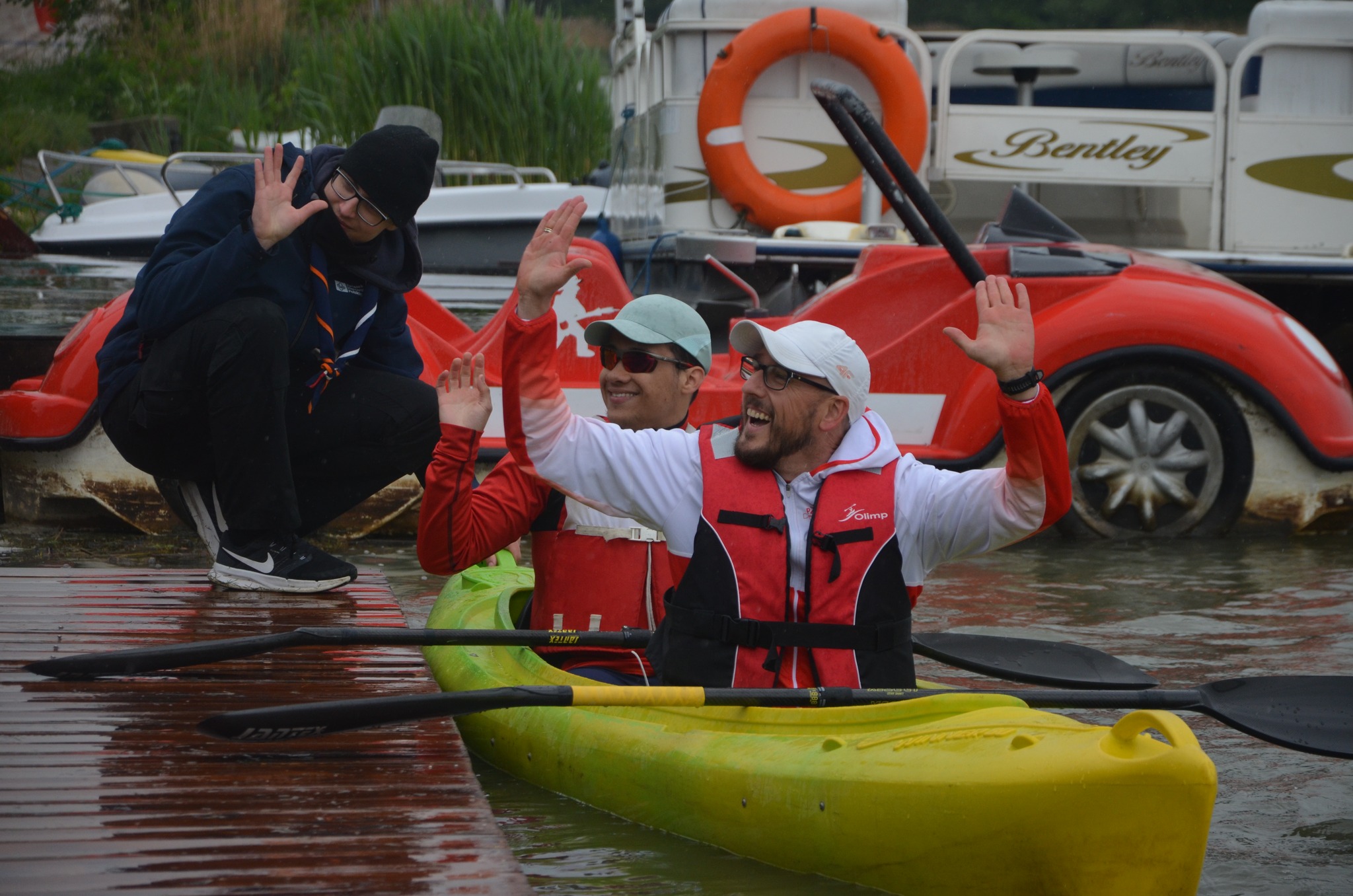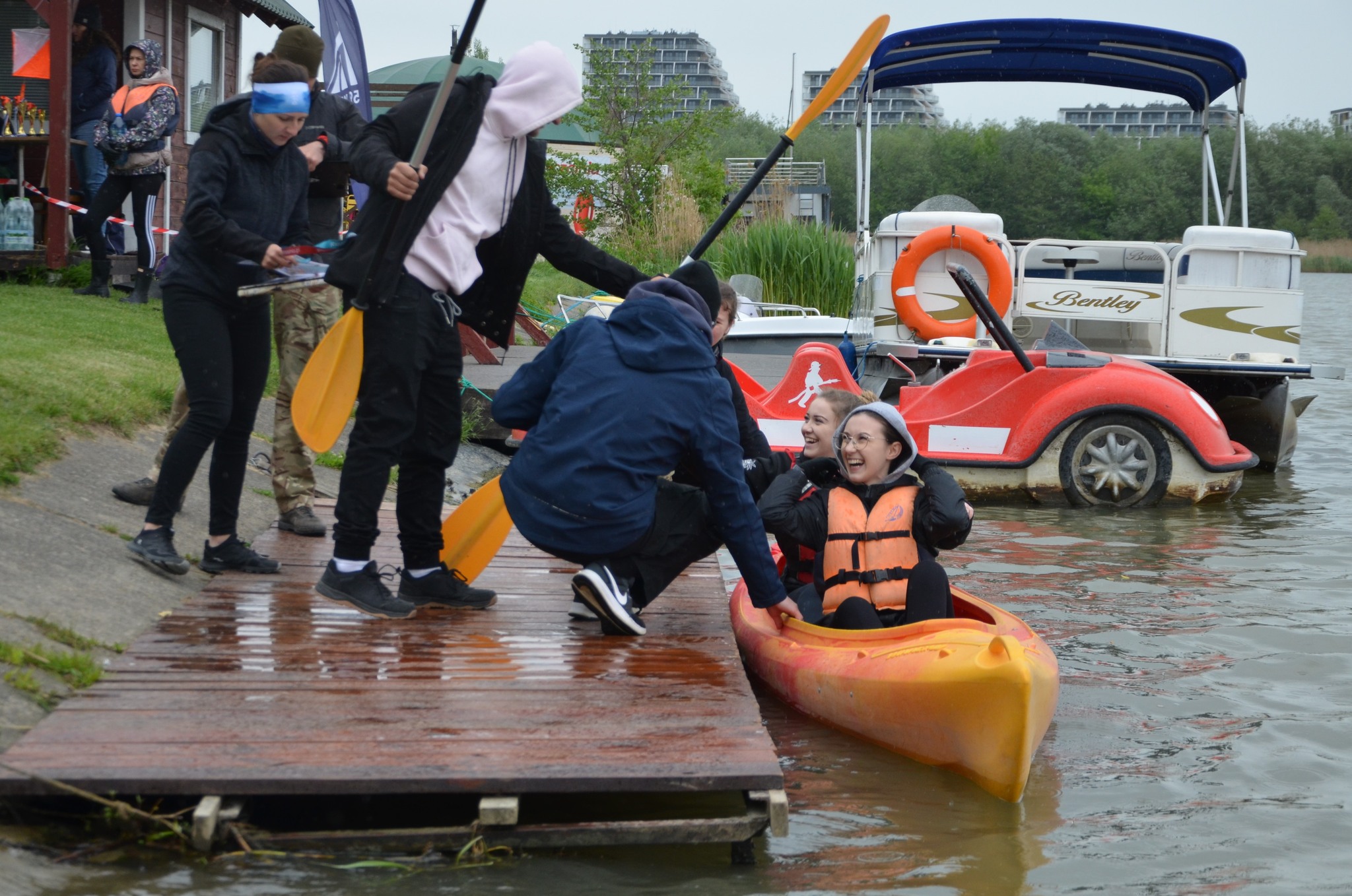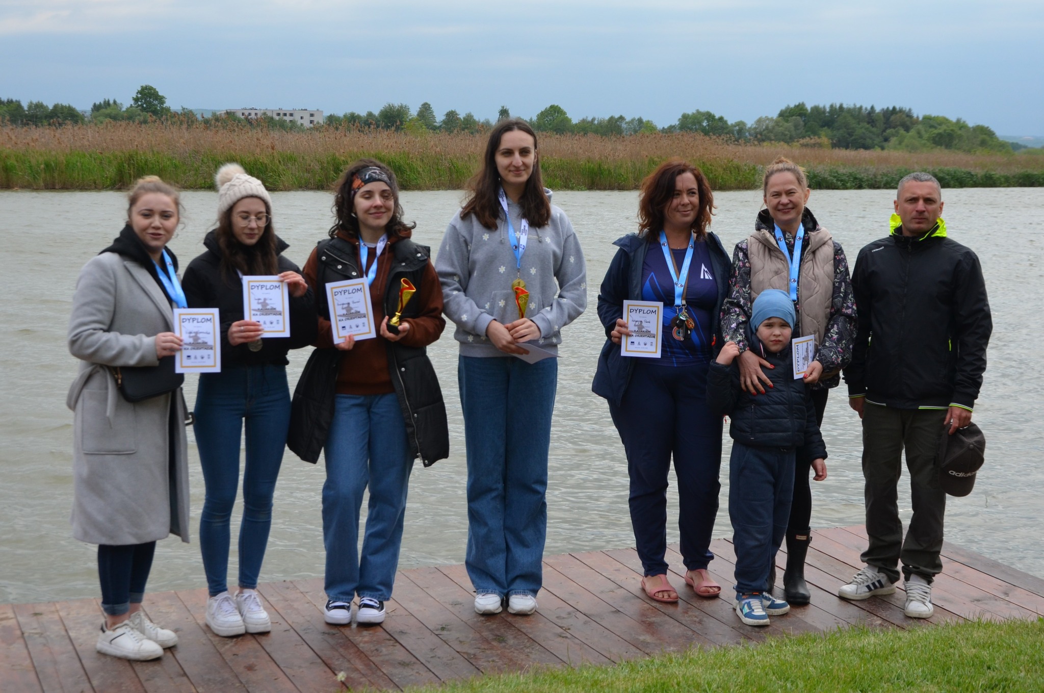 10 maja, a pogoda nie dopisuje. Niemniej jednak działamy zgodnie z planem. To na ten dzień zaplanowaliśmy już po raz dziesiąty naszą cykliczną imprezę KAJAKIEM NA ORIENTACJĘ. Organizatorami jak zwykle są: Studium Wychowania Fizycznego i Rekreacji Wydziału Nauk o Kulturze Fizycznej, Collegium Medicum, Uniwersytetu Rzeszowskiego, 59 Wodna Drużyna Harcerska oraz Rzeszowski Klub Kajakowy. Tym razem zgłoszonych było jedynie 18 osad, które rywalizowały w trzech konkurencjach nie bojąc się deszczu i zimna. Uczestnicy podziwiali tereny, które większość mieszkańców Rzeszowa zna lecz nie poświęca im większej uwagi. To okolice Zalewu, które są piękne i pozostają nieodkryte przez ludzi. To właśnie tam, umiejscowione zostały punkty, które musieli odnaleźć wszyscy uczestnicy tej imprezy. W tym roku odnalezienie punktów było bardzo wymagające i niektórym nie udało się odnaleźć wszystkich. Kolejny raz największa konkurencja odbywała się w kategorii mixtów. To tam najszybsza okazała się osada w składzie Iwona i Artur Olszówka. Znalezienie wszystkich punktów i powrót na metę zajęło im nieco ponad godzinę (1.05.45) Drugie miejsce w konkurencji mixt wywalczyli Maciej Piotrowski z córka Igą (1.15.07), a z trzeciego cieszyli się Ewelina i Andrzej Kusiak (1.17.55). W konkurencji mężczyzn najszybsi byli: Maciej Przybyła i Sebastian Twardzik, którym pokonanie trasy zajęło 1.25.09. Drugie miejsce wywalczyli Daniel i Stanisław Poźniak (1.30.31), a na najniższym stopniu podium stanęli: Wiesław Bać i Andrzej Sierżęga (1.41.52). Tu warto zwrócić uwagę na osadę, która finiszowała na czwartym miejscu. To Krzysztof Stanio, który płynął ze swoim trenerem Tomaszem Krawcem. Niestety nie udało im się odnaleźć jednego punktu, ale czas mieli najszybszy z wszystkich w swojej konkurencji. Krzysztof to osoba, która na co dzień porusza się na wózku inwalidzkim. Równie zacięta walka odbyła się w konkurencji dwójek kobiet. Tam najszybsze podobnie jak w roku 2022, 2024 były: Katarzyna Kidacka i Anastazja Banaś, którym opłynięcie całej trasy zajęło 1.18:05 (warto zauważyć, że był to czas szybszy od osad męskich), za nimi finiszowały debiutantki Natalia Oparowska z Iwoną Cios (1.41.45) a na trzecim miejscu finiszowały Katarzyna Panek z Małgorzatą Tomaszewicz (1.49.31). Warto dodać, że kajakiem na orientację w Rzeszowie wchodzi w skład cyklu Pucharu polski imprez na orientację. Wszystkim uczestnikom gratulujemy. Serdecznie dziękujemy ratownikom Rzeszowskiego WOPR, którzy po raz kolejny pomogli w zabezpieczeniu imprezy. FOTO: Krzysztof Magryś.