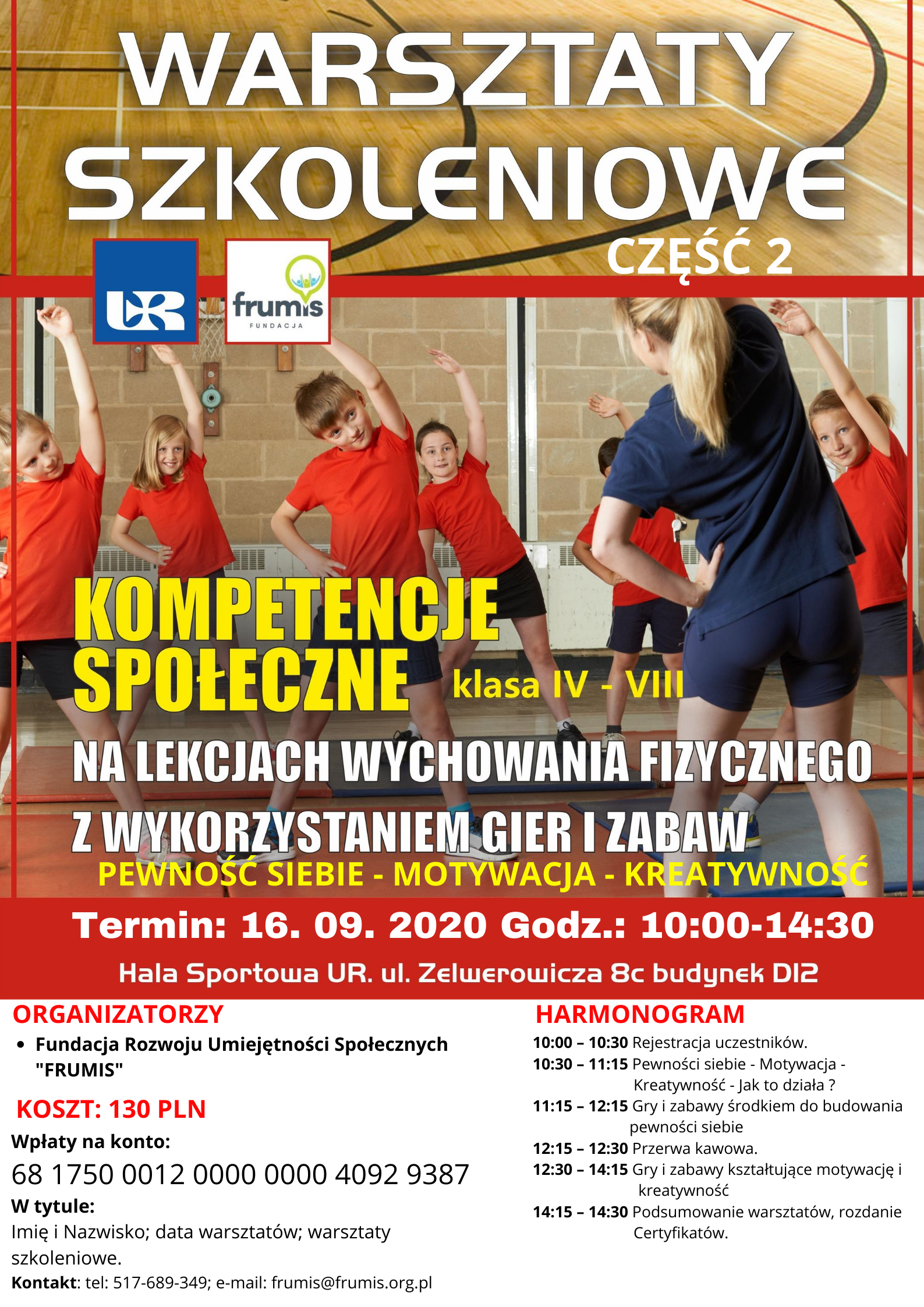 Zapraszamy na II część warsztatów szkoleniowych dla nauczycieli wychowania fizycznego, które odbędą się w dniu 16.09.2020.
