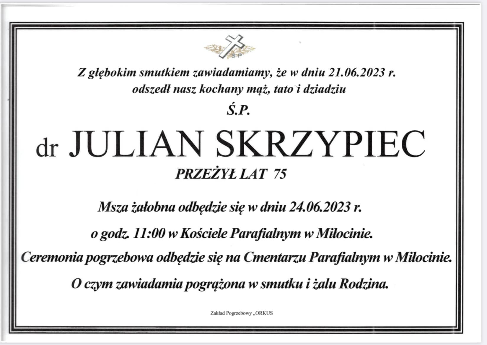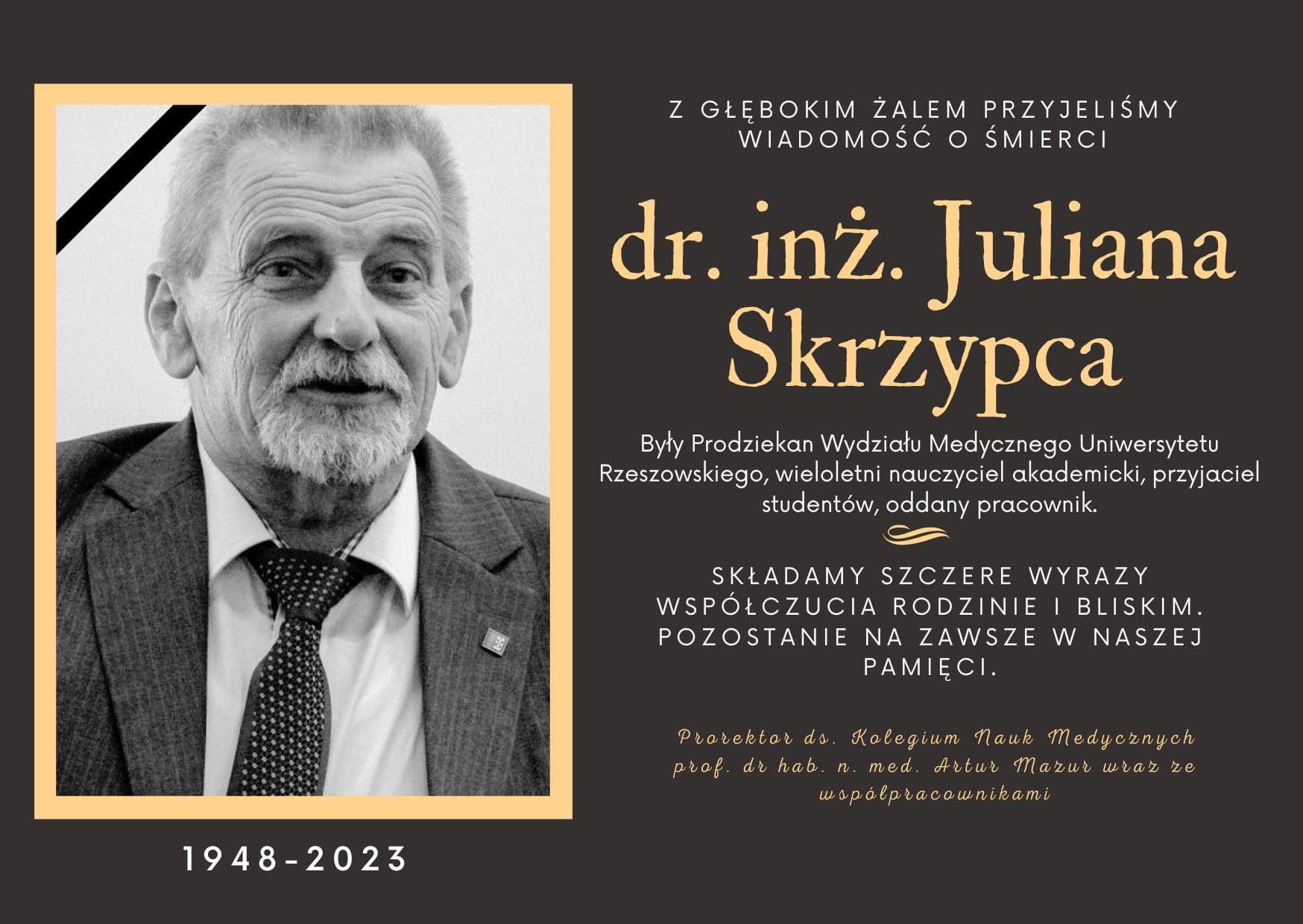 Z głębokim żalem i smutkiem żegnamy naszego Przyjaciela dr Juliana Skrzypca