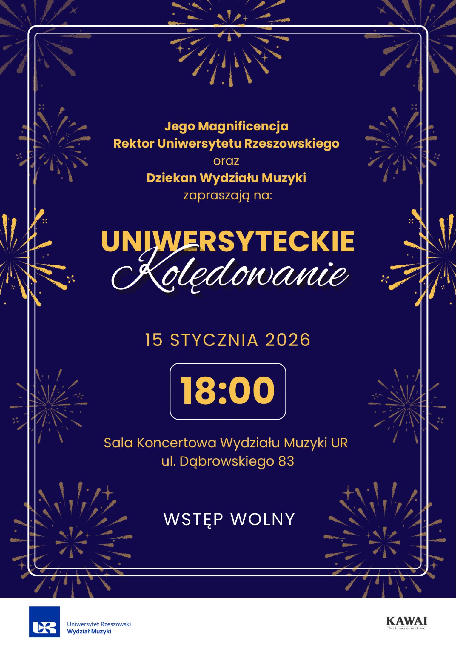 Wierzymy, że wspólne muzykowanie i szczególna atmosfera wywołana brzmieniem najpiękniejszych kolęd i pastorałek będzie wspaniałym doświadczeniem, które zbliży nas jako społeczność i utrwali wartości, które od lat budują tożsamość Uniwersytetu Rzeszowskiego.