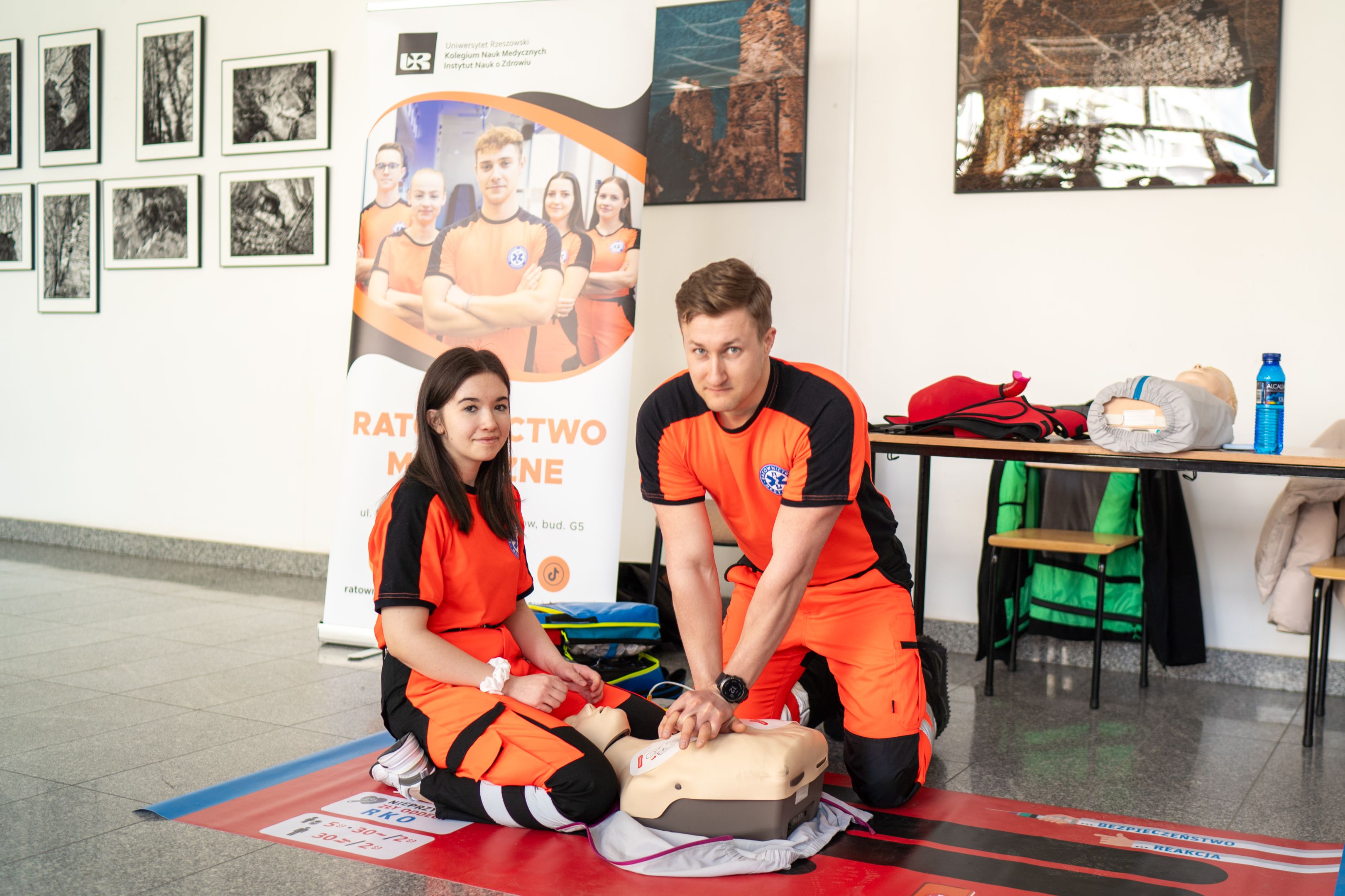Swoją działalność zaprezentowało również SKN Ratownictwo Medyczne, promując wiedzę z zakresu pierwszej pomocy i bezpieczeństwa zdrowotnego. Uczestnicy mieli okazję nauczyć się podstawowych czynności ratujących życie, takich jak resuscytacja krążeniowo-oddechowa (RKO), obsługa automatycznego defibrylatora (AED), a także właściwego reagowania w sytuacjach zagrożenia zdrowia i życia. Dzięki interaktywnym pokazom i ćwiczeniom praktycznym każdy mógł poczuć się pewniej w rolach świadka zdarzenia i potencjalnego ratownika.