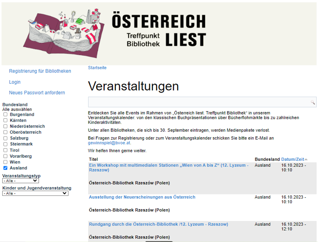 Międzynarodowy festiwal literacki "Austria czyta – spotkajmy się w bibliotece" ("Österreich liest - Treffpunkt Bibliothek")