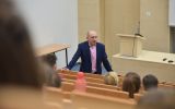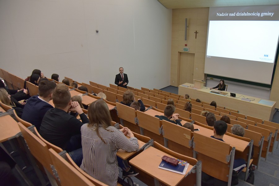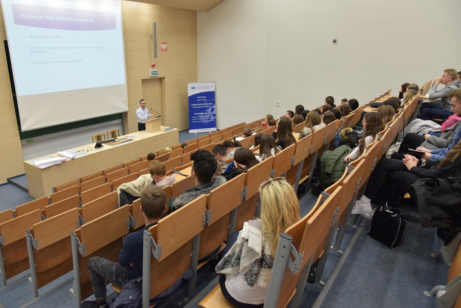 Prawie 150 uczniów podkarpackich szkół średnich wzięło udział w piątek, 6 grudnia w warsztatach zorganizowanych w Instytucie Nauk o Polityce Uniwersytetu Rzeszowskiego. Zajęcia prowadzone dla licealistów do cykliczne wydarzenie, które odbywa się w Instytucie. Tematyka zajęć dotyczy aktualnych tematów związanych z politologią lub bezpieczeństwem wewnętrznym. W tym roku, w ramach trzech paneli, uczniowie szkół średnich mogli podyskutować o zagadnieniach związanych z polityką klimatyczną, uczestnictwem młodych osób w życiu publicznym oraz samorządem terytorialnym. Zajęcia prowadzili pracownicy Instytutu Nauk o Polityce dr hab. Grzegorz Bonusiak, prof. UR, mgr Dominik Boratyn, mgr Damian Wicherek oraz mgr Karol Piękoś. Uczniowie mieli także okazję poznać kierunki studiów prowadzone w Instytucie oraz zasady rekrutacji.