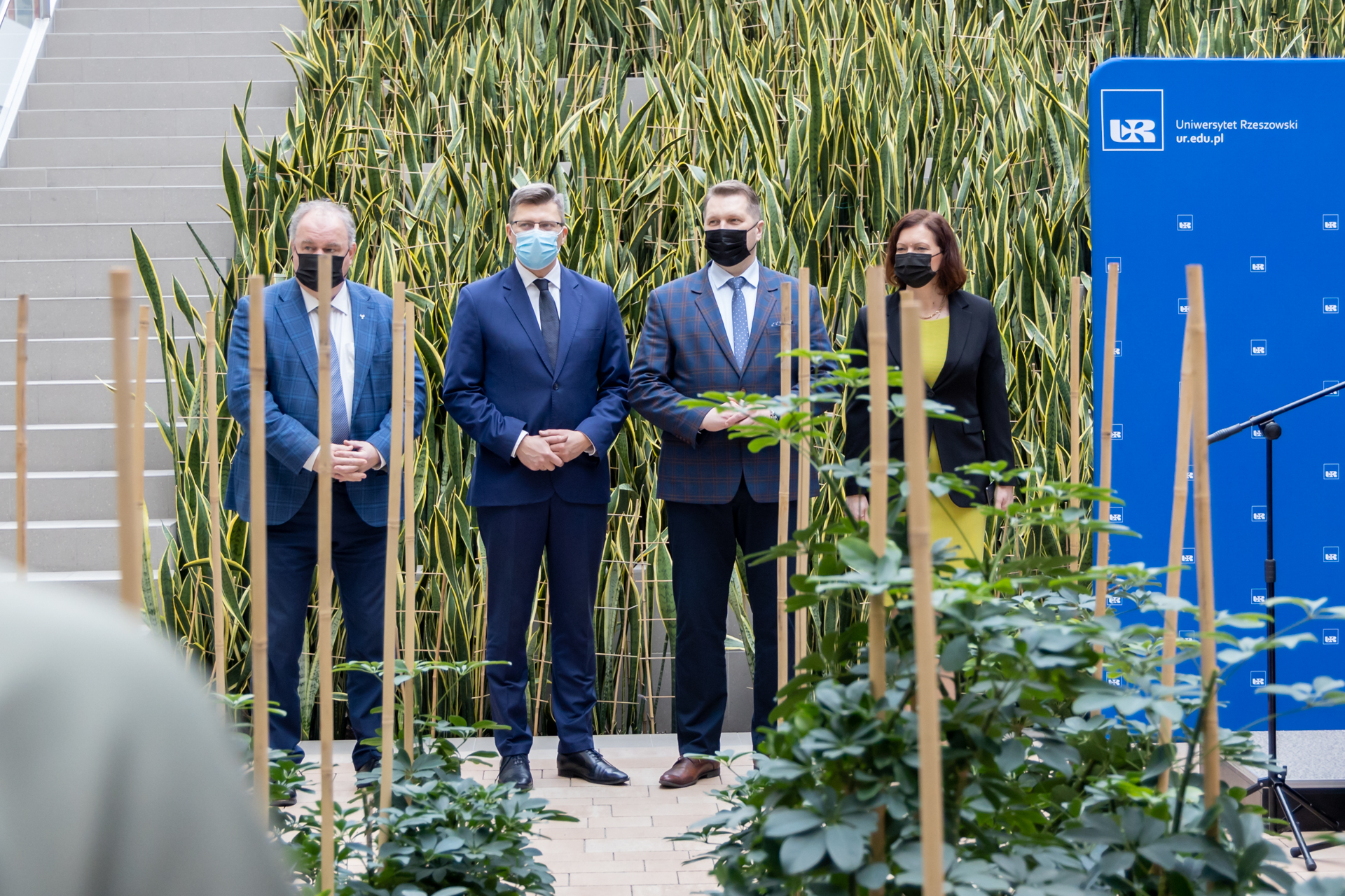 W spotkaniu uczestniczyli: dr hab. Przemysław Czarnek, prof. KUL – Minister Edukacji i Nauki, dr hab. Marcin Warchoł – Sekretarz Stanu w Ministerstwie Sprawiedliwości, dr Ewa Leniart – Wojewoda Podkarpacki, Piotr Pilch – Wicemarszałek Województwa Podkarpackiego, prof. dr hab. Sylwester Czopek – Rektor Uniwersytetu Rzeszowskiego, członkowie Kolegium Rektorskiego UR, dr hab. Józef Cebulski, prof. UR oraz posłowie: Teresa Pamuła i Kazimierz Moskal.