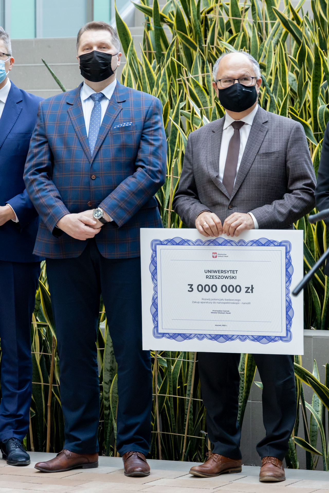 3 stycznia 2022 roku w Uniwersytecie Rzeszowskim odbyło się spotkanie z Panem Ministrem Przemysławem Czarnkiem. Okazją do spotkania było zwiększenie subwencji dla UR na zakup aparatury do nanospektroskopii (nanoIR). Ww. aparatura pozwoli Uczelni rozszerzyć działalność naukową poprzez prowadzenie badań dotyczących obrazowania pojedynczych komórek nowotworowych uzyskiwanych od pacjentów. Kwota zwiększenia to 3 mln. zł.