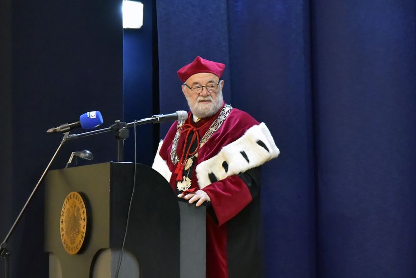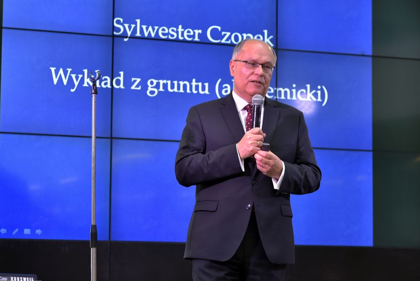 Uroczystość kontynuowana była o godzinie 18:18 w bud. A0. Zgromadzeni goście doświadczyli "zestawu unikatowego" - gwiazdą wieczoru był Andrzej Poniedzielski, a jako jego support "Wykład z gruntu akademicki" wygłosił JM prof. dr hab. Sylwester Czopek, Rektor UR, który cytując Herodota powiedział, że ...