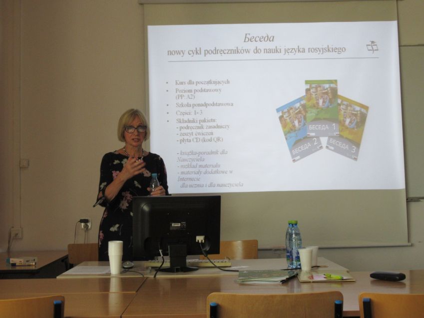 17.05.2019 r. w ramach konferencji miało miejsce spotkanie z autorką podręczników do nauki języka rosyjskiego - Panią dr Anną Pado, w którym udział wzięli uczestnicy konferencji oraz nauczyciele-rusycyści z województwa podkarpackiego. Autorka zaprezentował najnowszy cykl podręczników do nauki języka rosyjskiego Беседа 1-3.