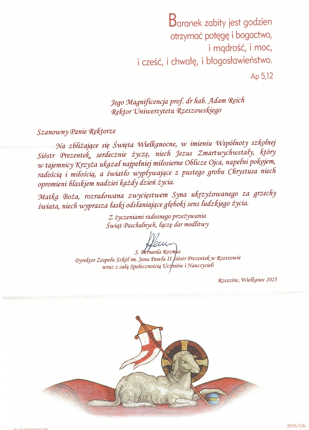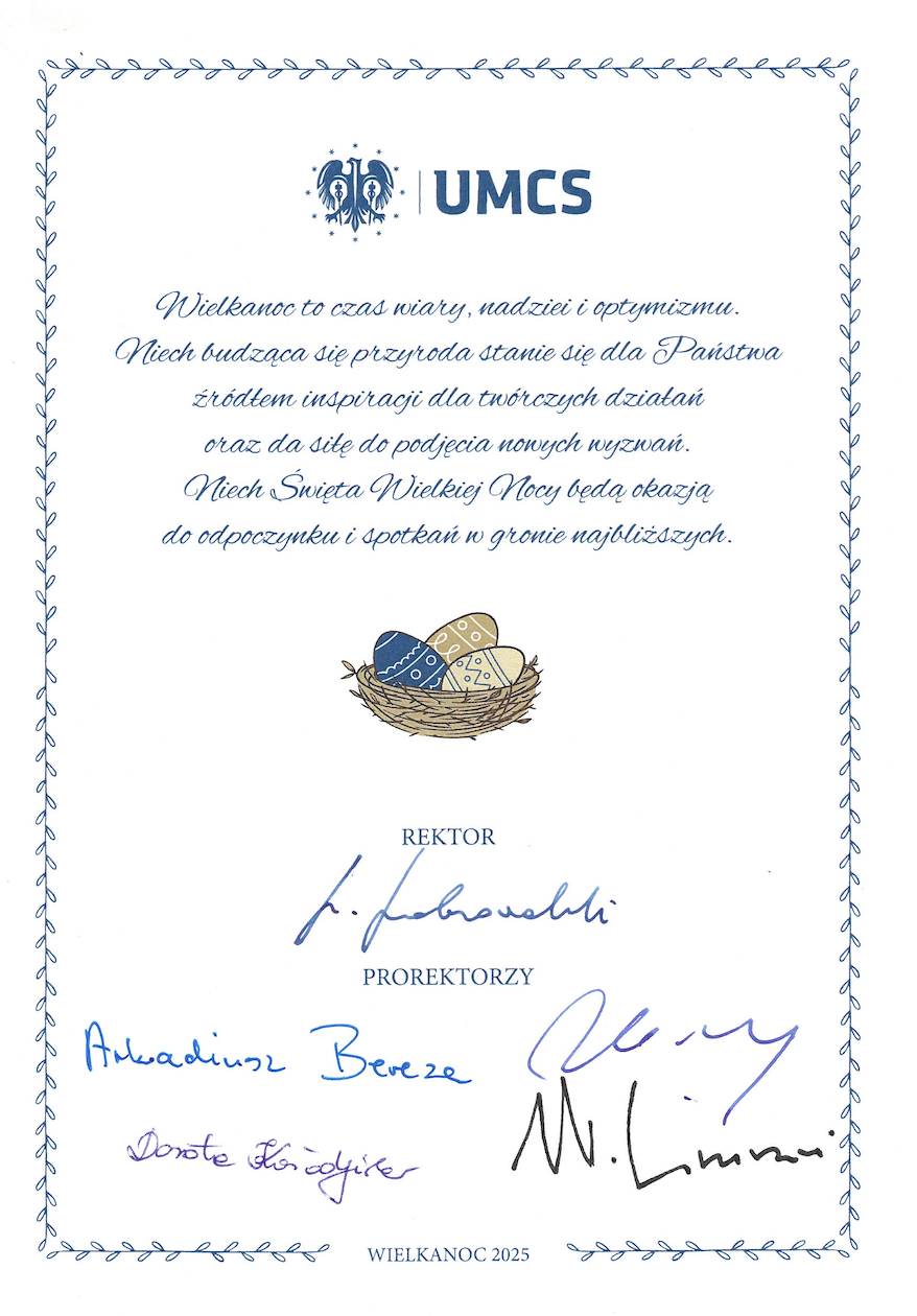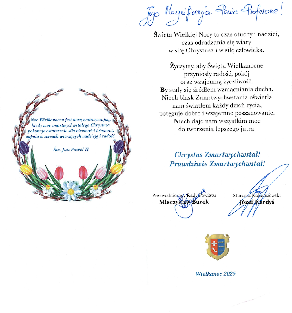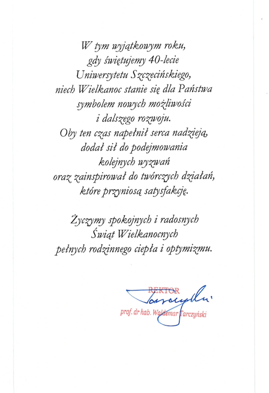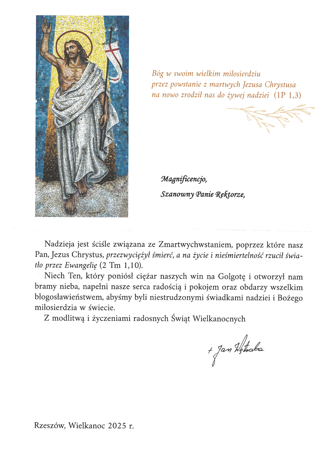 JM Rektor Uniwersytetu Rzeszowskiego składa najserdeczniejsze życzenia z okazji Świąt Wielkanocnych