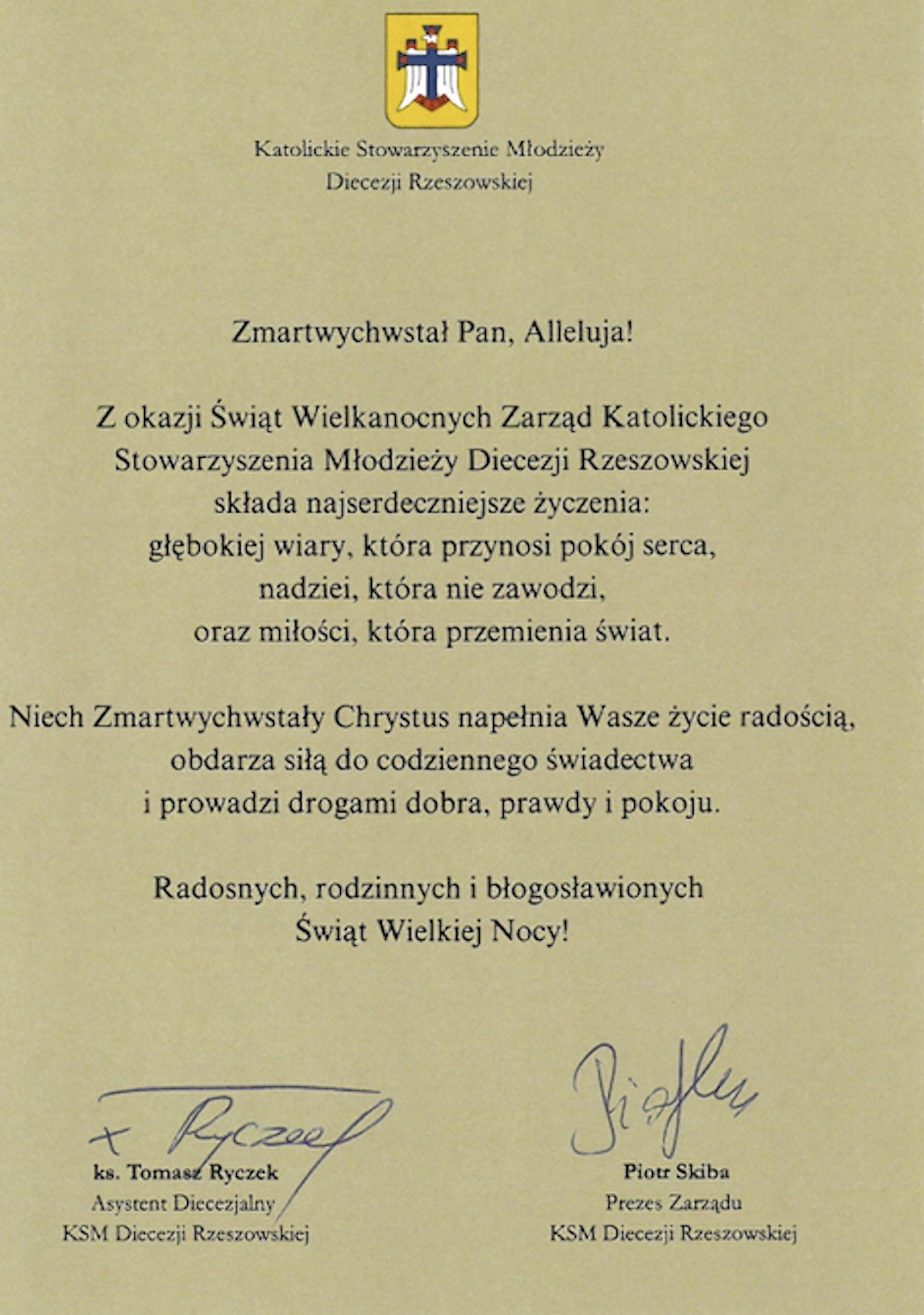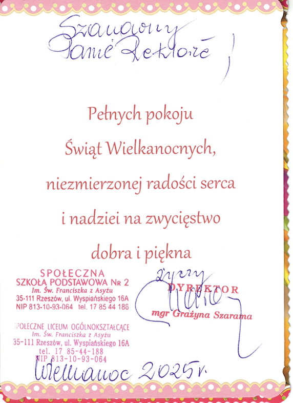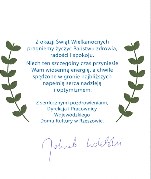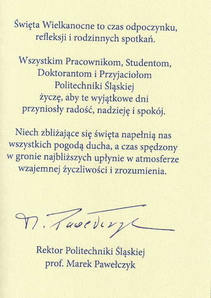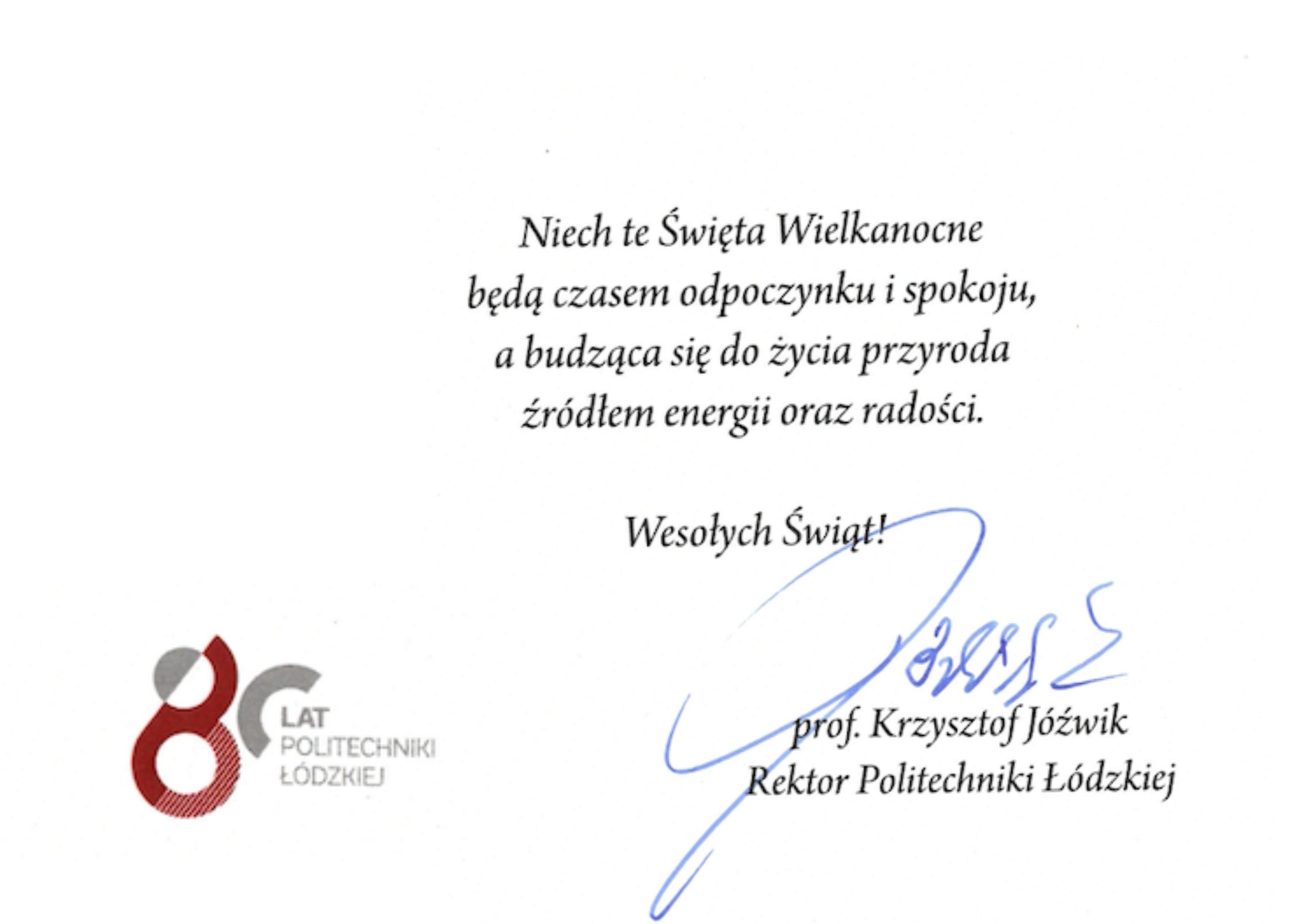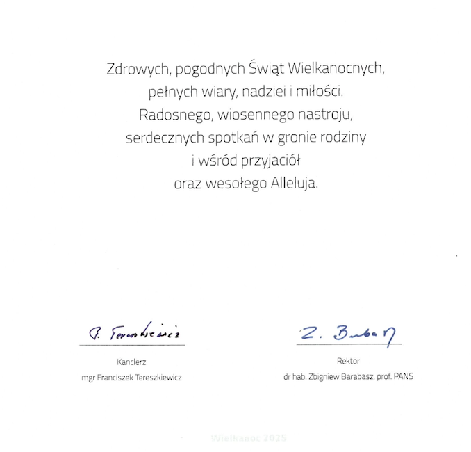 JM Rektor Uniwersytetu Rzeszowskiego składa najserdeczniejsze życzenia z okazji Świąt Wielkanocnych