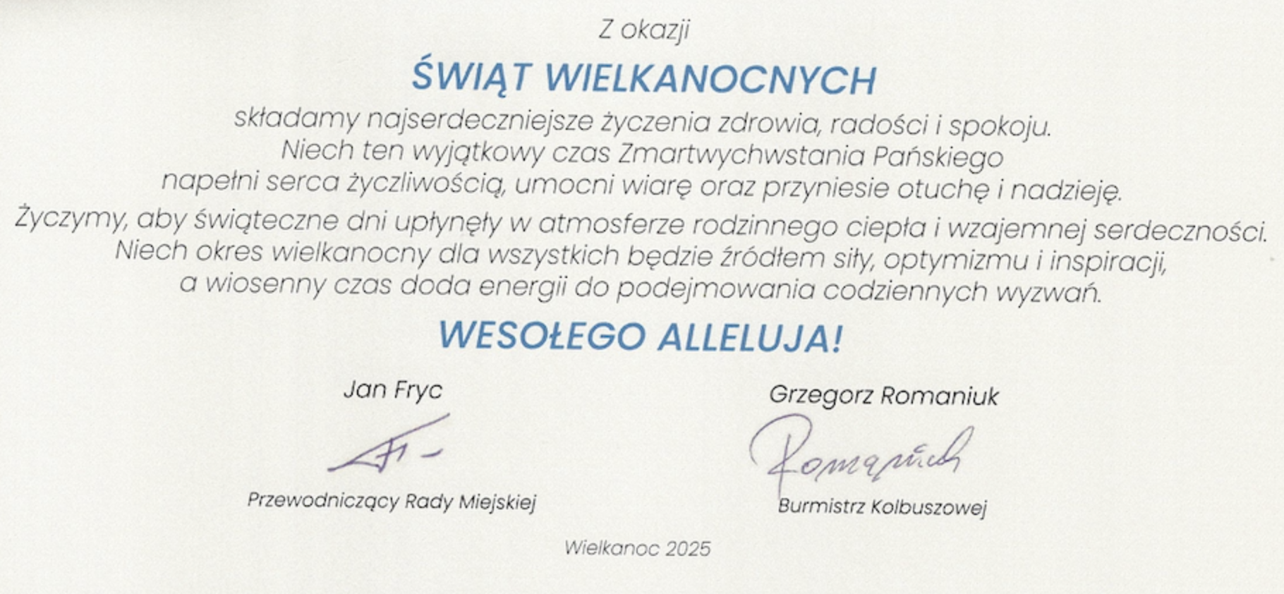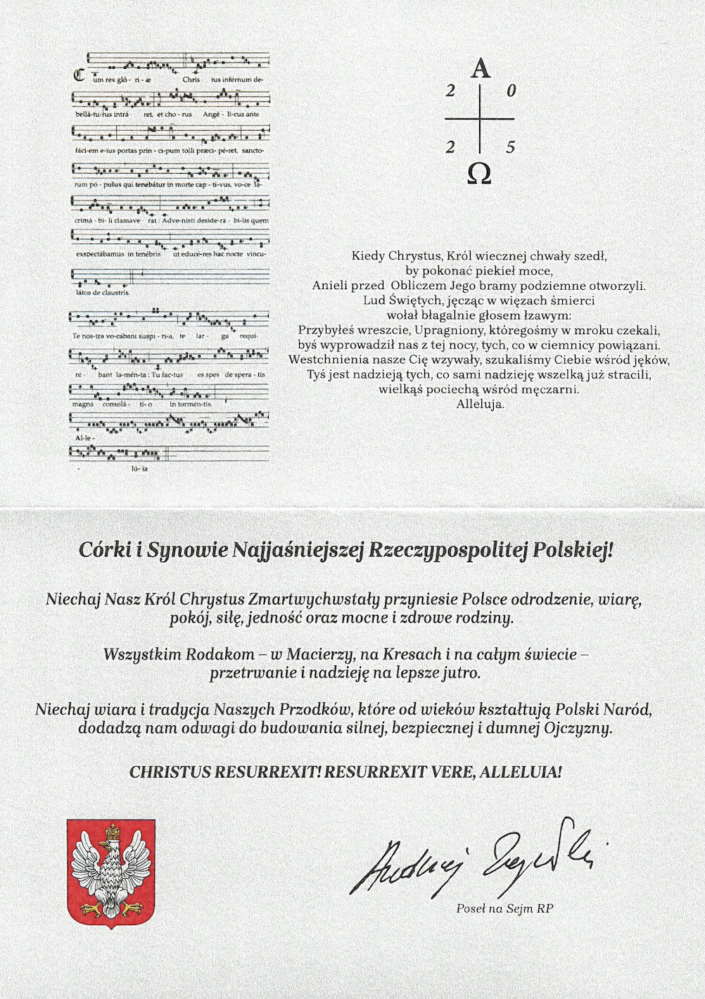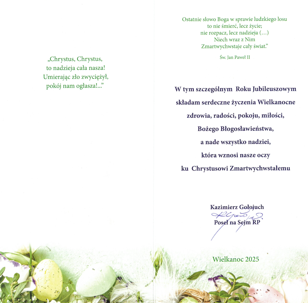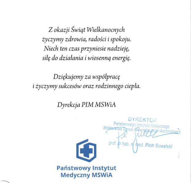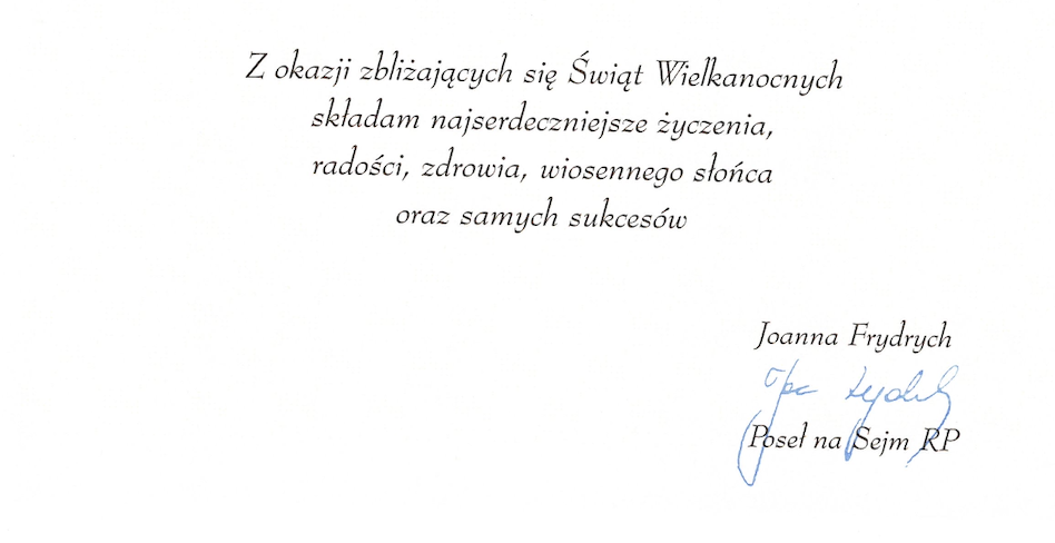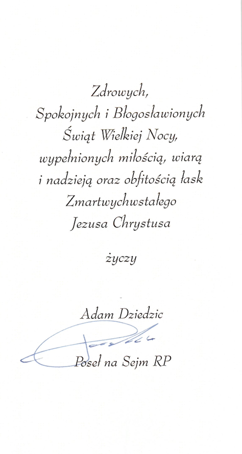 Serdecznie dziękuję za wszystkie życzenia, które napłynęły do mnie z okazji Świąt Wielkanocnych.