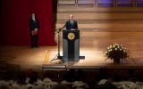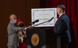 Na zakończenie uroczystości JM prof. Sylwester Czopek zaprosił na scenę byłych, obecnych na sali Rektorów UR – prof. Stanisława Uliasza i prof. Aleksandra Bobko oraz prof. Artura Mazura – Prorektora ds. Kolegium Nauk Medycznych – głównego inspiratora powstania kierunku lekarskiego.
