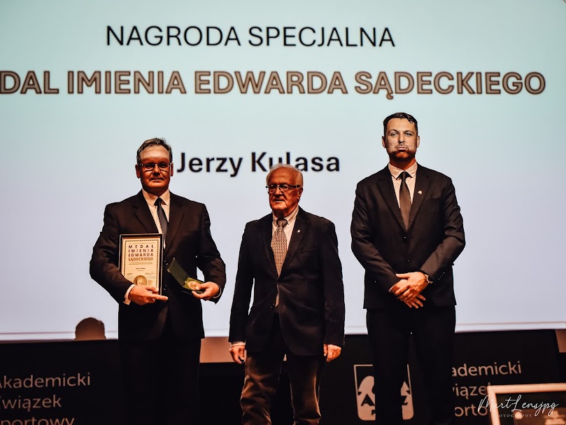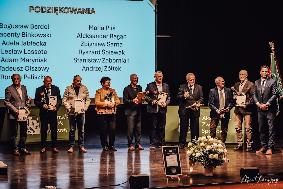 Na scenę zaproszono również przedstawicieli najstarszego pokolenia AZS, którzy z dumą przekazali symboliczną pałeczkę młodym sportowcom i wolontariuszom reprezentującym obecne pokolenie akademików. Wzięli w tym udział emerytowani członkowie i działacze AZS. To właśnie oni — osoby, które przez dziesięciolecia budowały sport akademicki, prowadziły sekcje, organizowały zawody i inspirowały kolejne roczniki studentów — zostali uhonorowani w szczególny sposób.